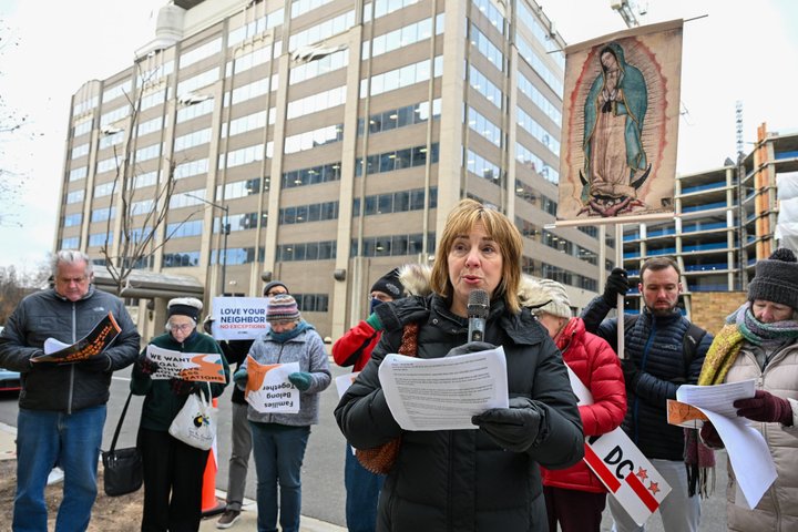 Vigil outside ICE headquarters honors Our Lady of Guadalupe, offers prayers for immigrants