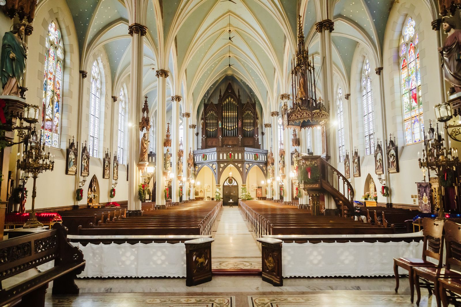 The beautiful artwork and architectural designs throughout the church are a testament to the labor of love of the original German community who built the church in the 19th century. Canon Commins explained that most of the woodwork was done by local parishioners, such as the Communion rails and the side altars.