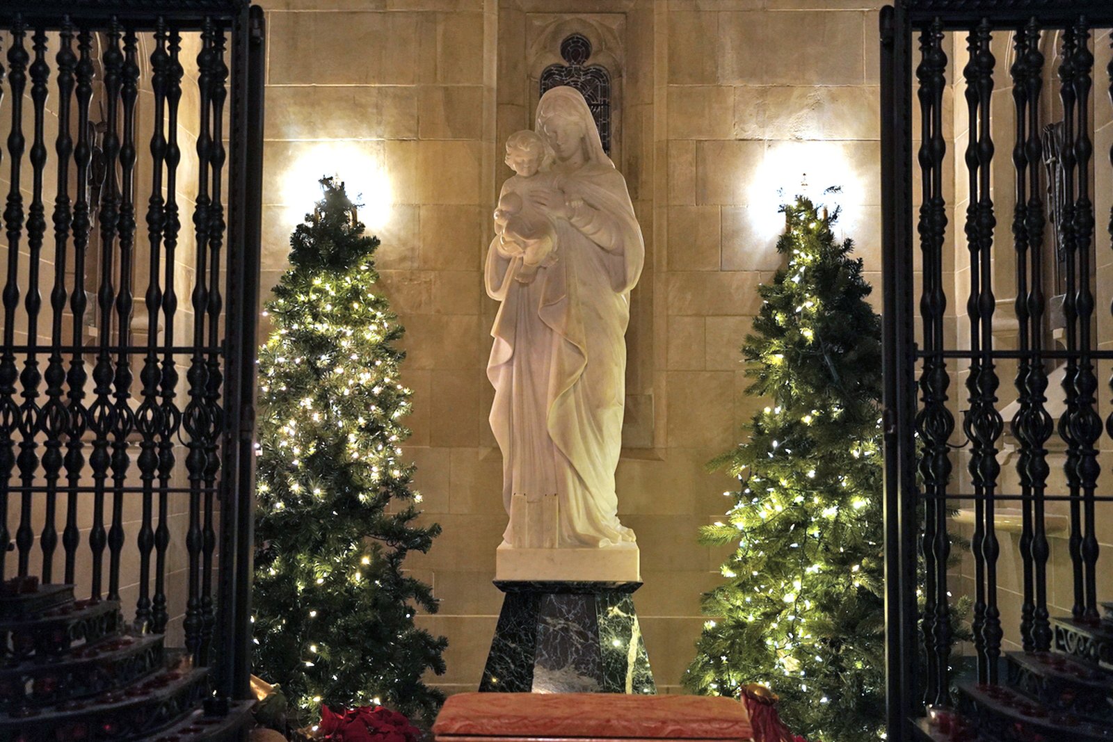 In 2020, during the early days of the COVID-19 pandemic, Archbishop Vigneron promised the faithful of the Archdiocese of Detroit that he would build a grotto dedicated to Our Lady of Lourdes as “a perpetual reminder of her care” of the sick and suffering. The grotto, dedicated on Mother's Day in 2024, is located outside along the north wall of the cathedral and is surrounded by walkable gardens. Visitors can spend time with this small-scale replica of the grotto built in Lourdes, France, the site of Our Lady's miraculous appearance to St. Bernadette Soubirous in 1858 and many miracles since.