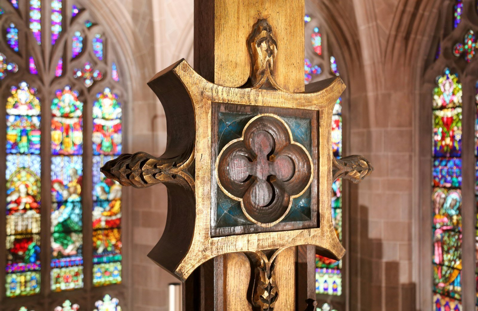 Archbishop Vigneron chose this cross for the archdiocese because it was built from the charred beams of the former seat of Detroit, SS. Peter and Paul Cathedral, formerly St. Patrick's.