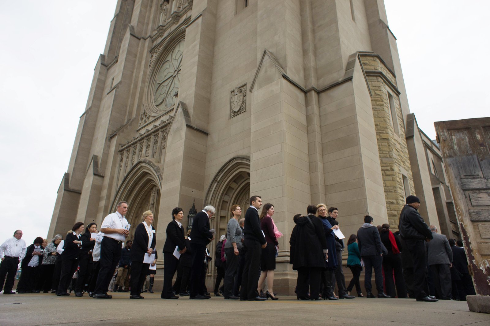 All around the cathedral campus, you will find artwork and architectural details that illustrate the story of Christianity and the cathedral itself. Find the beehive-shaped medallion in the sacristy, or study the saints in the stained-glass windows (and find the empty spots, ready to be filled by the future saints sitting in the pews). Check out the tympanum on the north wall featuring a relief of the Blessed Mother, St. Anne and Jesus, or gaze up at the high ceiling surrounding the altar and locate the galeri, or red-tasseled hats, gifted to cardinals by the pope, each representing a Detroit cardinal who's gone home to God.