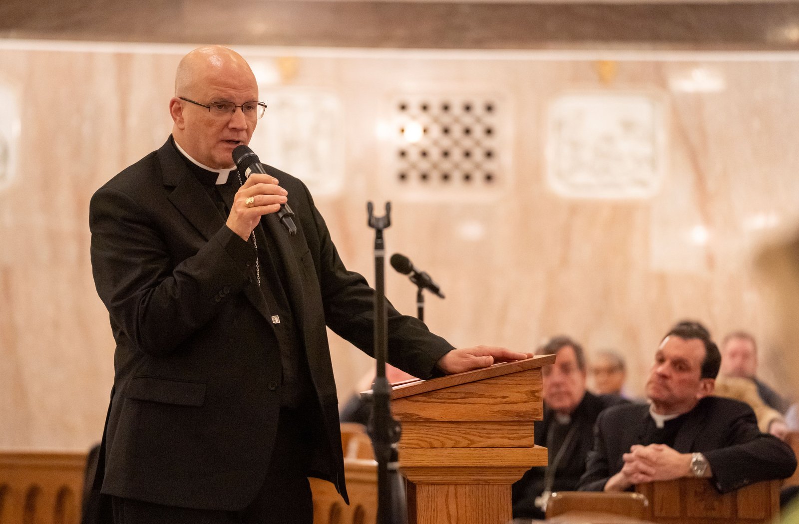 DETROIT — Archbishop-designate Edward J. Weisenburger gathered with members of the Archdiocese of Detroit's curia staff at St. Aloysius Parish in Detroit for mid-morning liturgy of the hours and a more formal introduction Feb. 12.
