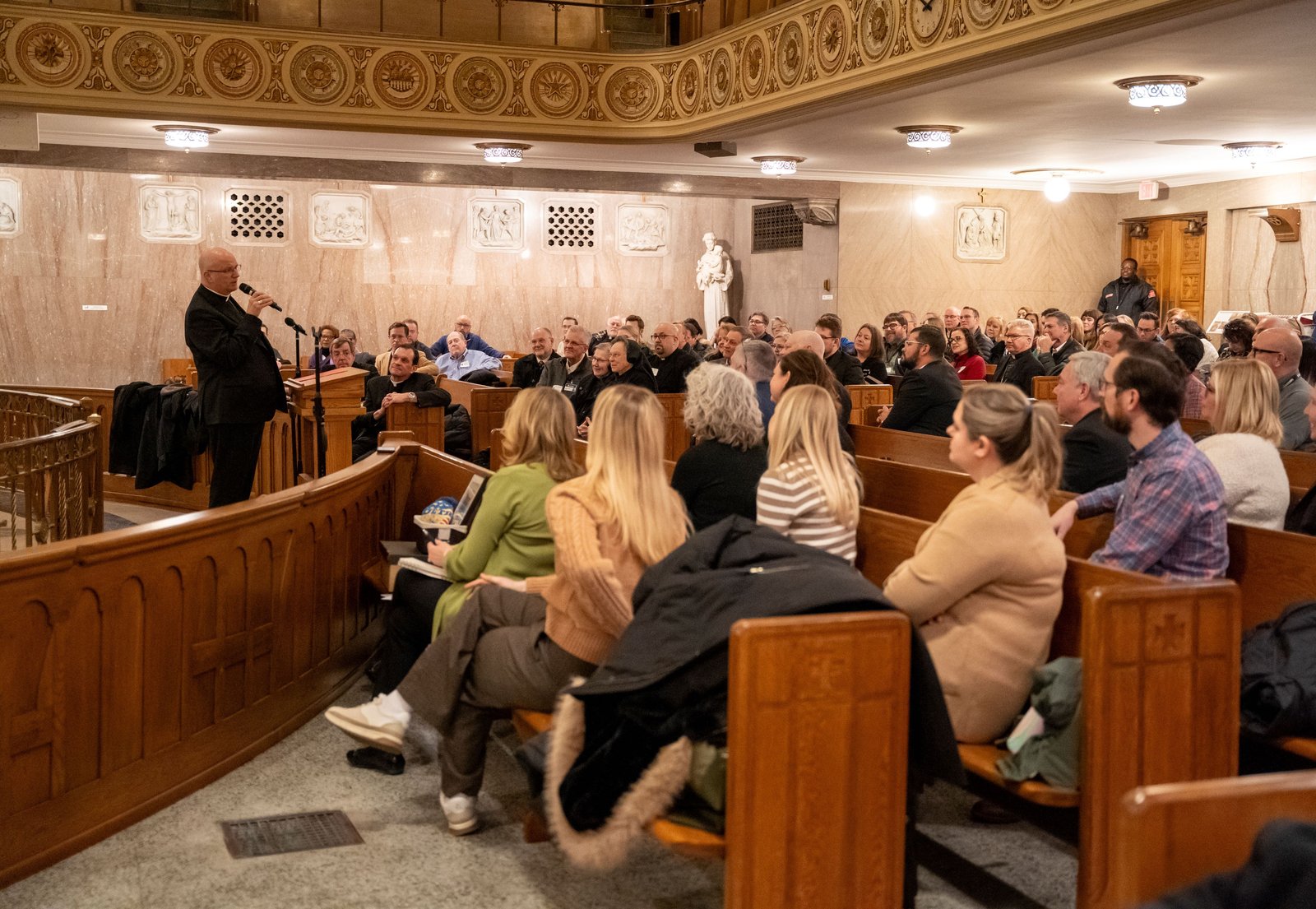 The archbishop-designate was named the sixth archbishop of the Archdiocese of Detroit the day prior, and the gathering at the downtown parish was a chance for Archbishop-designate Weisenburger to pray with and for his new coworkers. Archbishop Allen H. Vigneron, now Detroit's archbishop emeritus and apostolic administrator, also was in attendance and spoke.