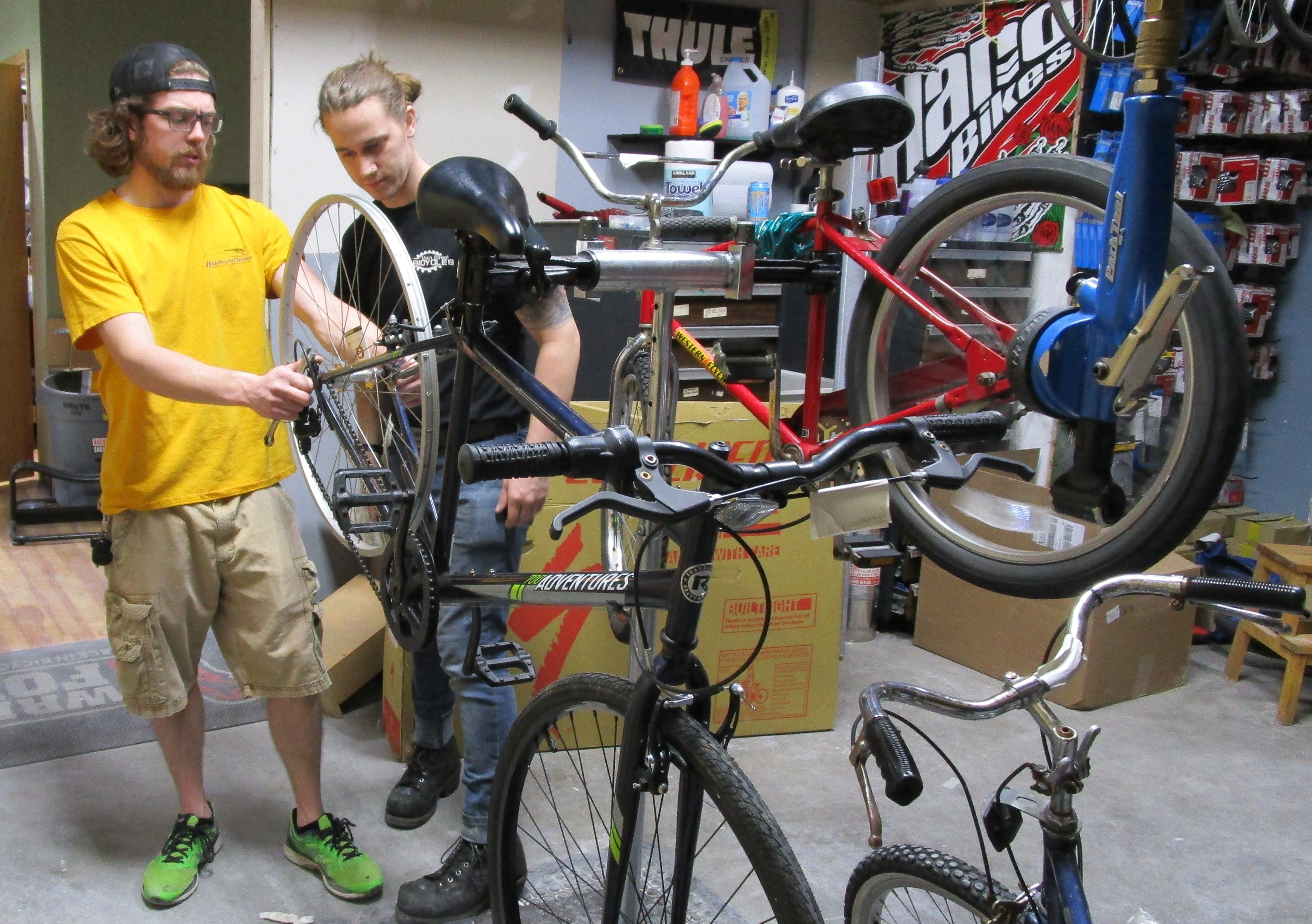 “My dad called me and said one of the guys needed a new rear wheel, but when I saw all five of the bikes they had, I brought the bikes to the shop and worked on them,” Joe Seidel said. “One of the bikes didn’t really need that much work; it was a single speed with not a lot going on. For another, we fixed a wheel bearing; another needed a rear derailleur; another needed a new rear wheel.”