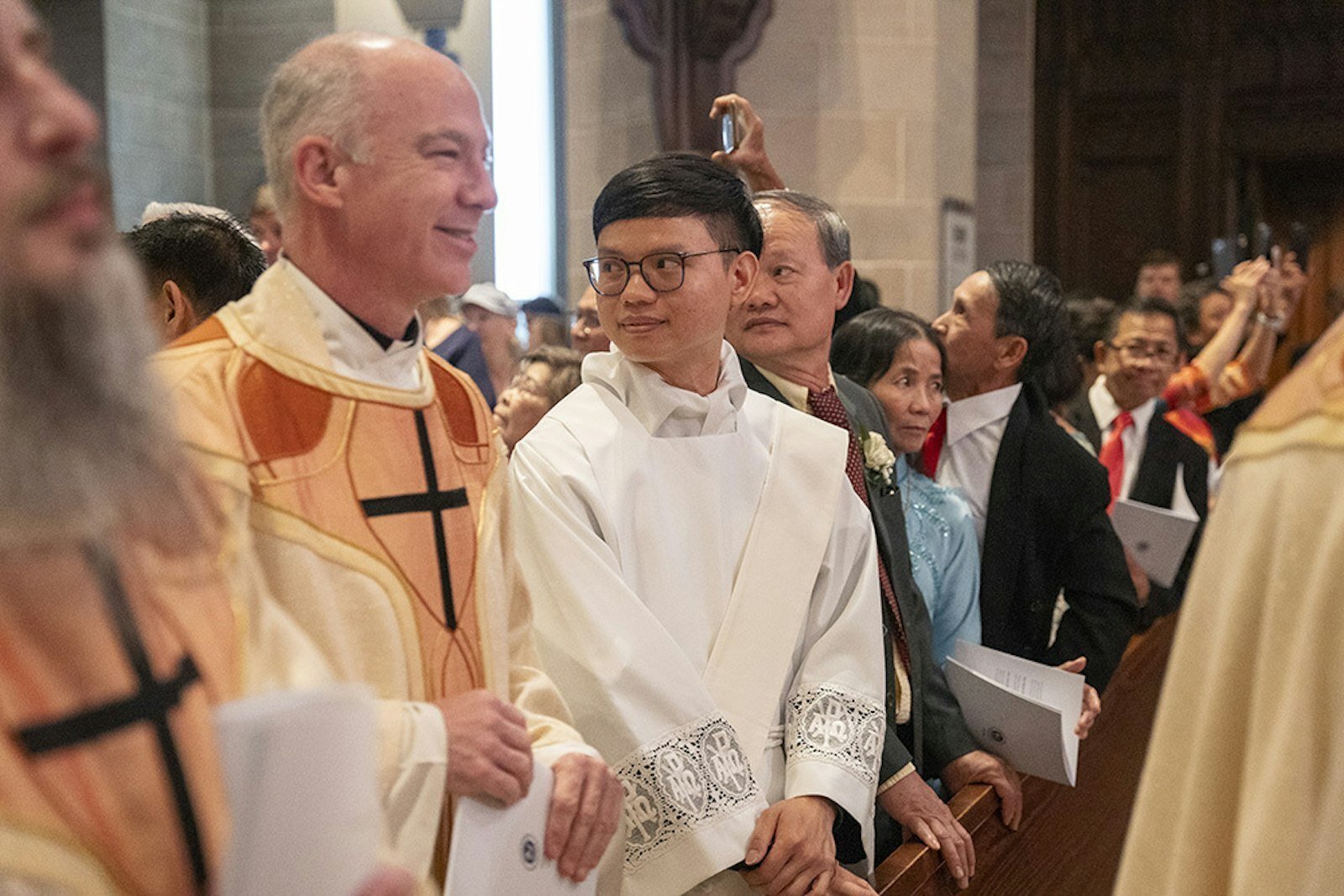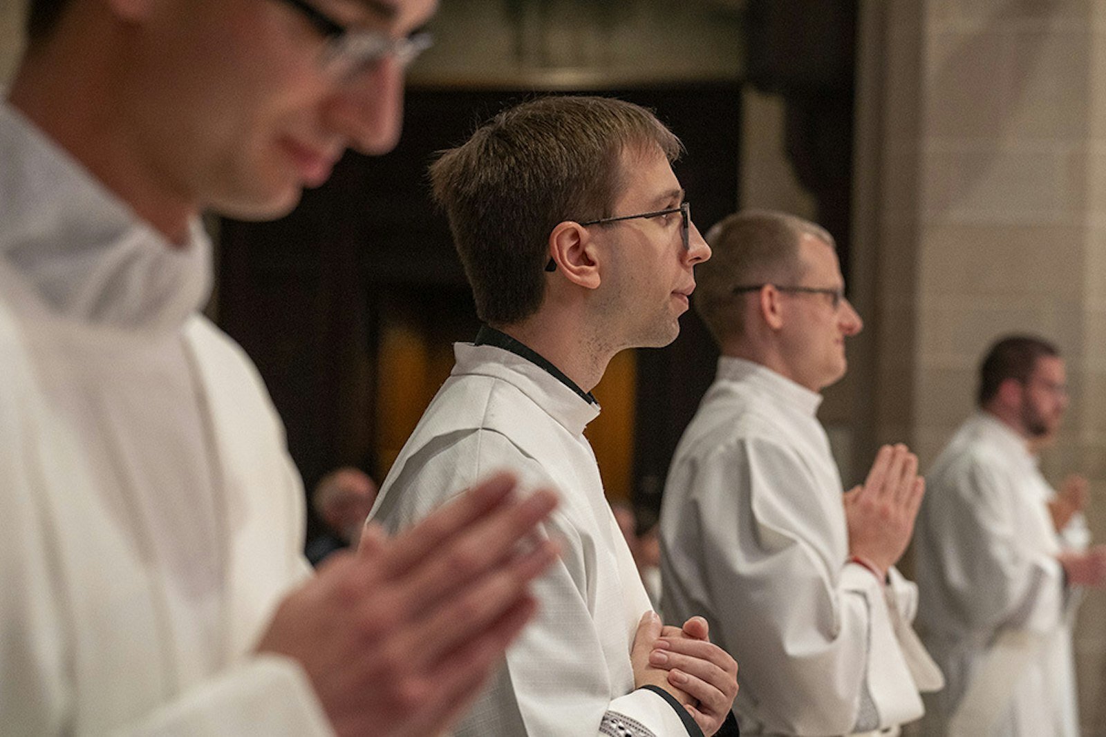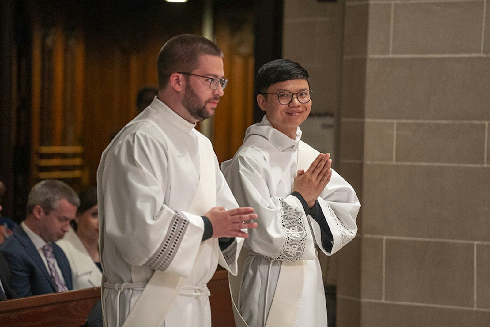 DETROIT — Ryan Asher, Nicholas Brown, Matthew Kurt, Stephen Moening and Tommy Ngo solemnly processed into the Cathedral of the Most Blessed Sacrament as deacons on May 18, and processed out as priests and spiritual fathers.