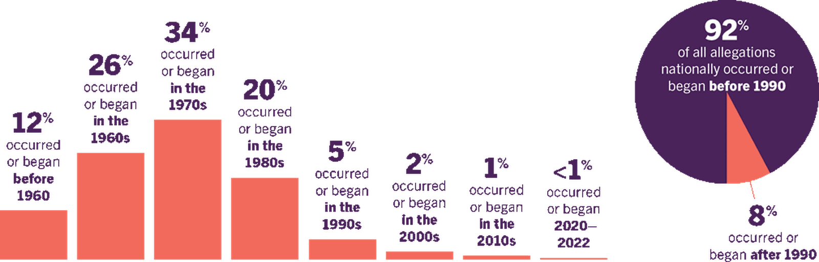 Not only that, but experts both inside and outside the Church believe the practices are working to protect children. Data collected in annual reviews and surveys show that almost all new reports of abuse are from instances dating back decades, and most were reported to have occurred prior to the Charter.