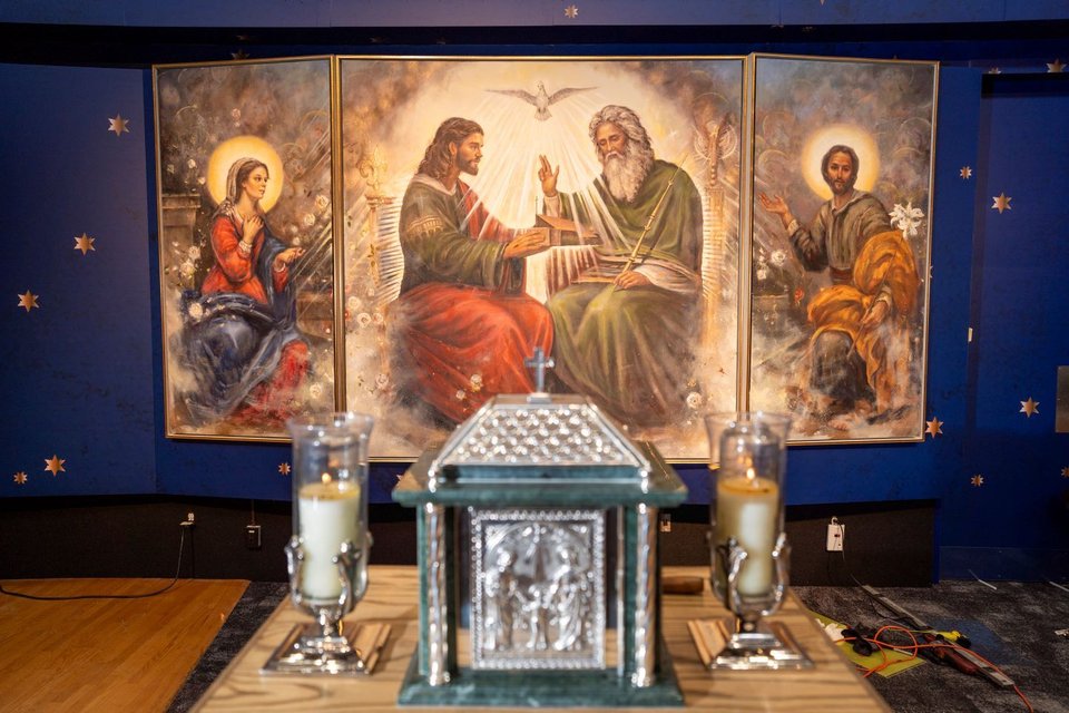 Most recently, Zabawski painted a side chapel in the National Shrine of the Little Flower Basilica in Royal Oak, in response to a request to submit Eucharistic artwork for an art show hosted by the National Eucharistic Congress. While Zabawski’s piece wasn’t accepted, she said she felt it was a project God wanted her to do.