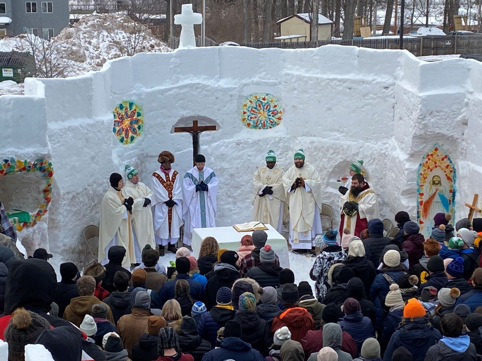 HOUGHTON — Students and clergy at Michigan Technological University celebrated a special outdoor Mass on Feb. 10 and 11 in an ice chapel built as part of an annual tradition in Michigan's Upper Peninsula.