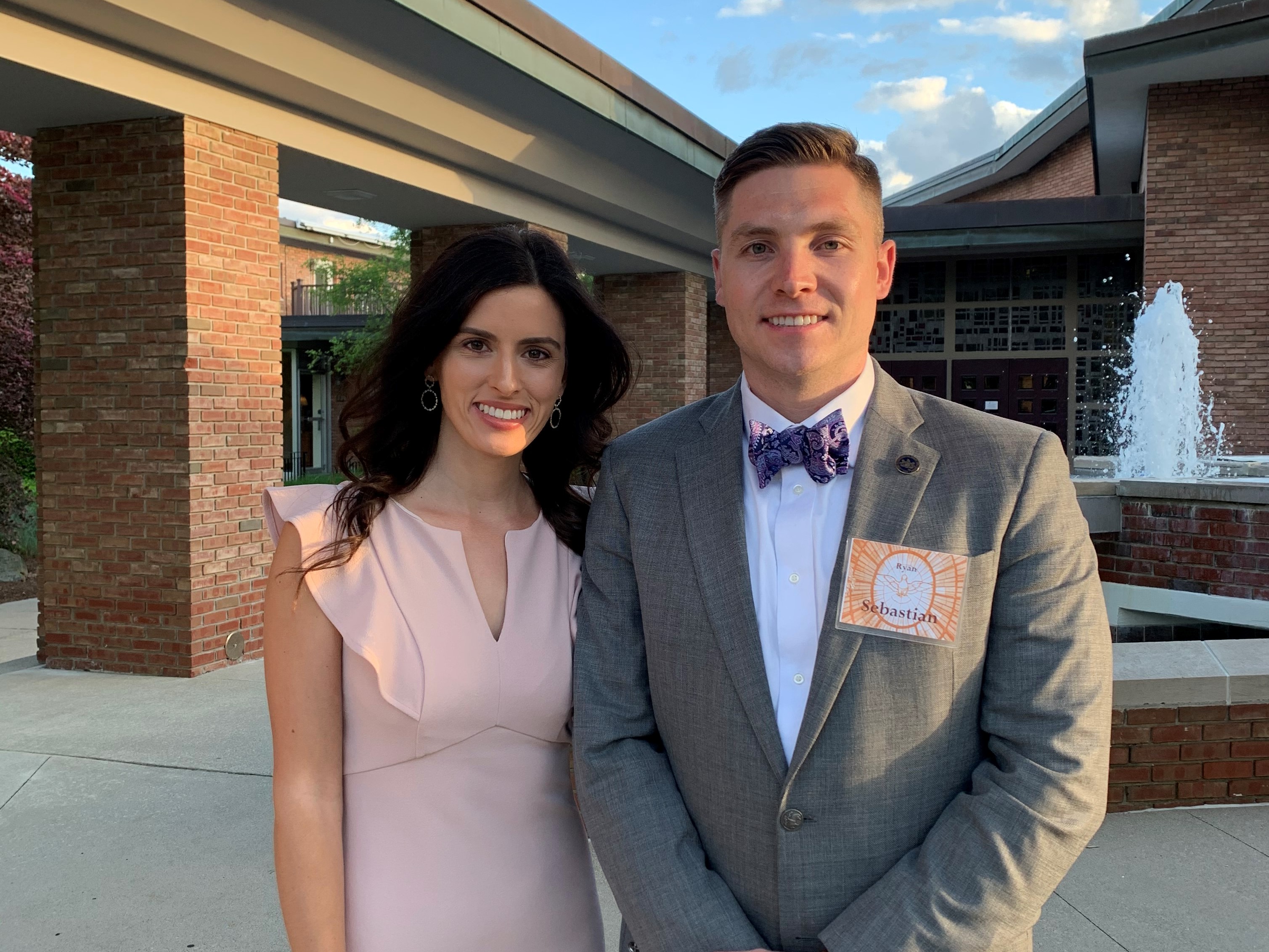 Brenna and Ryan Bartok pose for a photo in May 2020 after Ryan's initiation into the Catholic Church at Our Lady of Sorrows Parish in Farmington. For new converts like Bartok, developing a habit of regular Mass attendance is crucial, a habit that was made challenging because of COVID-19 last year. Bartok, who, like many Catholics, watched livestream Masses last year, says he’s ready to get back to in-person Mass. (Courtesy of Jennifer Barron)