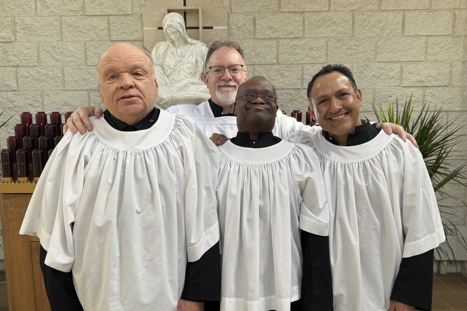 Only the upper portion of the figures' bodies are depicted, which is intentional, Fr. Marek said.
