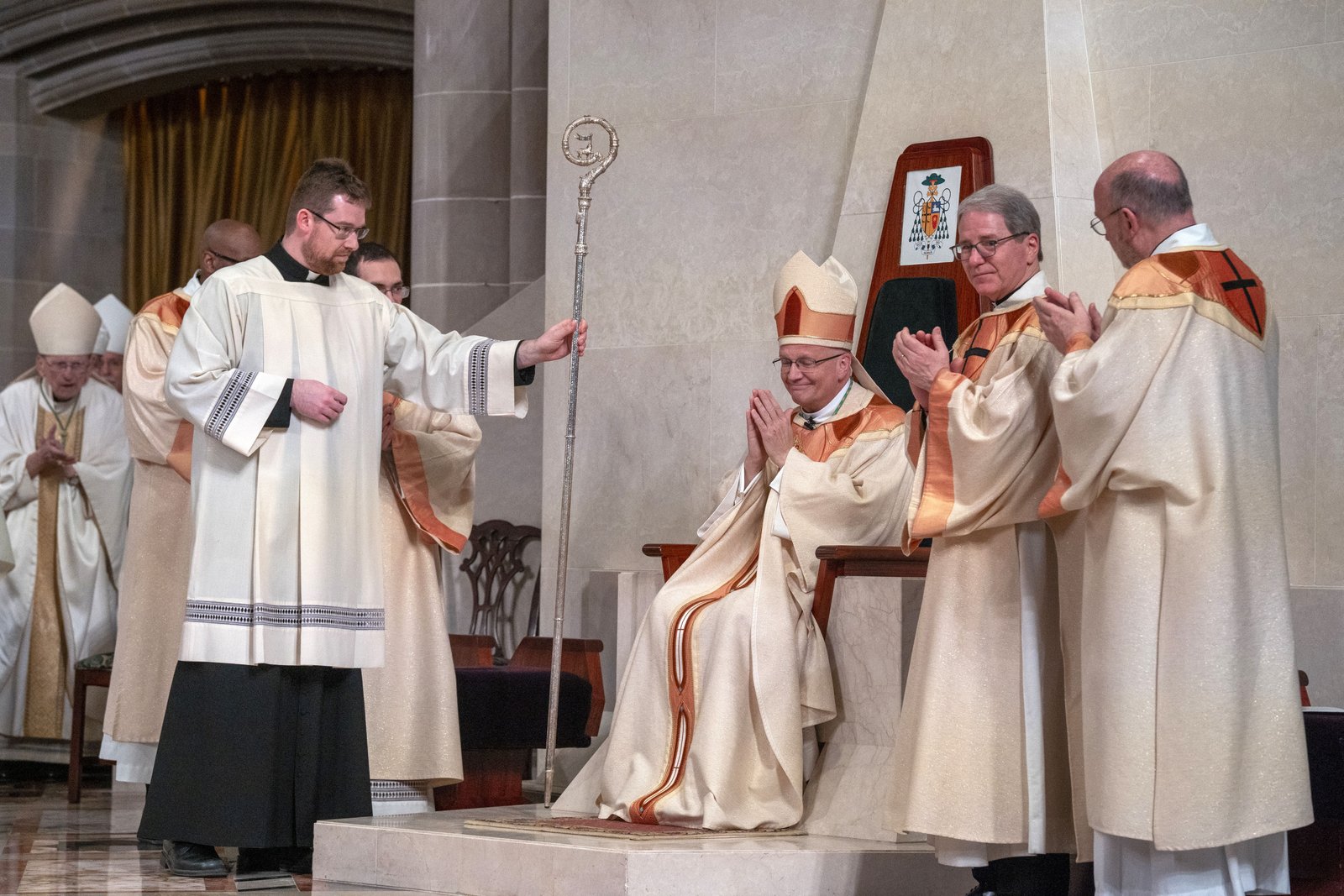 The installation Mass included a solemn rite in which Archbishop Weisenburger was given his episcopal crosier and took his seat upon his cathedra in the cathedral's sanctuary, signifying the inauguration of his ministry as archbishop of Detroit.