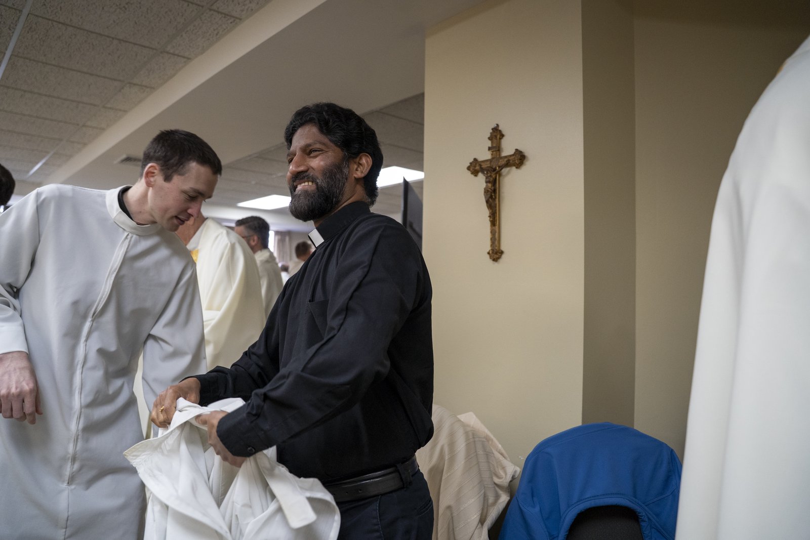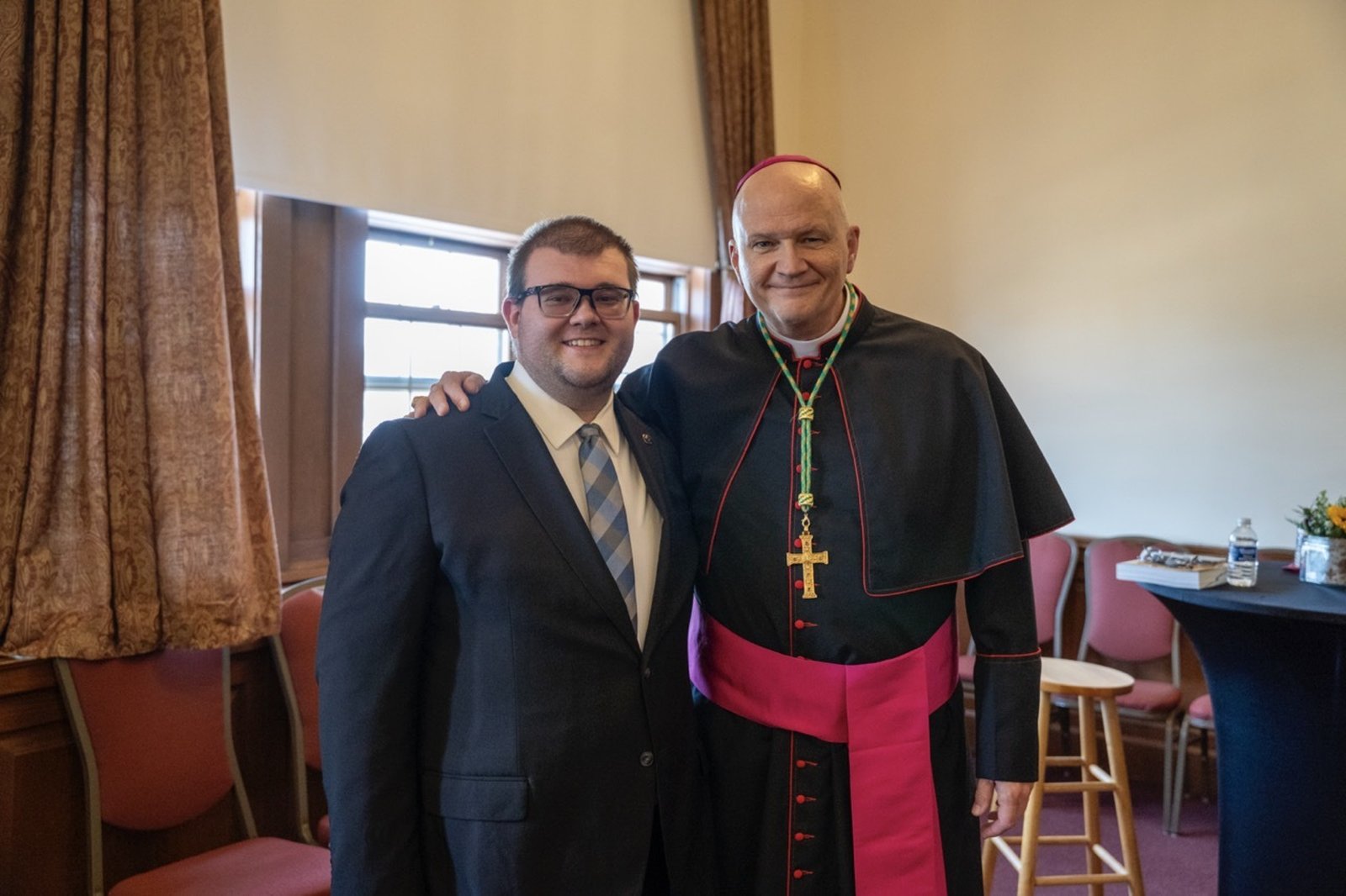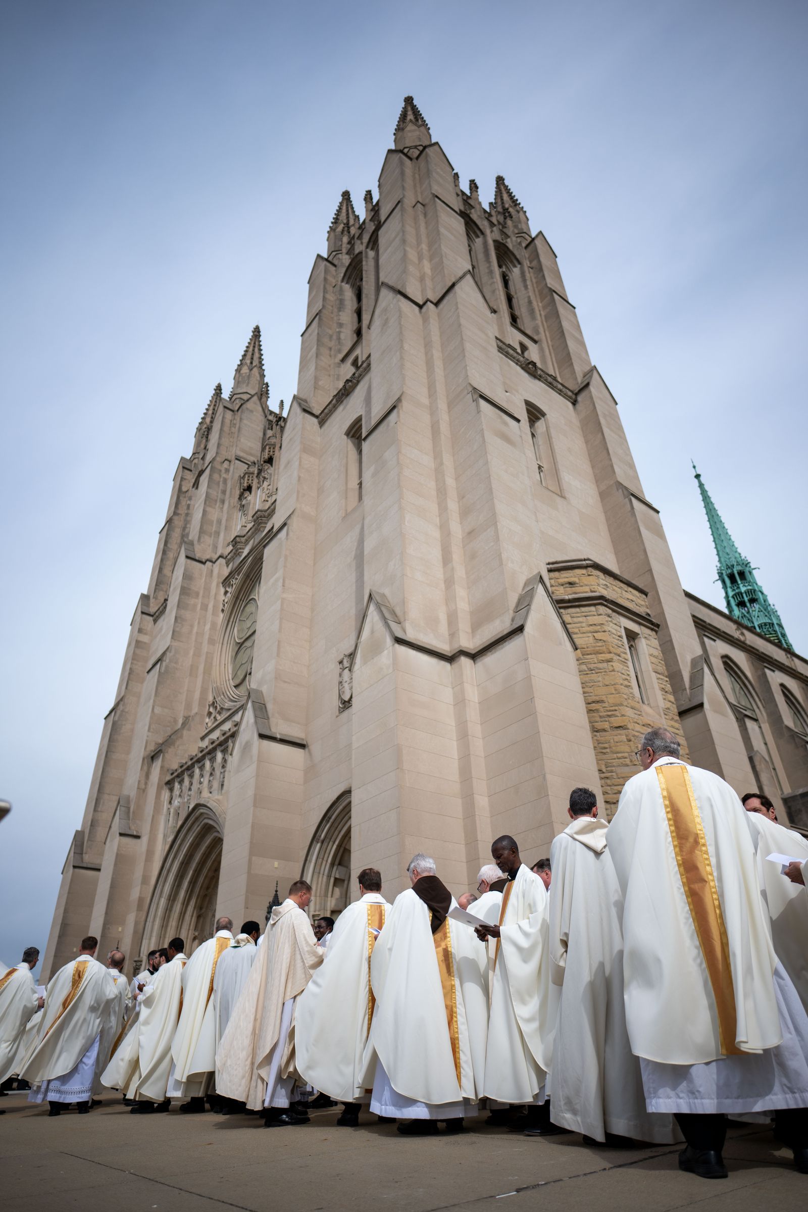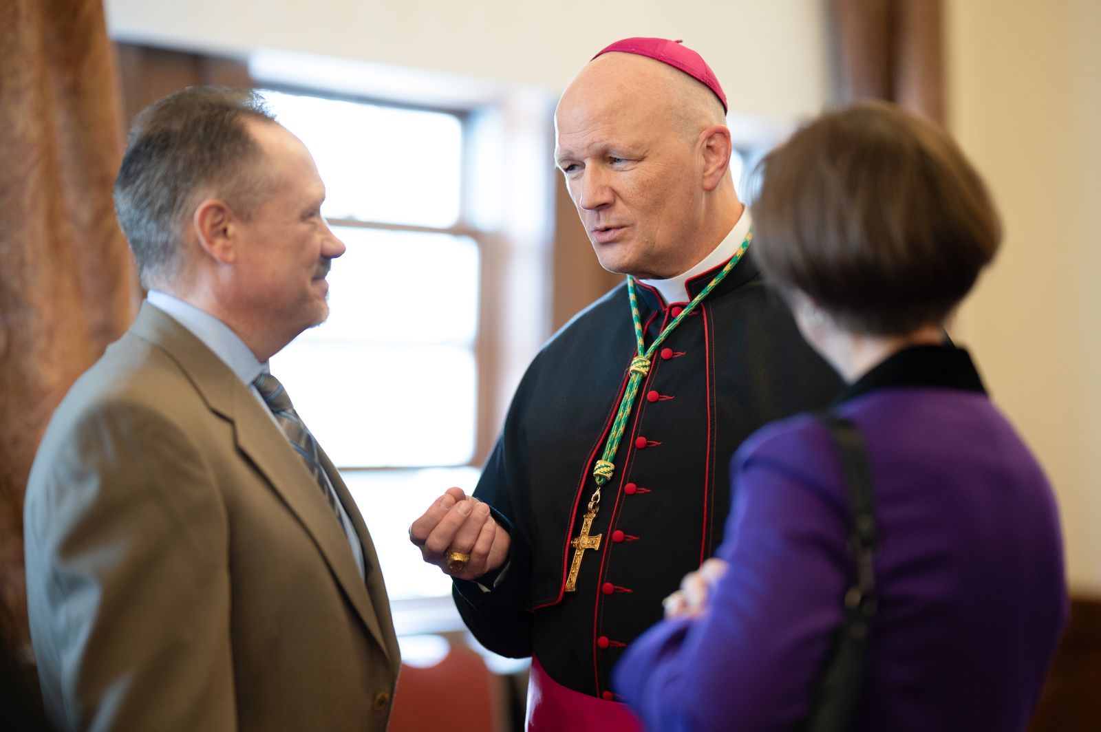 The day's festivities began with a trip to Sacred Heart Major Seminary, where Archbishop Weisenburger spent time in fellowship with fellow priests and bishops during a luncheon. He then ventured to the Cathedral of the Most Blessed Sacrament, where he answered questions from the media before vesting for Mass. Following his installation Mass, Archbishop Weisenburger returned to the seminary for a reception, where he greeted guests who traveled from across the country to celebrate his appointment.