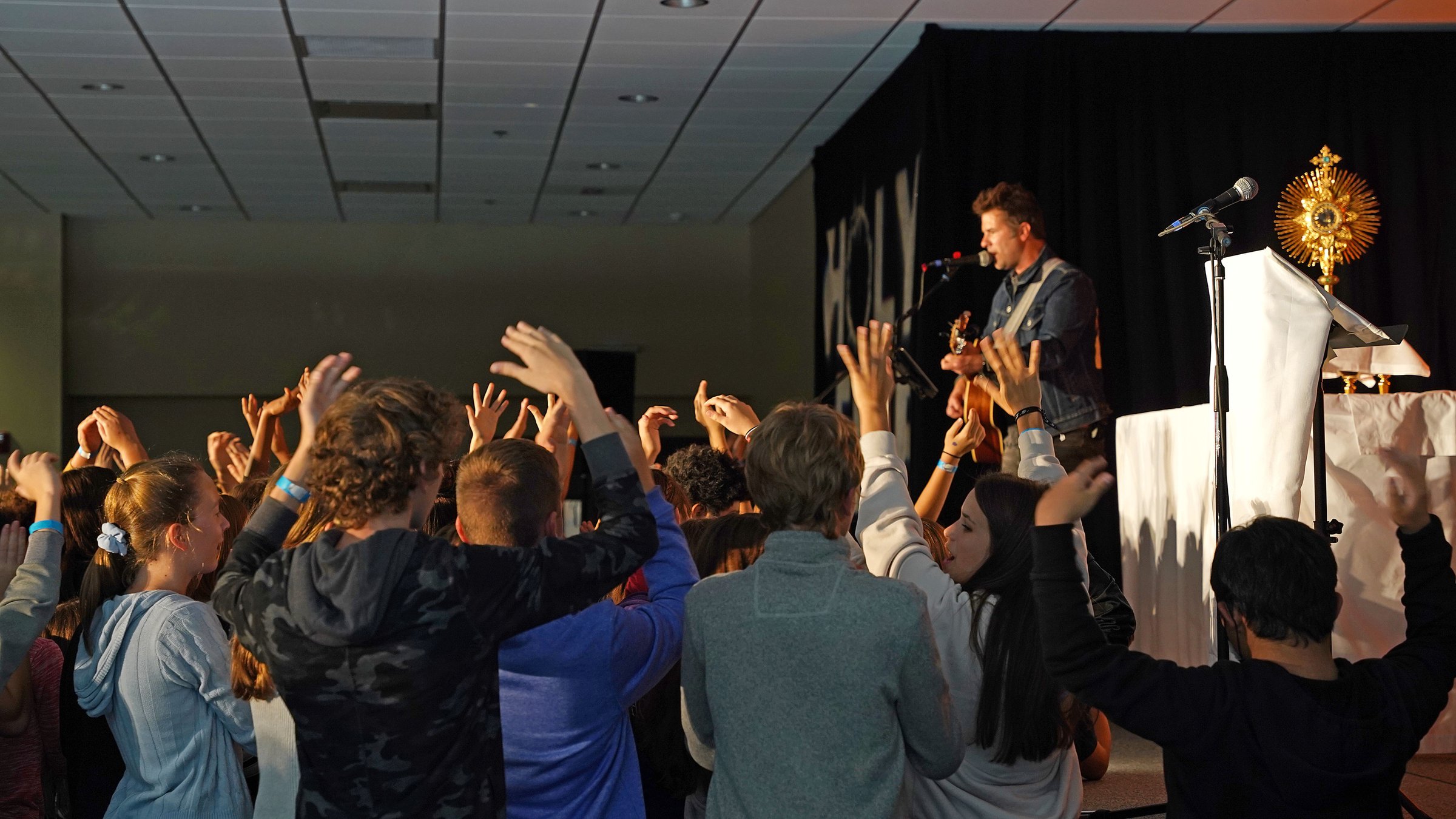 The Holy Fire Great Lakes conference, hosted by the National Federation for Catholic Youth Ministry, Equipping the Saints (also known as EQ Saints) and the Archdiocese of Detroit, offered middle schoolers a day of praise and worship, confession, Eucharistic adoration, Mass and speakers who delivered the clear message: “You are made by God, and you are enough.”
