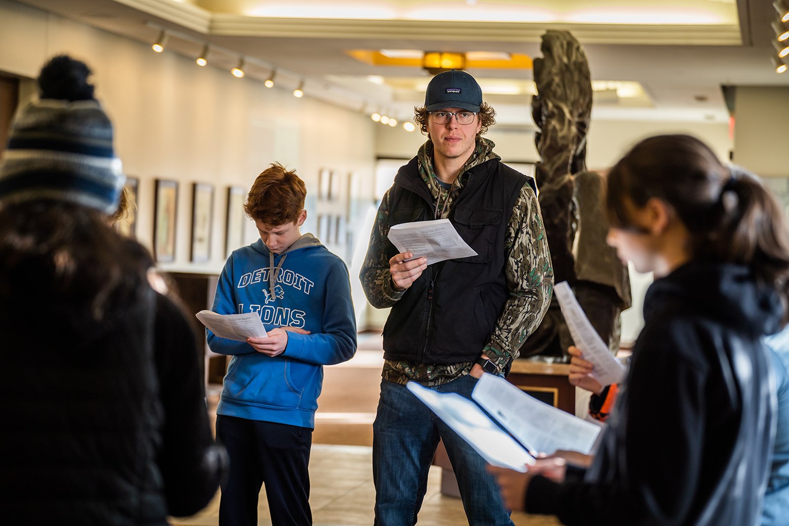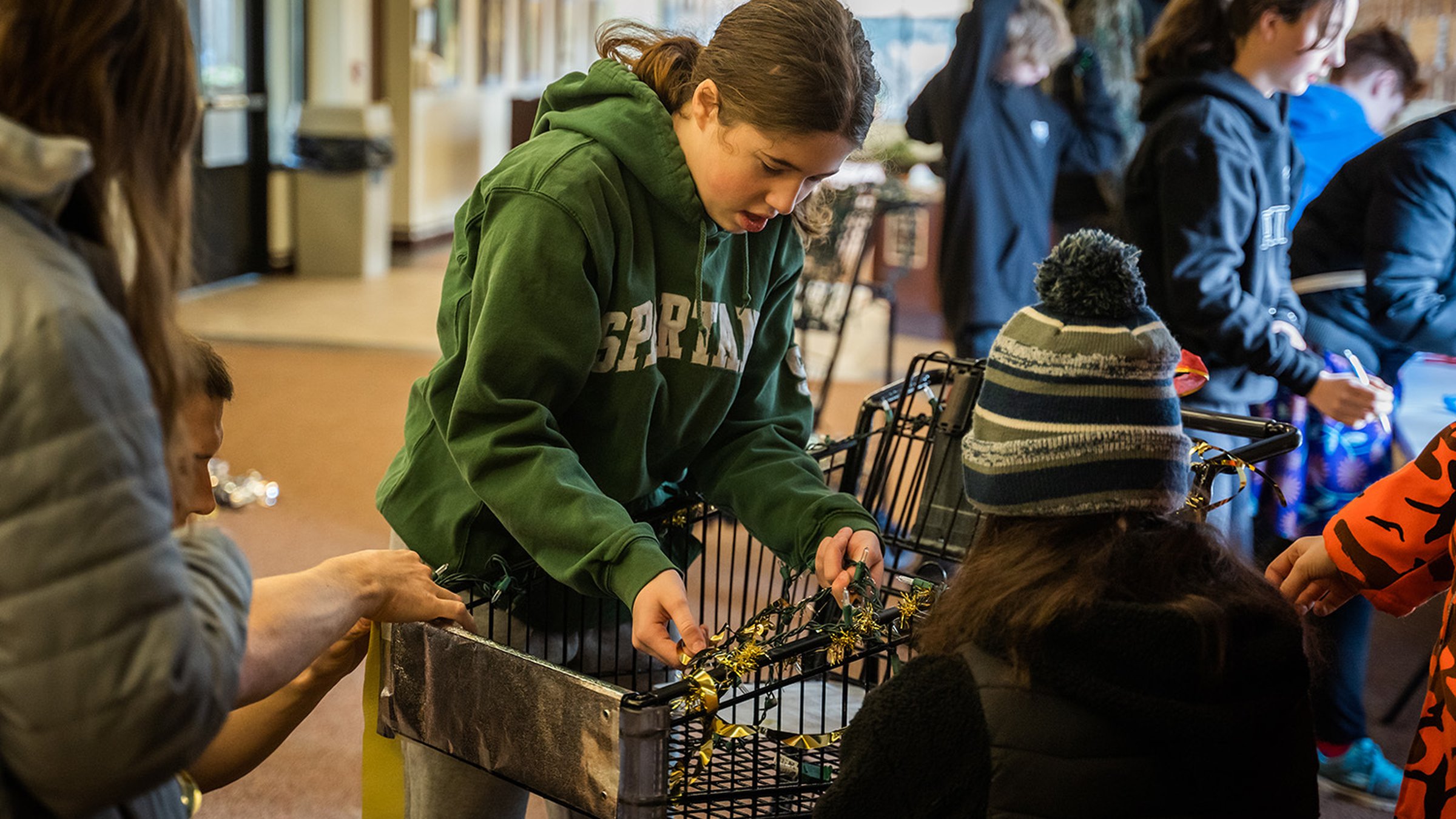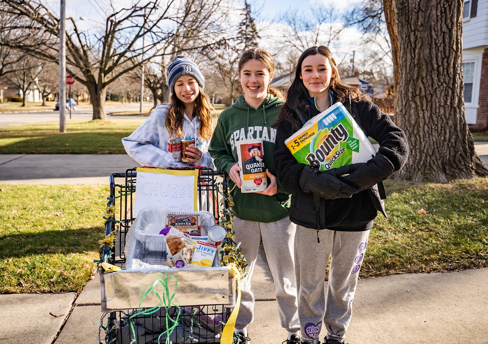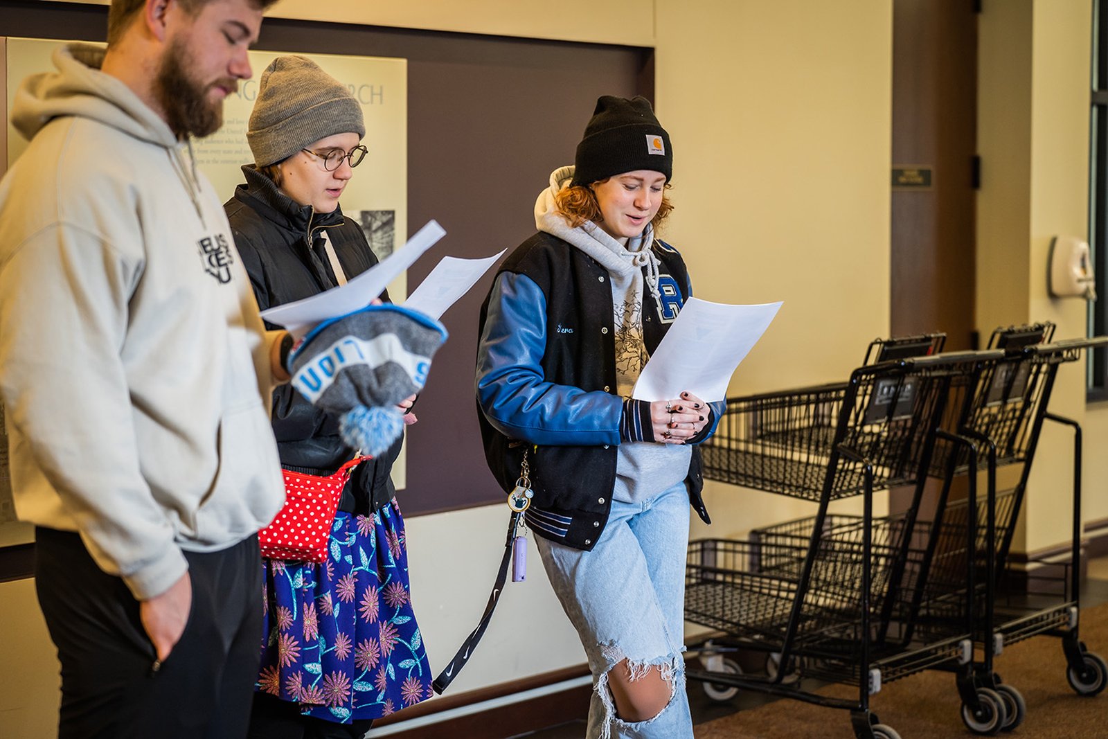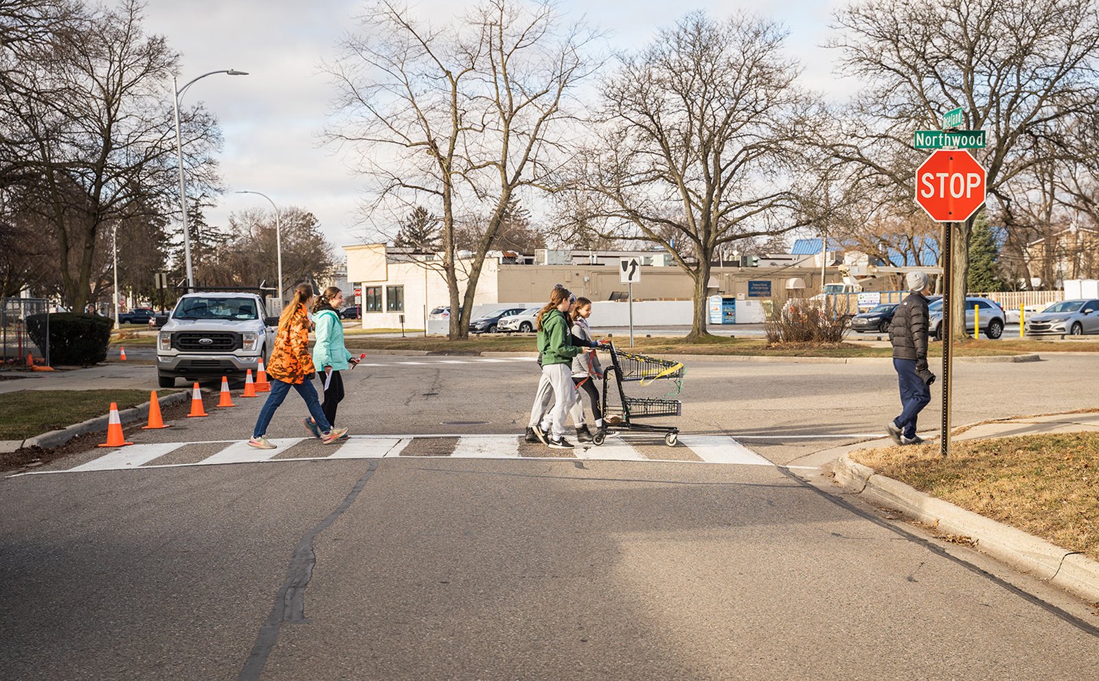 Teenagers from the National Shrine of the Little Flower Basilica in Royal Oak prepare to canvas the neighborhood with grocery carts looking for "scavenger hunt" items to benefit a shelter in Detroit as part of the Archdiocese of Detroit's annual Martin Luther King Jr. Day of Service on Jan. 14. (Valaurian Waller | Detroit Catholic)