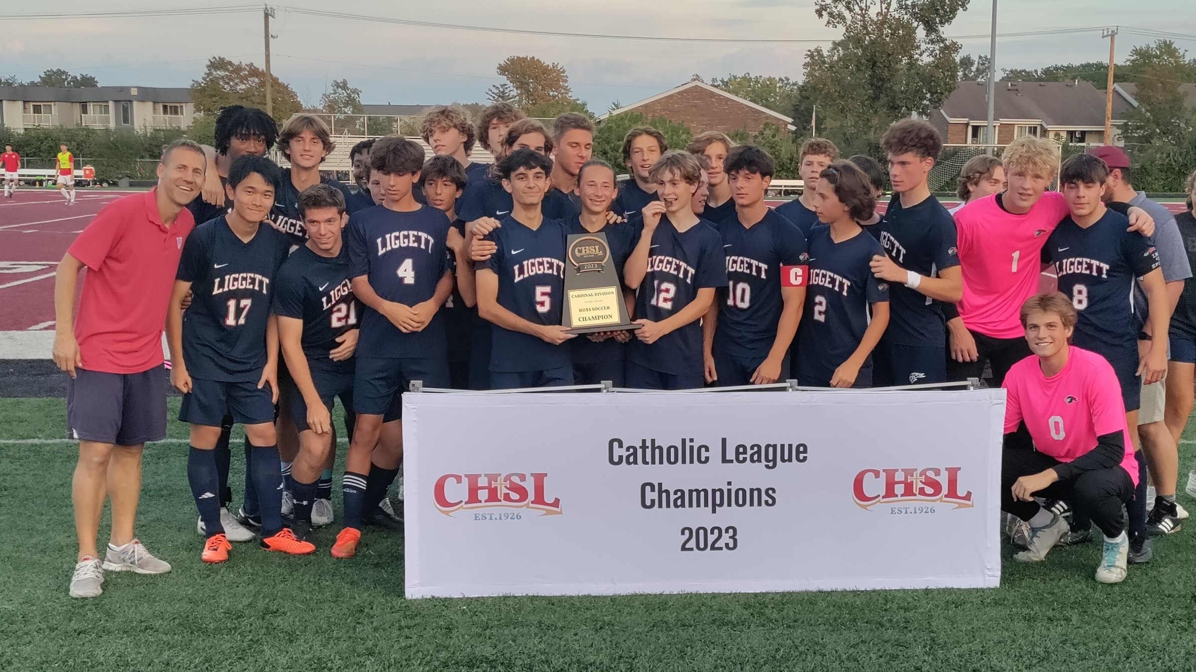 In the first game, Grosse Pointe Woods University Liggett (13-0, ranked No. 1 in Division 4 in the state) won its third consecutive Cardinal Division title by beating Macomb Bishop Foley (12-2-1, ranked No. 6), 4-1.