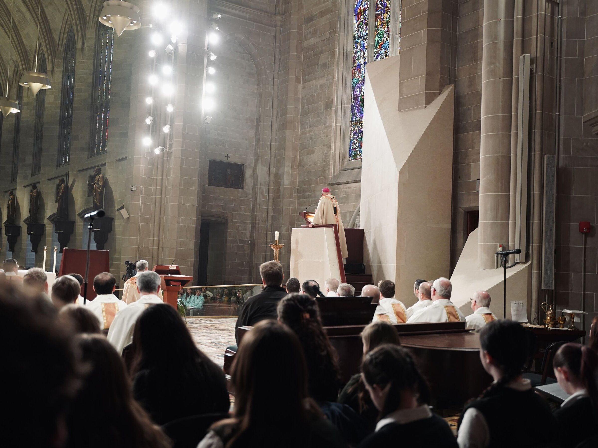 On Thursday, Jan. 29, Archbishop Weisenburger and Auxiliary Bishop Robert J. Fisher celebrated the annual Catholic Schools Week Mass with students, teachers and Catholic school administrators from across the Archdiocese of Detroit who gathered at the Cathedral of the Most Blessed Sacrament in Detroit. The celebration is a chance to reflect on the many blessings of a Catholic education, and to give God thanks for the ways in which Catholic schools form disciples in faith, hope and charity.