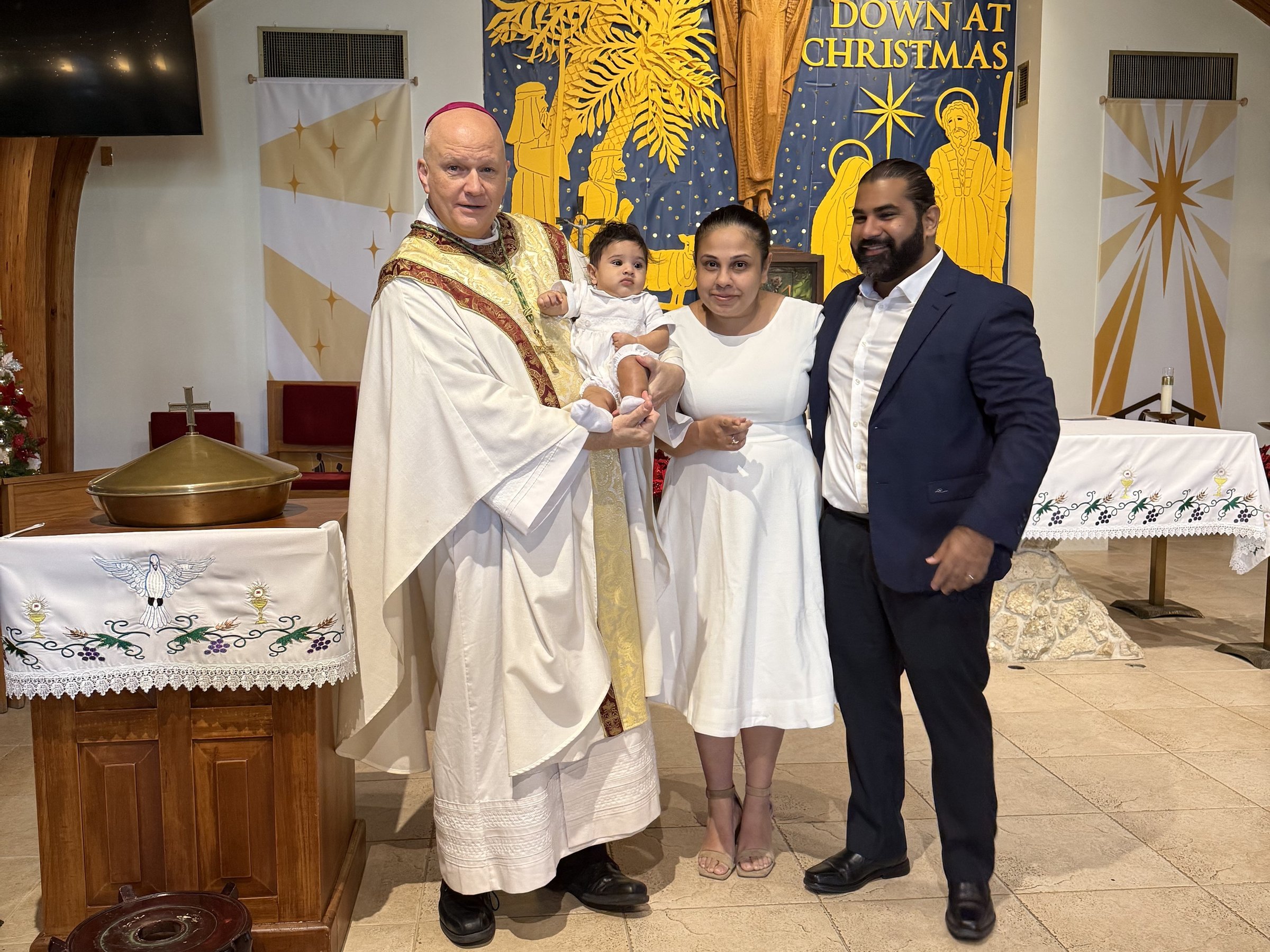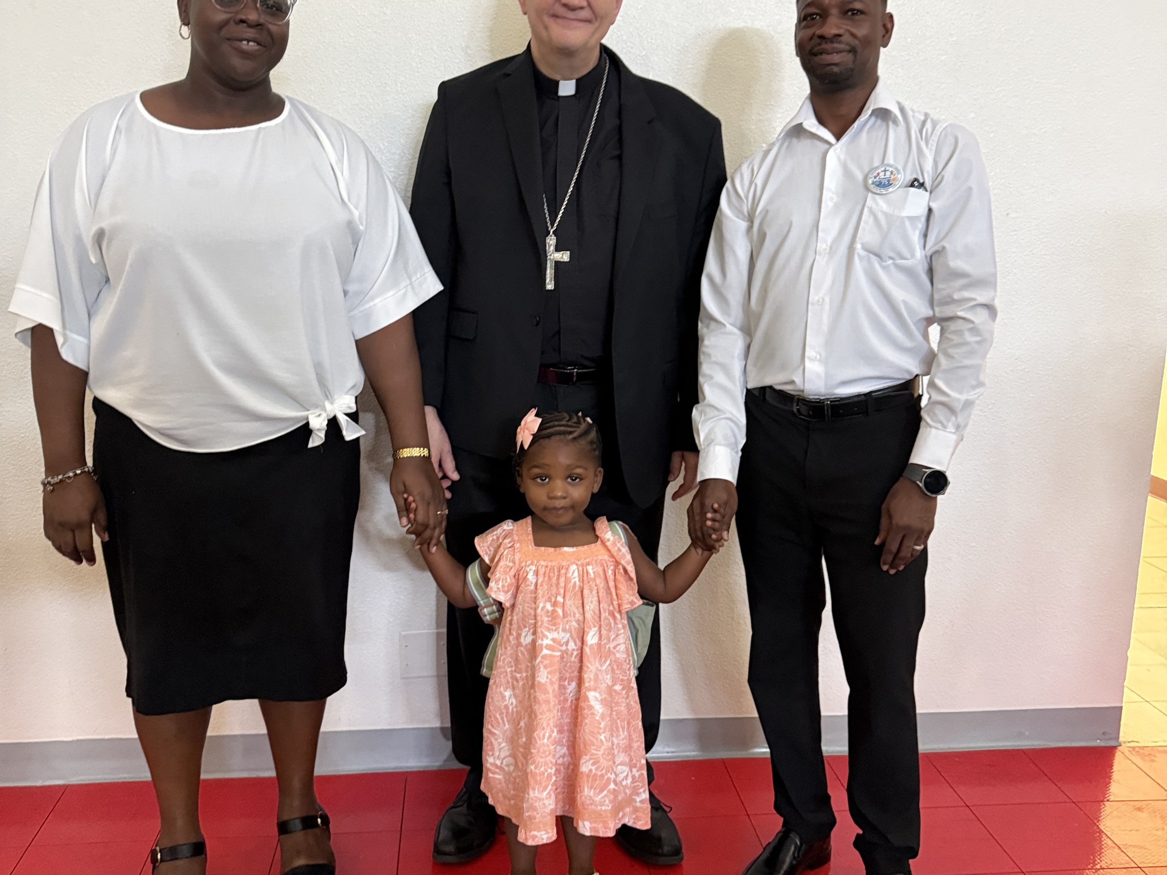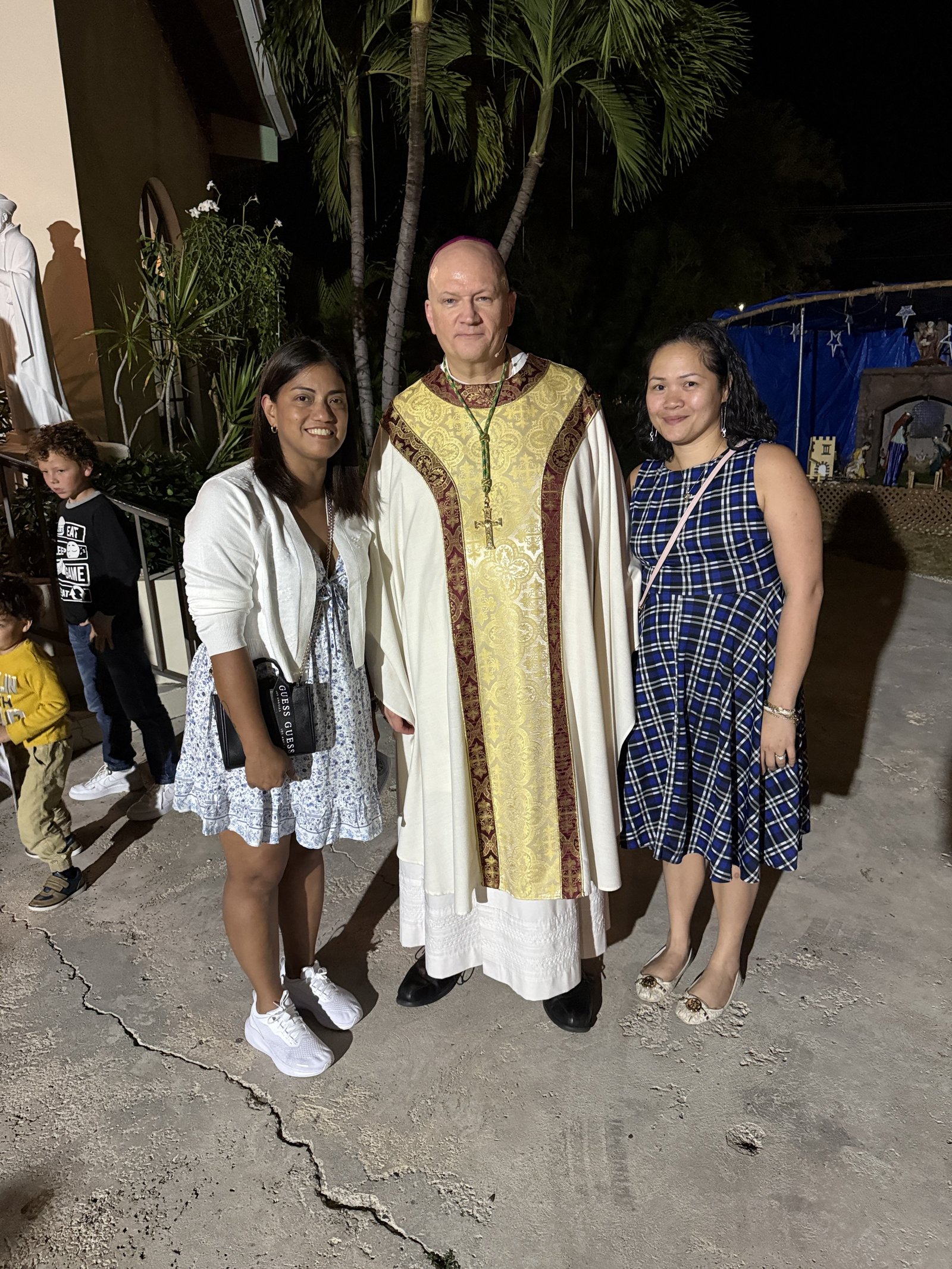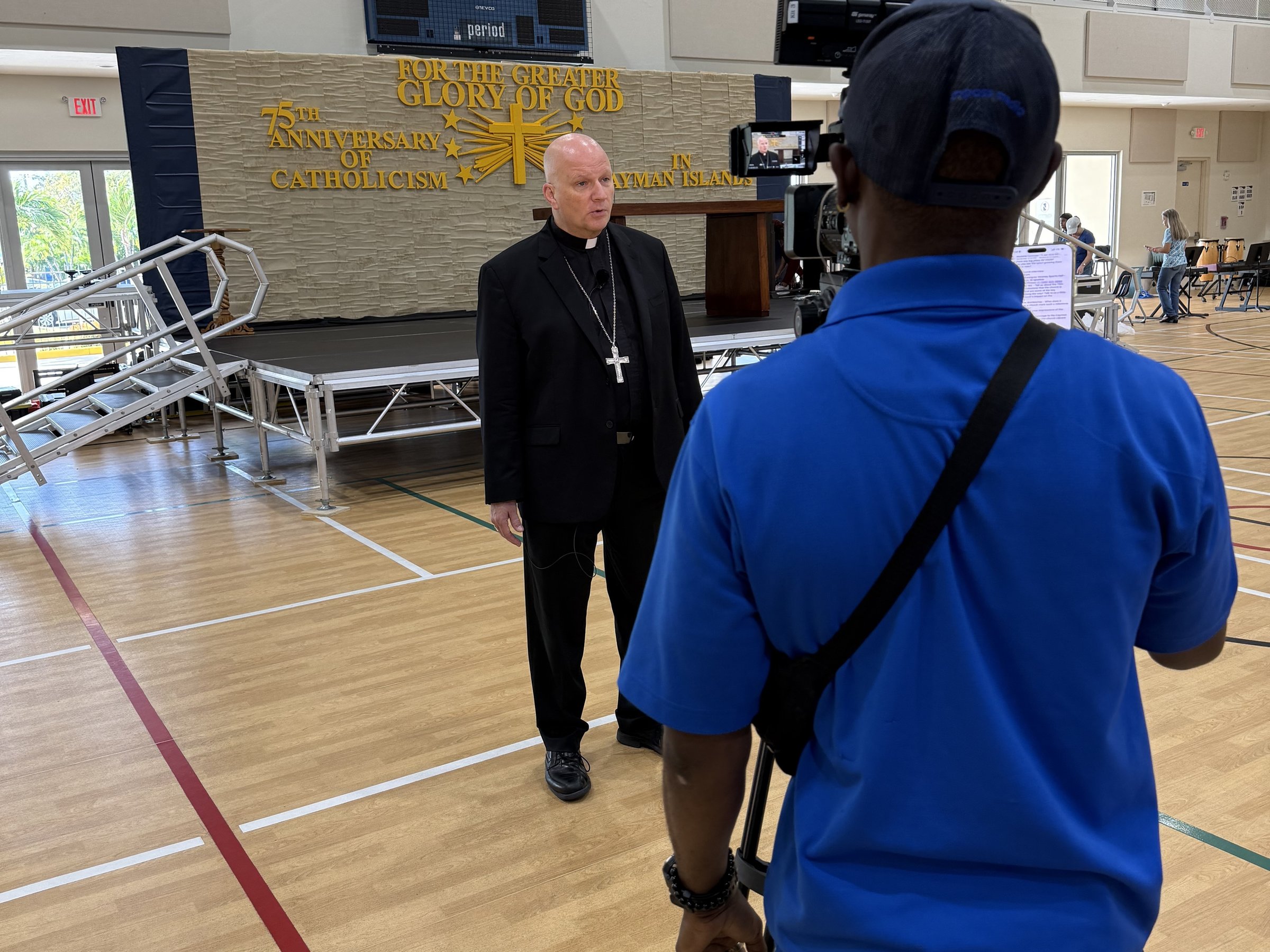 Archbishop Weisenburger flew to the Cayman Islands for a pastoral visit with the faithful of St. Ignatius Parish in Grand Cayman, a mission sui iuris under the pastoral care of the archbishop of Detroit. On Thursday, Jan. 8, the archbishop celebrated Mass, toured the parish school and stopped at Christ the Redeemer Church, one of three churches belonging to the Caribbean parish. Since 2000, the Catholic Church in the Cayman Islands has enjoyed a special relationship to the people of southeast Michigan. Archbishop Weisenburger visited with parishioners, staff and clergy, including Fr. Joe Kirkconnell, a native of the islands who currently serves at Sacred Heart Major Seminary, as well as Fr. Anthony Fernandes, SAC, and Fr. Avinash Mascarenhas, SAC, who serve at St. Ignatius Parish. On Jan. 9, the archbishop attended a banquet in celebration of the parish’s 75th anniversary, and celebrated the parish’s anniversary Mass on Jan. 11.