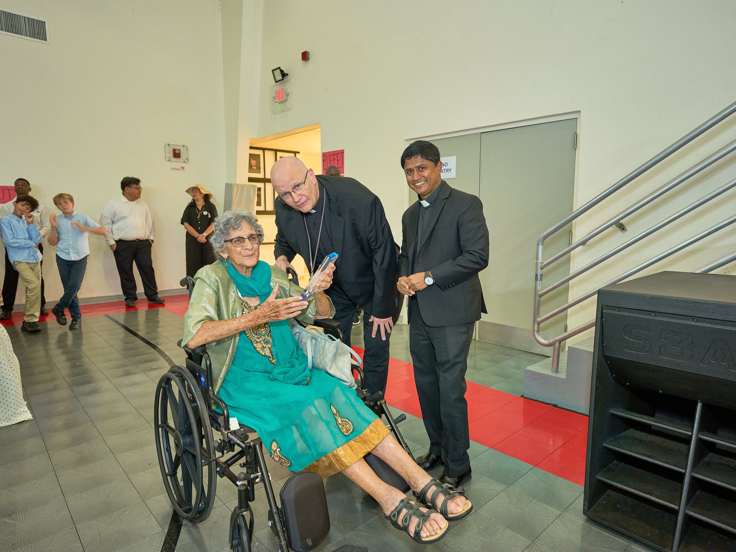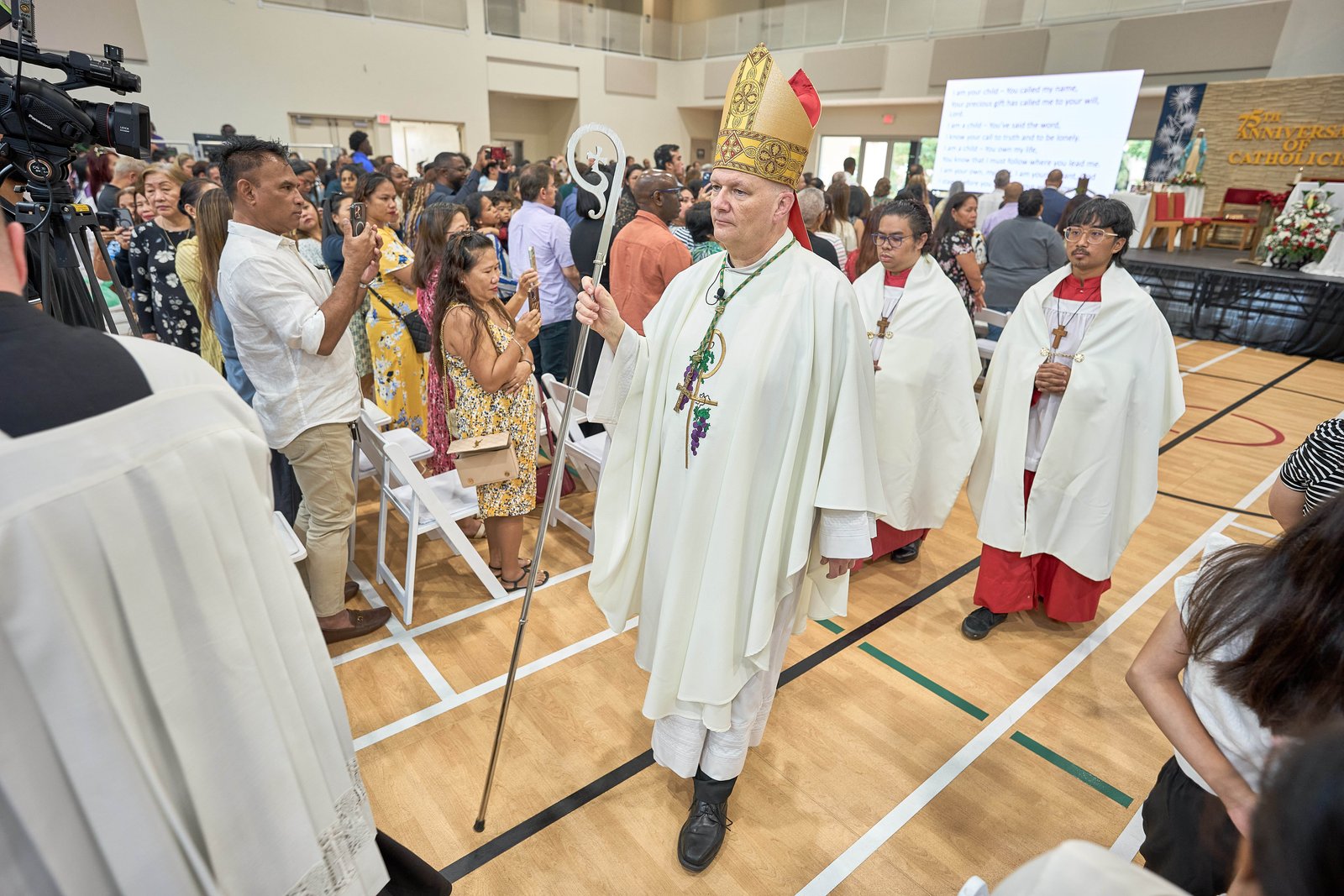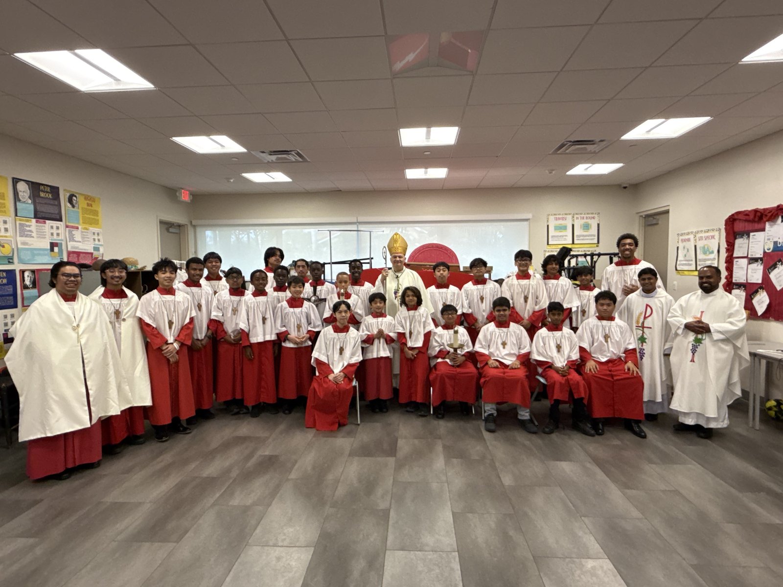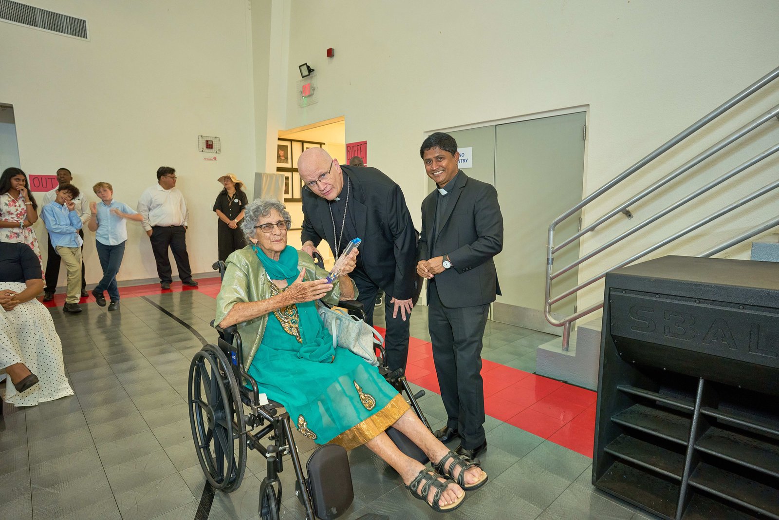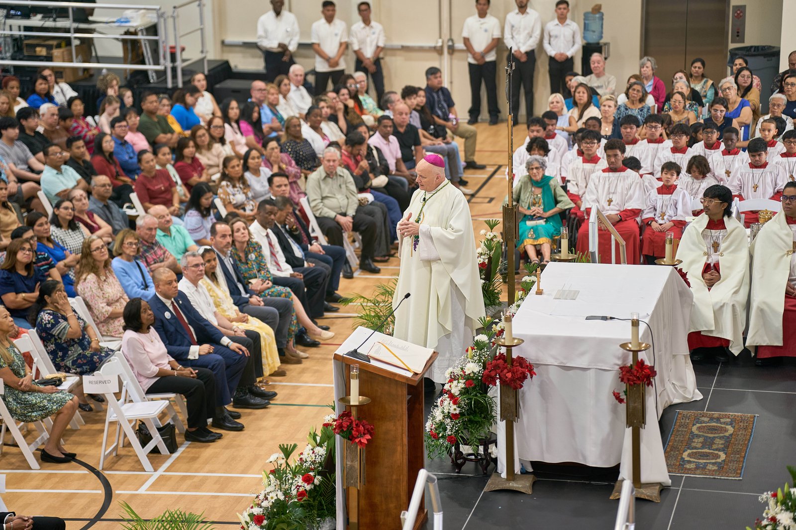 Archbishop Weisenburger flew to the Cayman Islands for a pastoral visit with the faithful of St. Ignatius Parish in Grand Cayman, a mission sui iuris under the pastoral care of the archbishop of Detroit. On Thursday, Jan. 8, the archbishop celebrated Mass, toured the parish school and stopped at Christ the Redeemer Church, one of three churches belonging to the Caribbean parish. Since 2000, the Catholic Church in the Cayman Islands has enjoyed a special relationship to the people of southeast Michigan. Archbishop Weisenburger visited with parishioners, staff and clergy, including Fr. Joe Kirkconnell, a native of the islands who currently serves at Sacred Heart Major Seminary, as well as Fr. Anthony Fernandes, SAC, and Fr. Avinash Mascarenhas, SAC, who serve at St. Ignatius Parish. On Jan. 9, the archbishop attended a banquet in celebration of the parish’s 75th anniversary, and celebrated the parish’s anniversary Mass on Jan. 11.