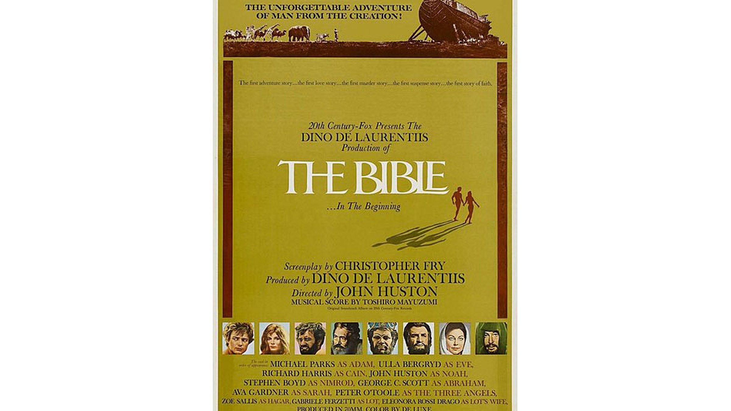 Director John Huston (The Maltese Falcon; The African Queen), composed a sweeping overview of the first 22 chapters of Genesis — from Adam and Eve to Abraham and Sarah. To his credit, the movie tastefully avoids being boring or vulgar, even providing welcome humor to the story of the Deluge, as Huston himself takes on the role of Noah.