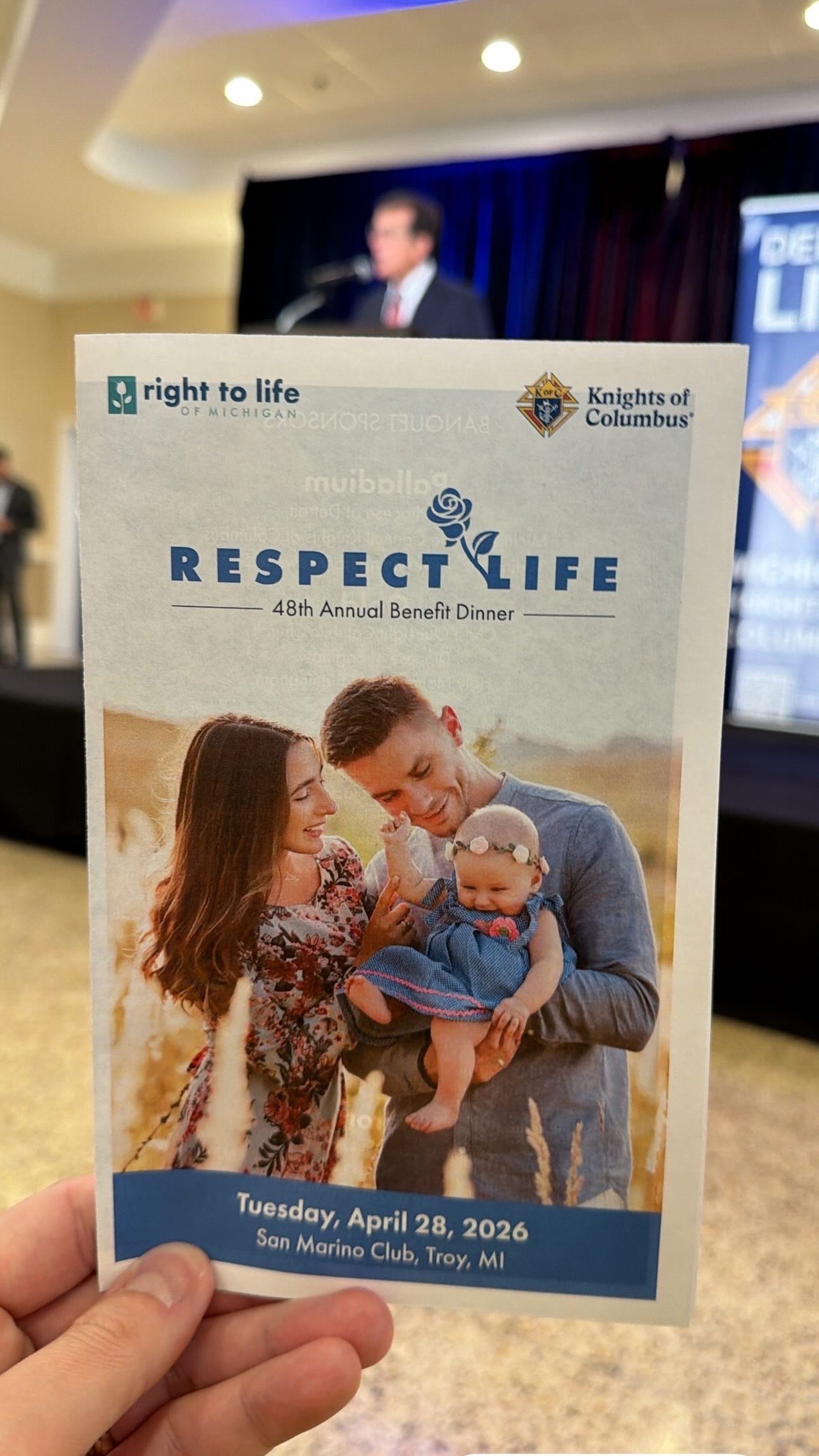 On Tuesday, April 28, Archbishop Weisenburger attended the 48th annual Respect Life Benefit Dinner sponsored by Right to Life Michigan and the Michigan Knights of Columbus at the San Marino Club in Troy. The annual dinner raises money to support life by providing aid to pro-life causes and mothers and children in need.