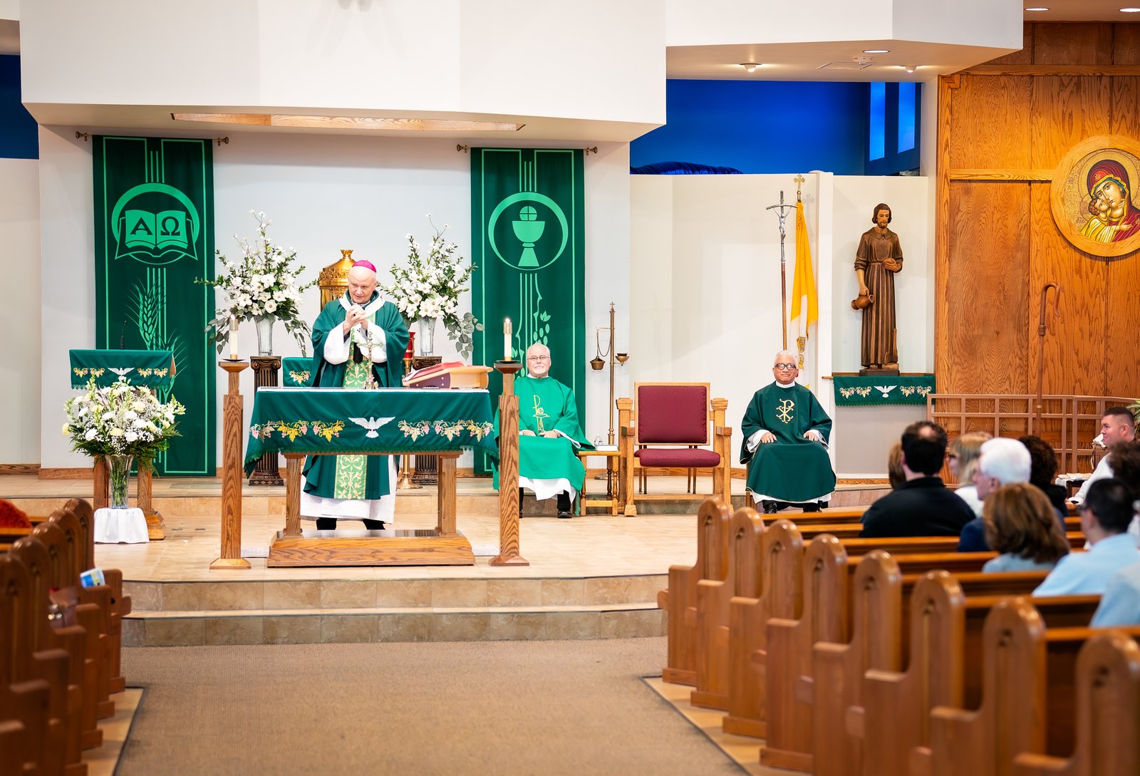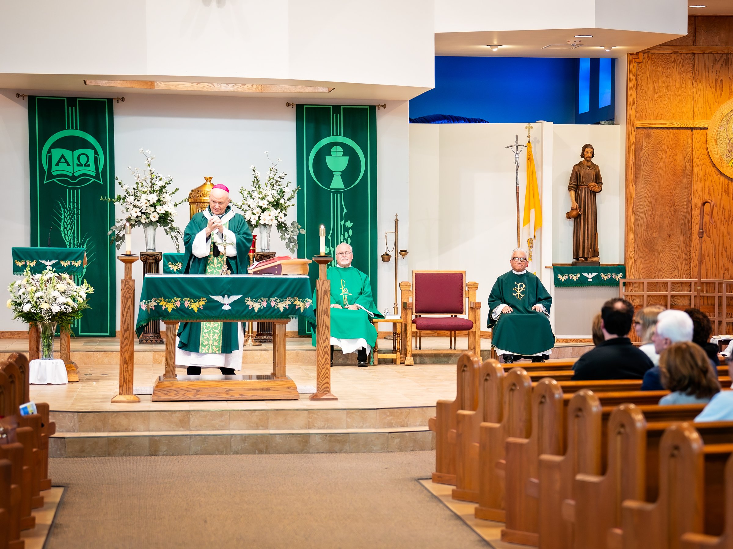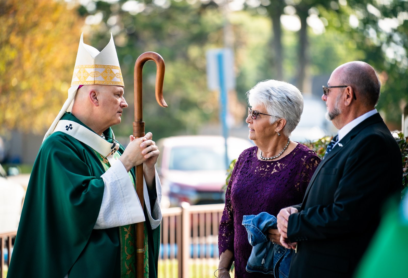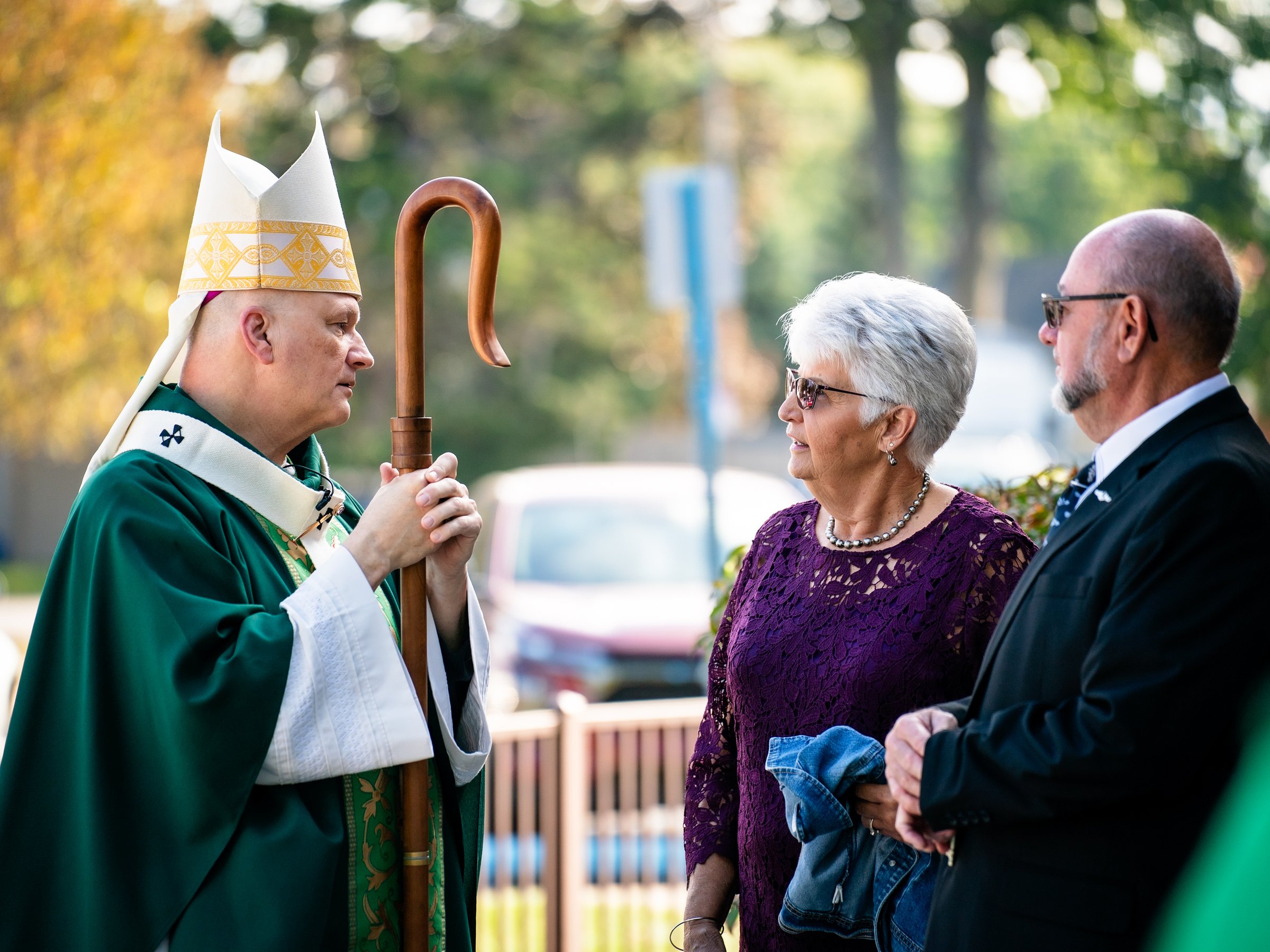 On Sunday, Oct. 12, Archbishop Weisenburger joined parishioners, clergy and friends in celebrating the 75th anniversary of St. Pius X Parish in Southgate. The archbishop celebrated Mass at the Downriver parish along with Fr. Don LaCuesta and stopped to greet parishioners afterward, sharing smiles and conversation about the parish's rich history in the community.