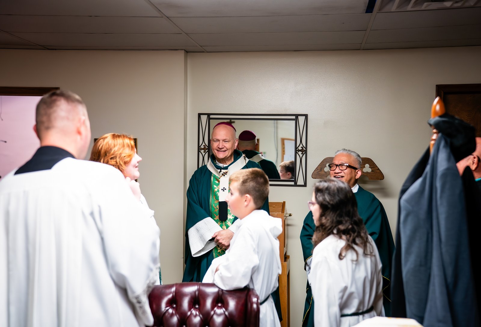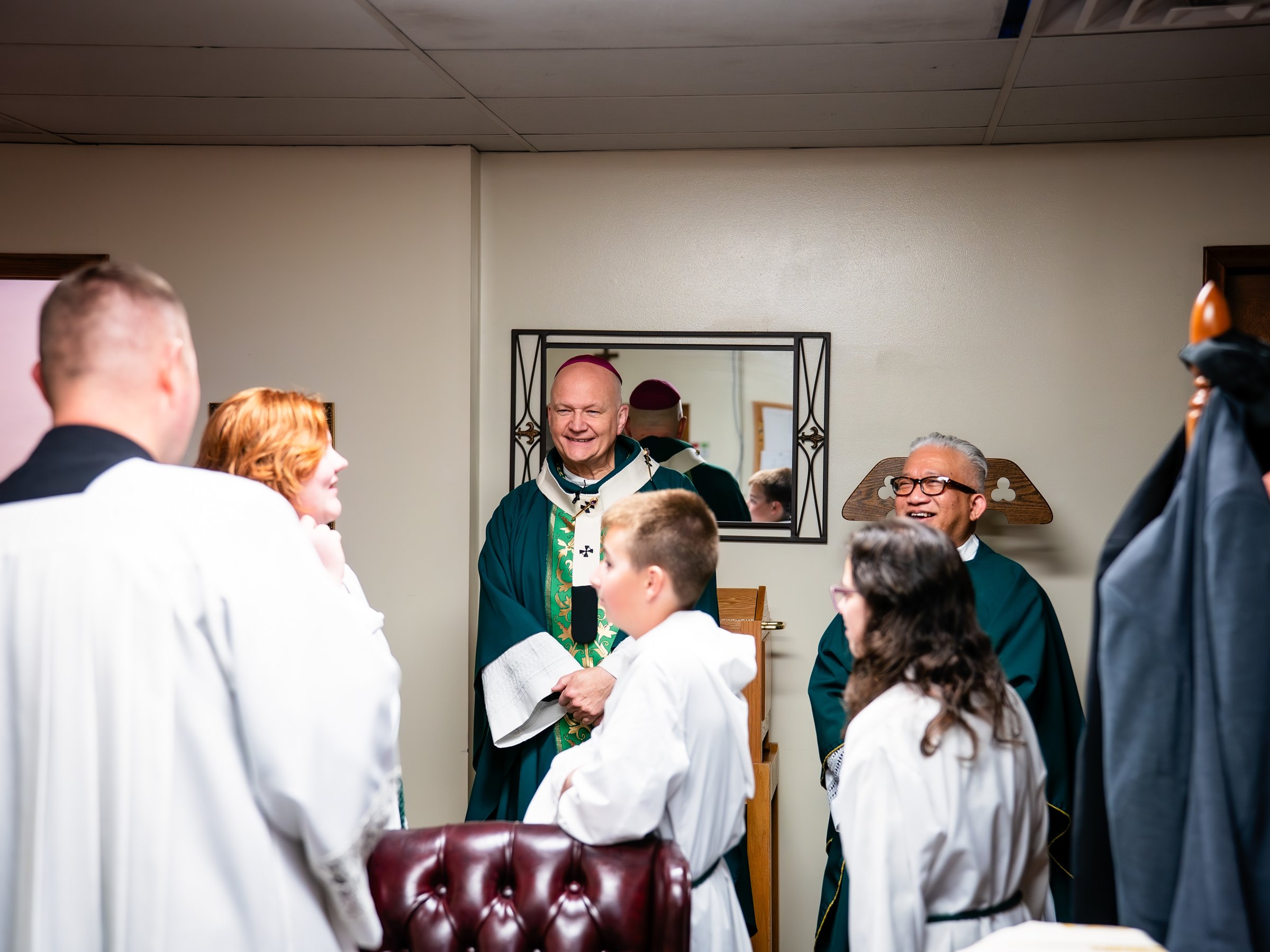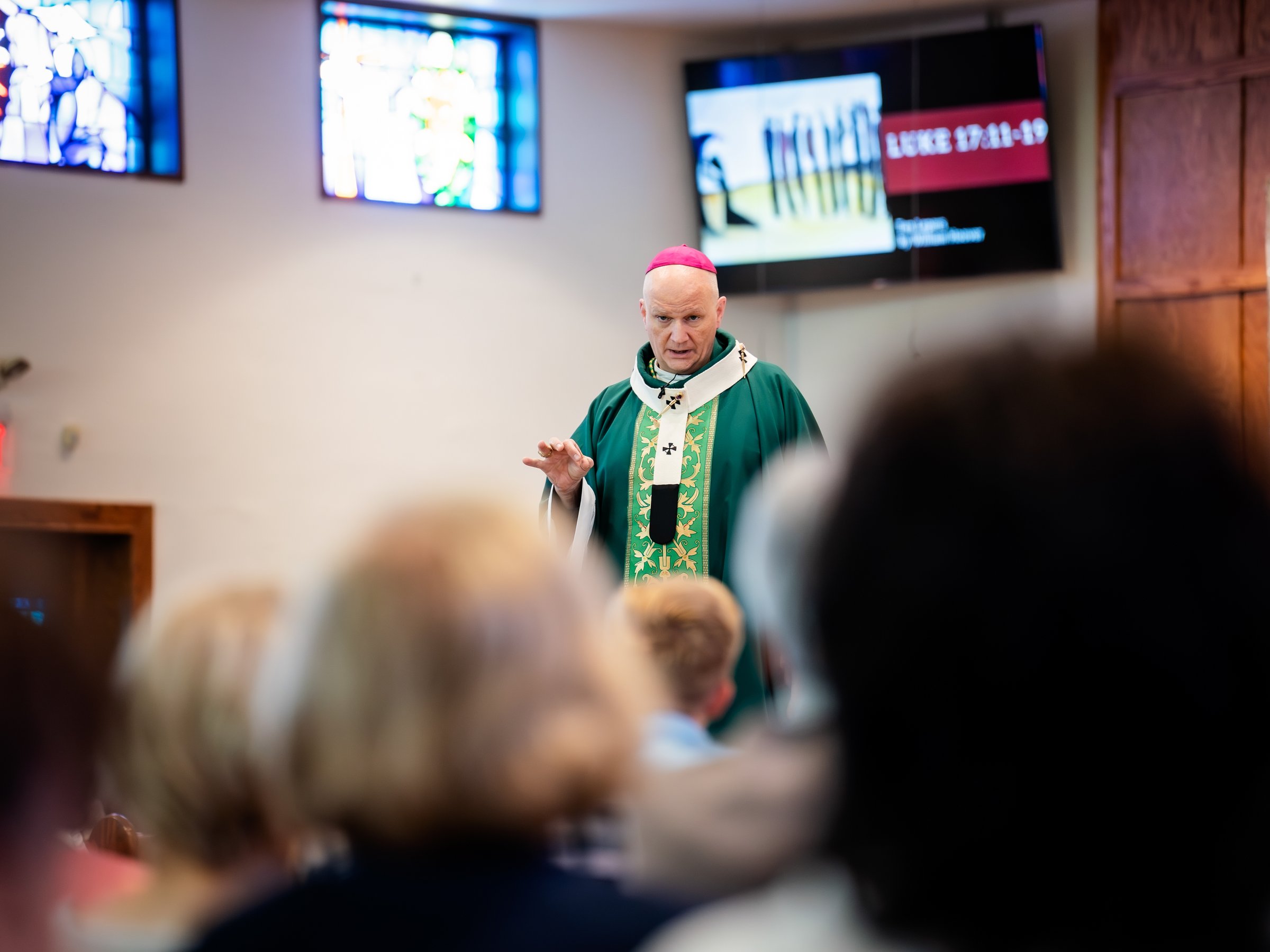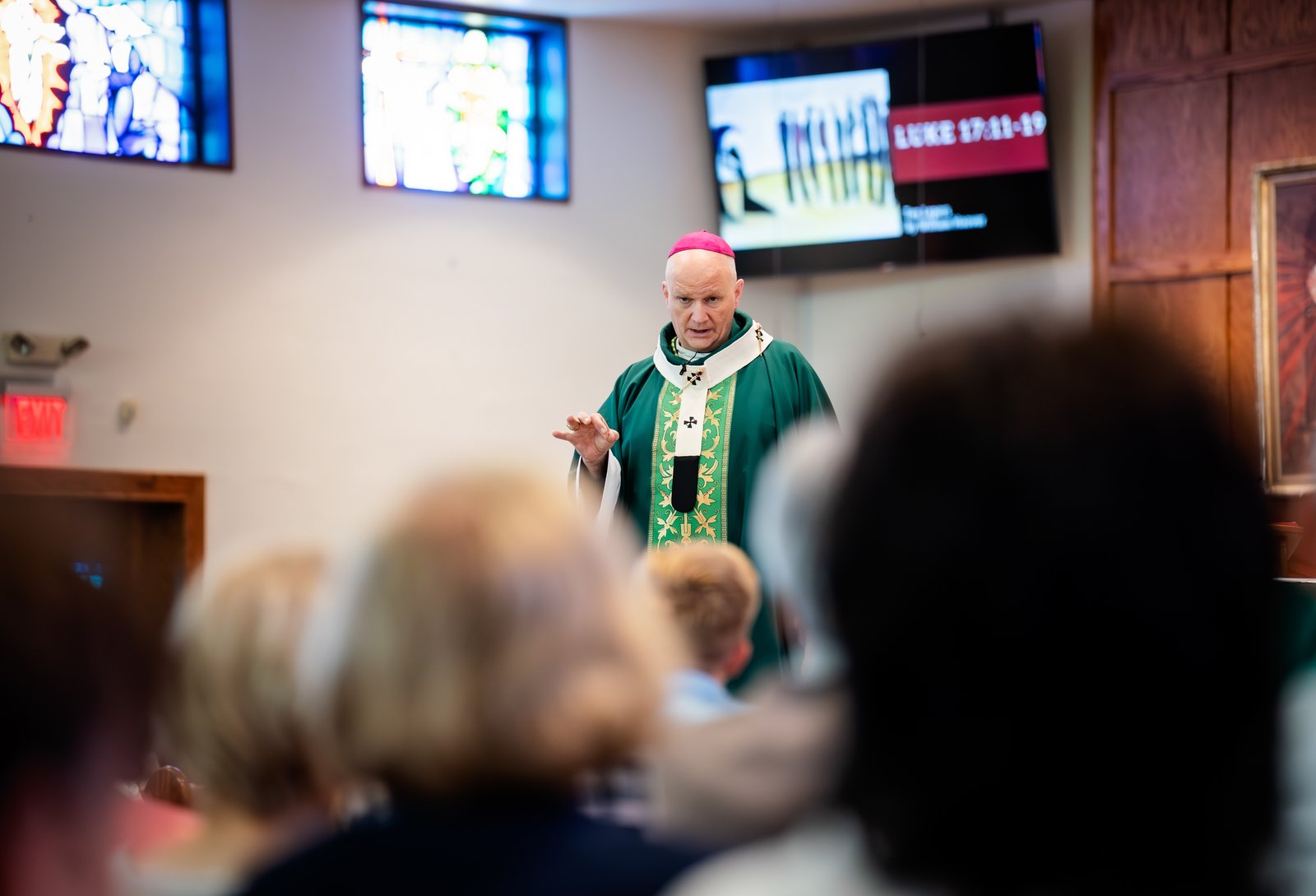 On Sunday, Oct. 12, Archbishop Weisenburger joined parishioners, clergy and friends in celebrating the 75th anniversary of St. Pius X Parish in Southgate. The archbishop celebrated Mass at the Downriver parish along with Fr. Don LaCuesta and stopped to greet parishioners afterward, sharing smiles and conversation about the parish's rich history in the community.