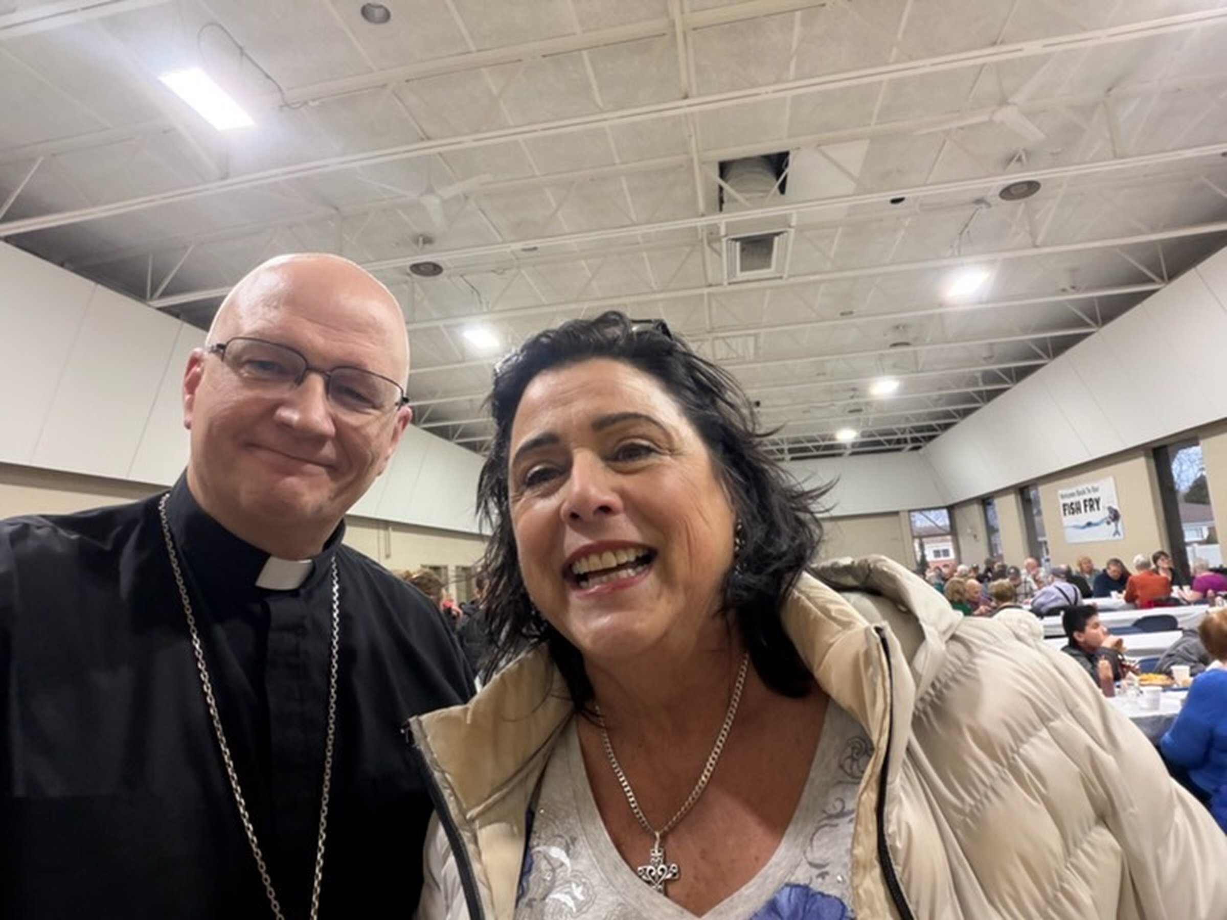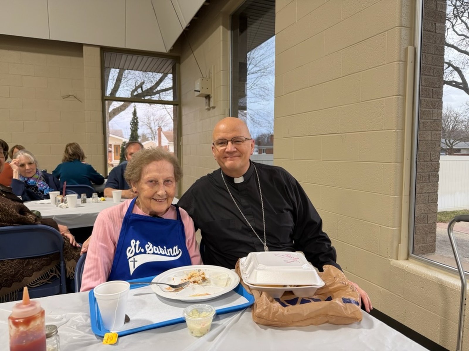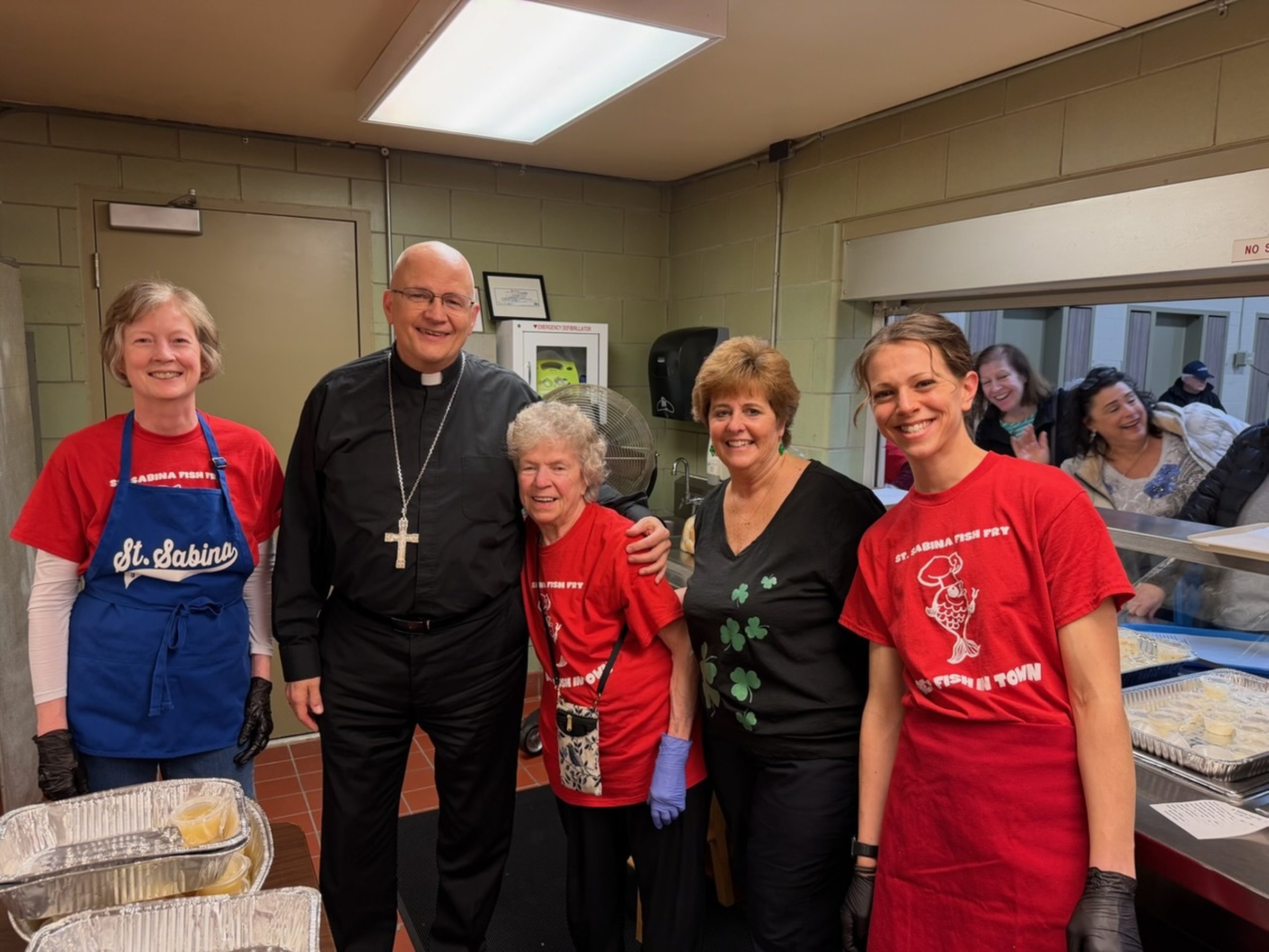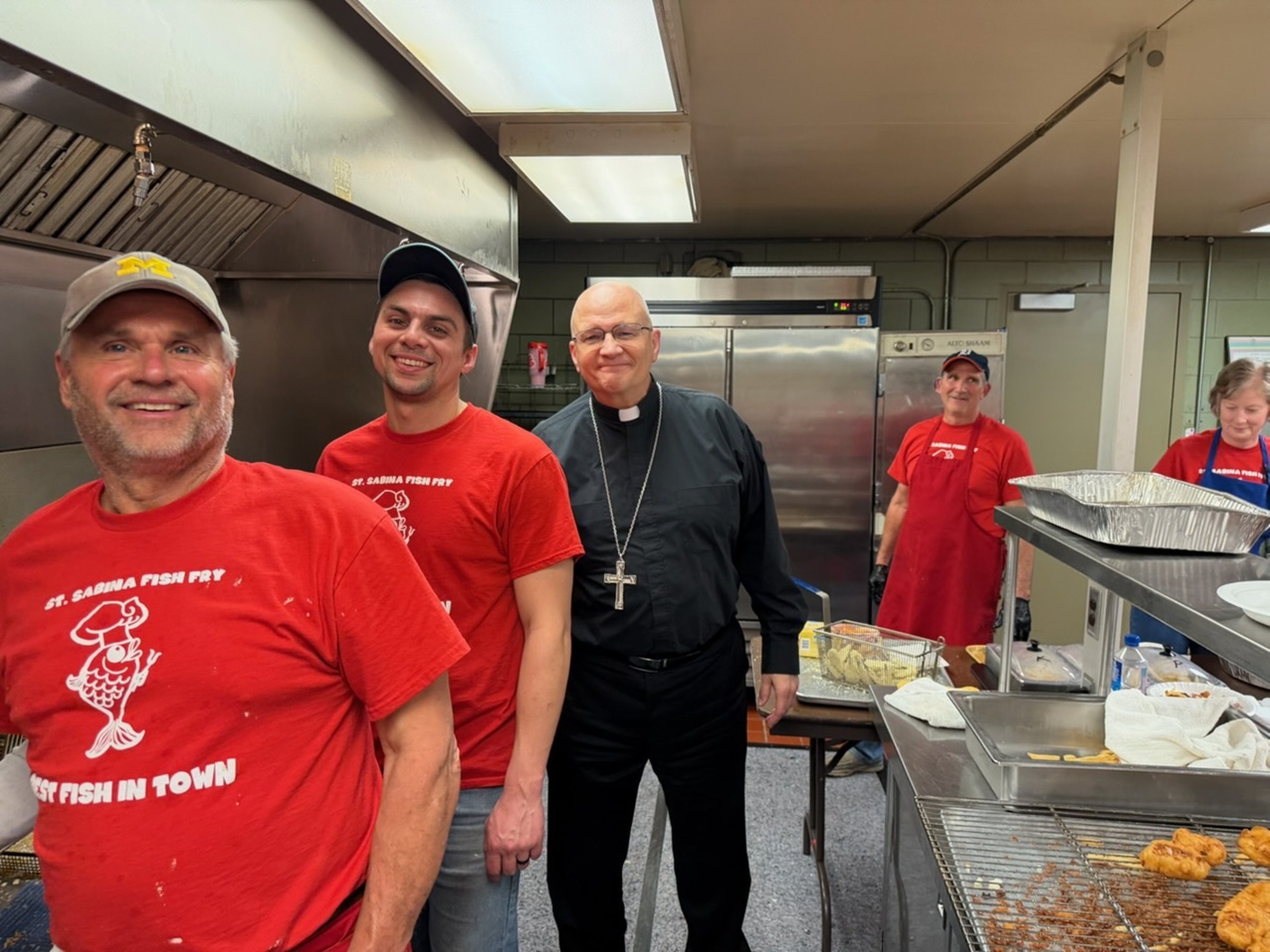 On Friday, March 13, Archbishop Weisenburger joined parishioners, volunteers and community members at St. Sabina Parish in Dearborn Heights for its Lenten fish fry. The archbishop enjoyed good conversation and great food with fellow diners, chatted with a 100-year-old parishioner, and even “helped” kitchen volunteers make the fries.