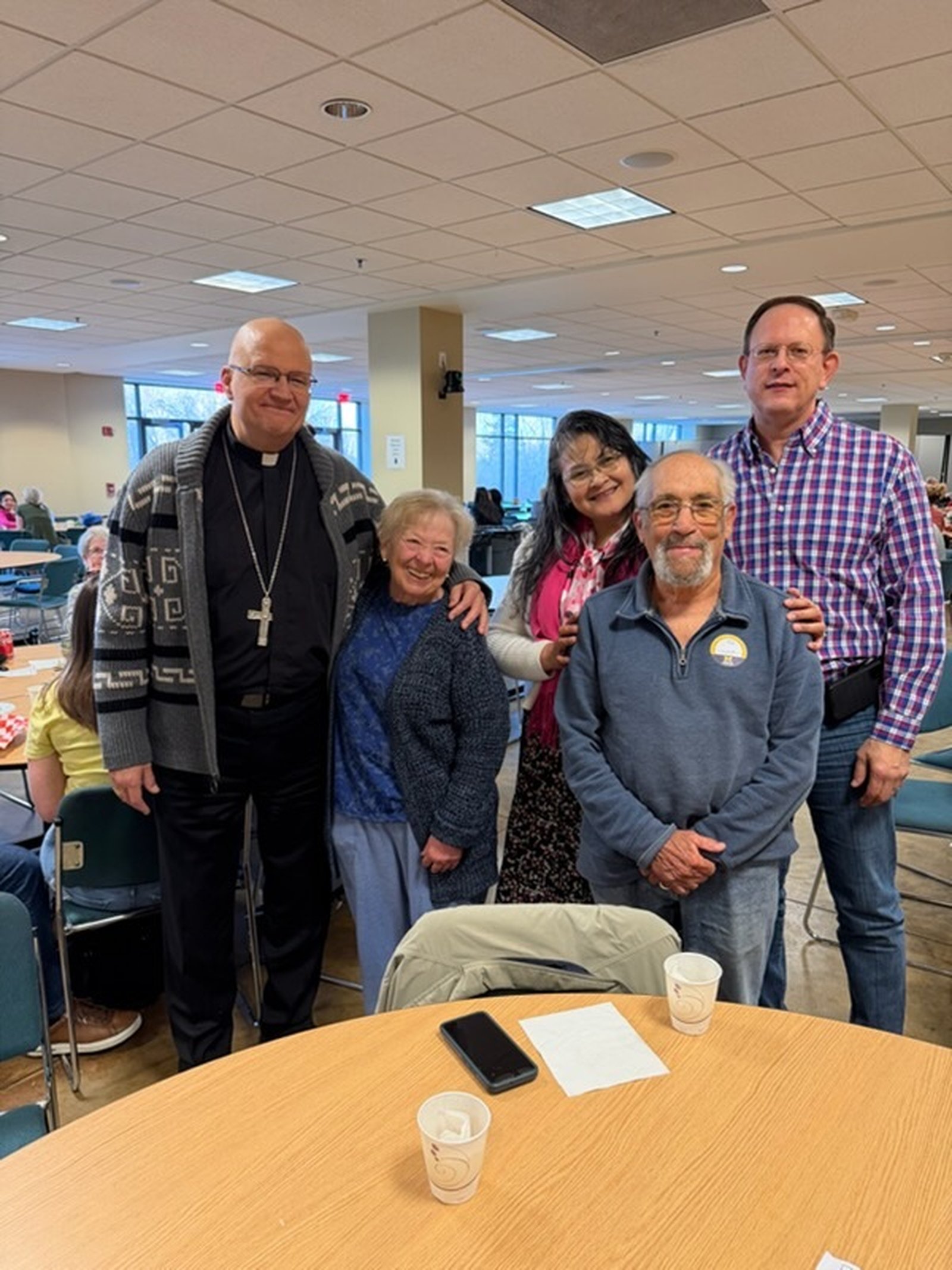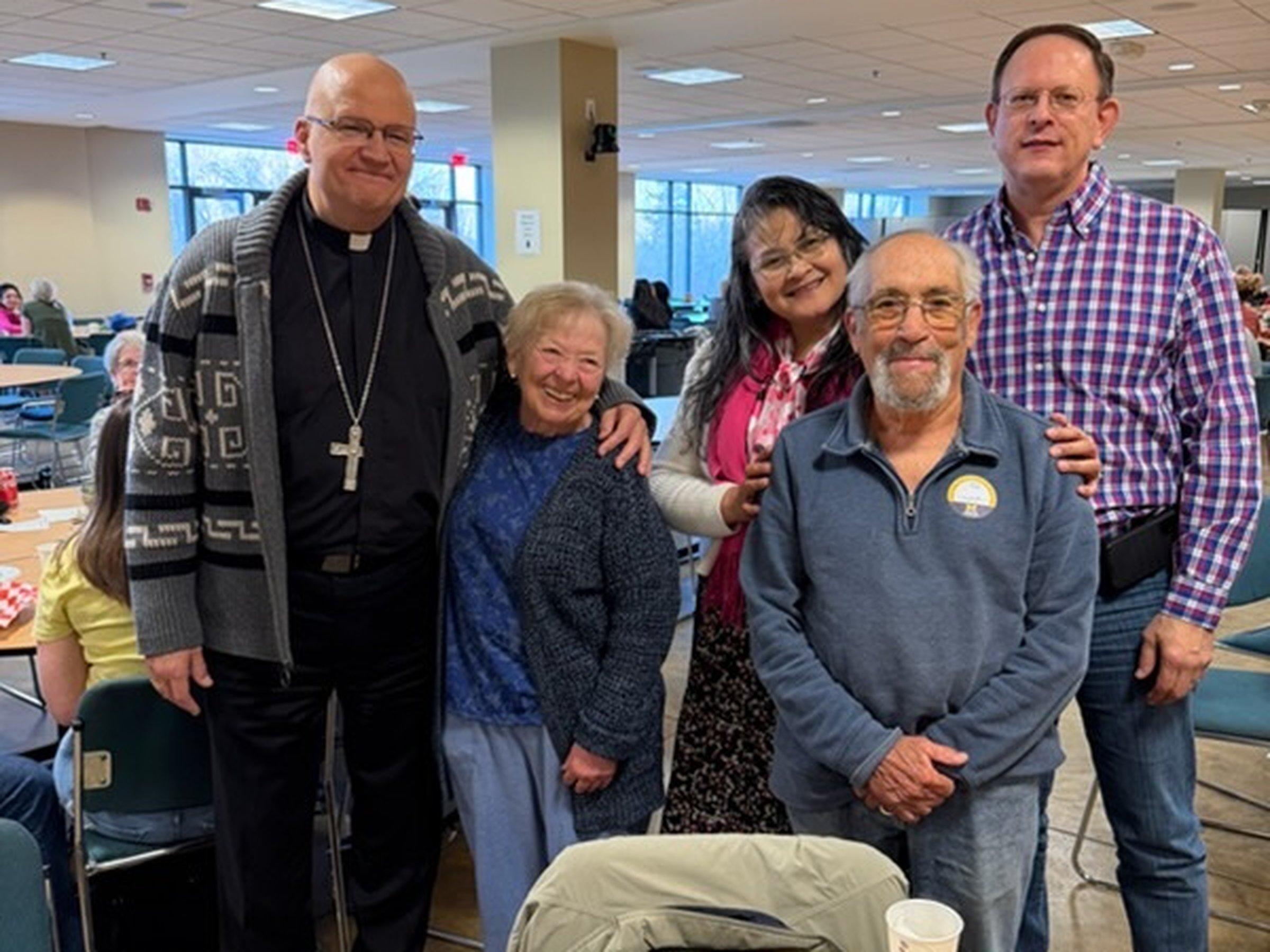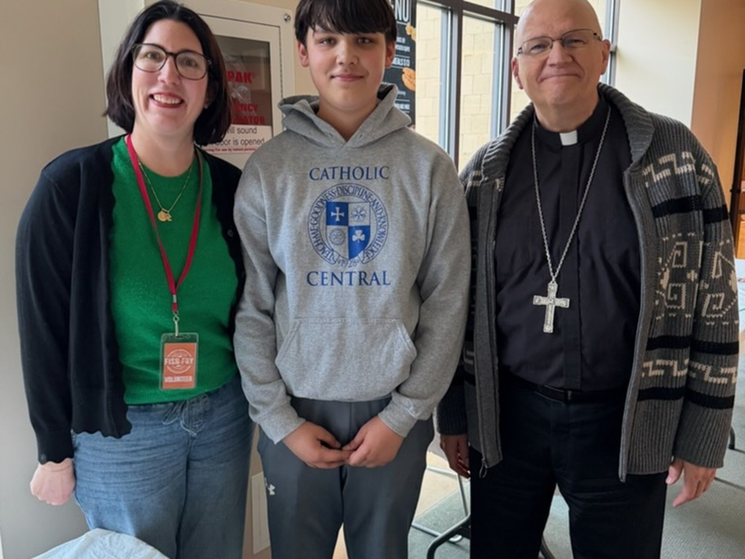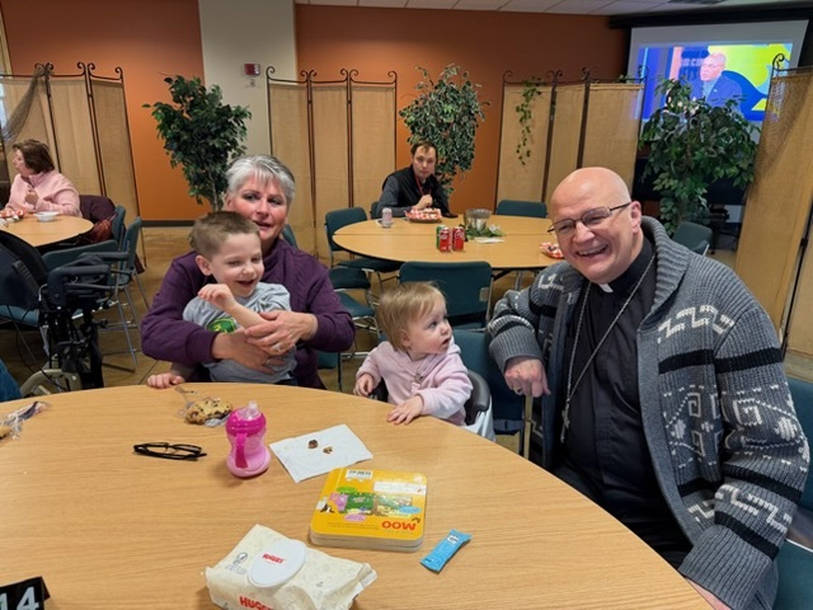 On Friday, March 20, Archbishop Weisenburger continued his parish fish fry tour with a Lenten Friday visit to Our Lady of Good Counsel Parish in Plymouth. The archbishop greatly enjoyed meeting and chatting with parishioners and patrons, especially Mary and her father (pictured above), and the many families who attended. The archbishop attended the fish fry with Fr. Timothy Birney, vicar general and moderator of the curia for the Archdiocese of Detroit, whose brother, Mike Birney, organized the fish fry.