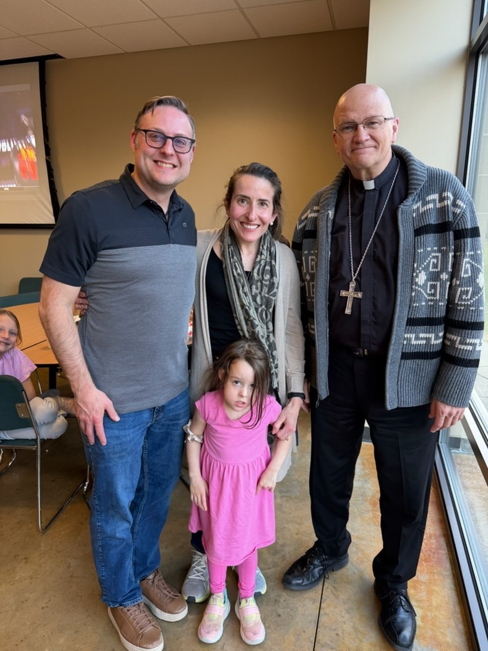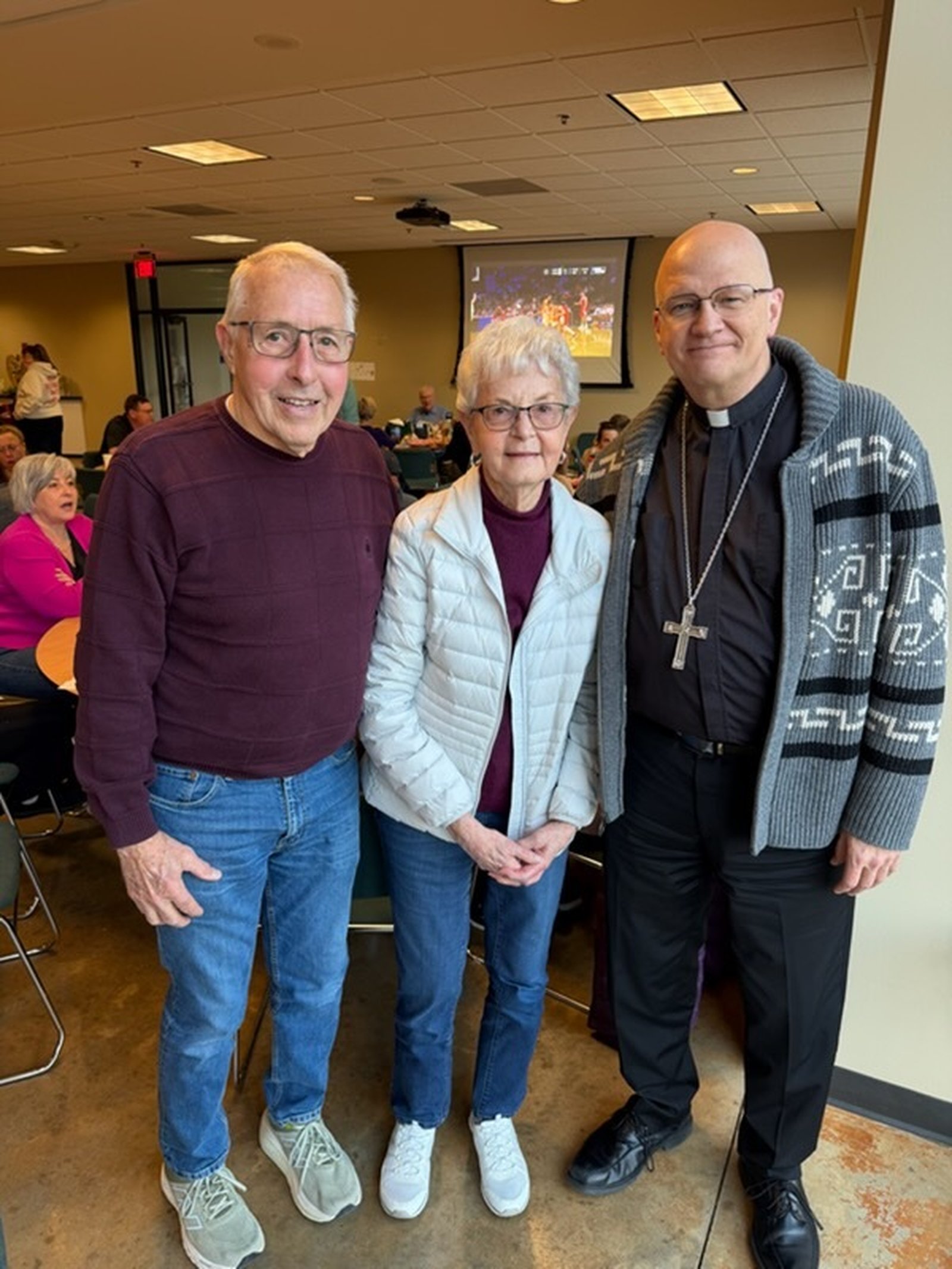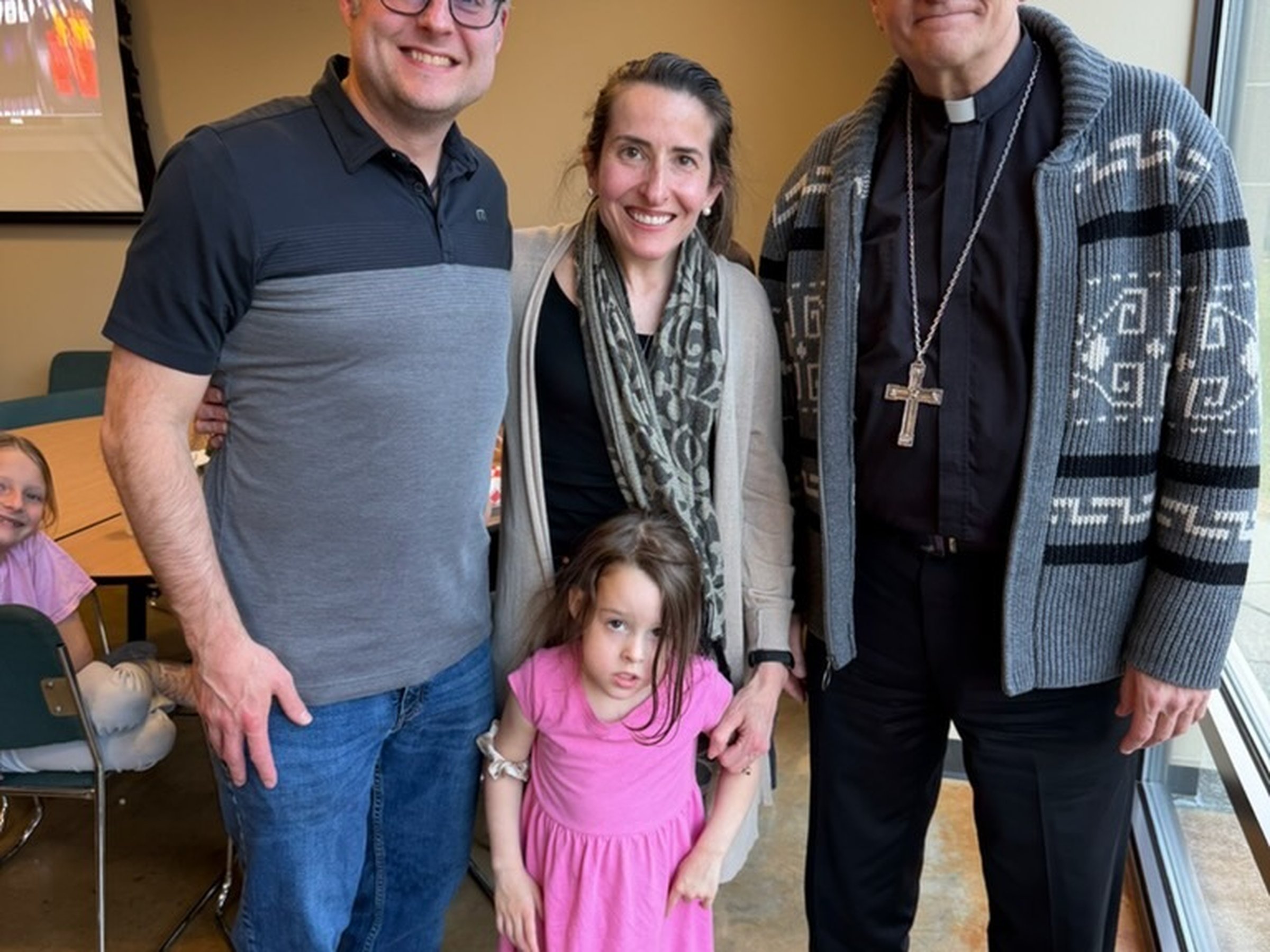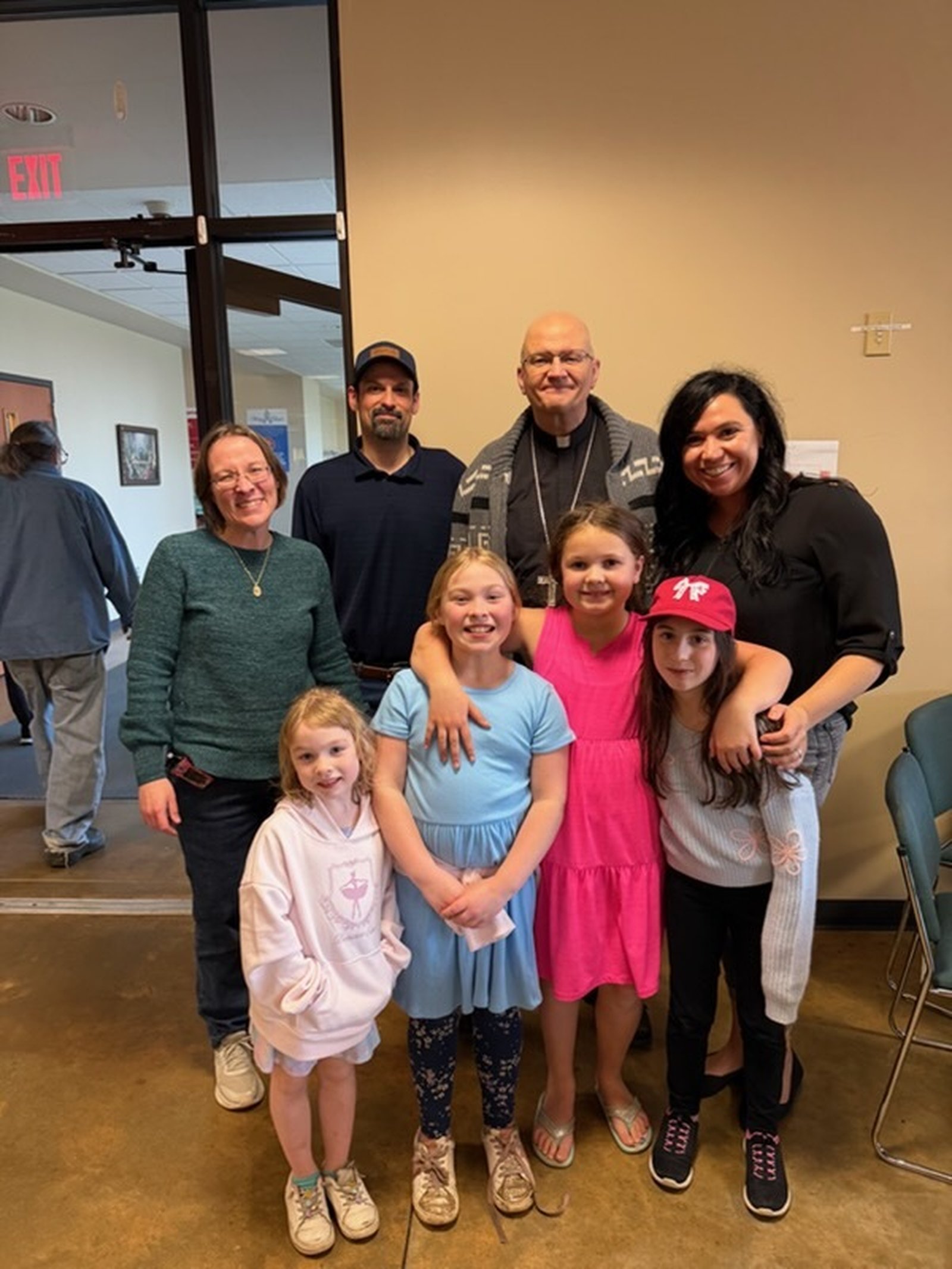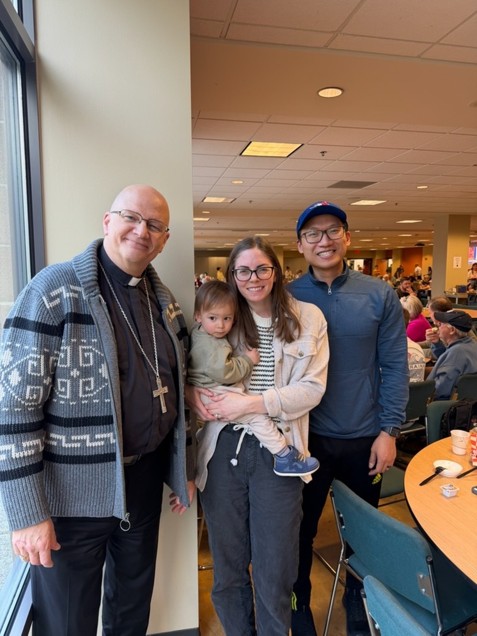 On Friday, March 20, Archbishop Weisenburger continued his parish fish fry tour with a Lenten Friday visit to Our Lady of Good Counsel Parish in Plymouth. The archbishop greatly enjoyed meeting and chatting with parishioners and patrons, especially Mary and her father (pictured above), and the many families who attended. The archbishop attended the fish fry with Fr. Timothy Birney, vicar general and moderator of the curia for the Archdiocese of Detroit, whose brother, Mike Birney, organized the fish fry.