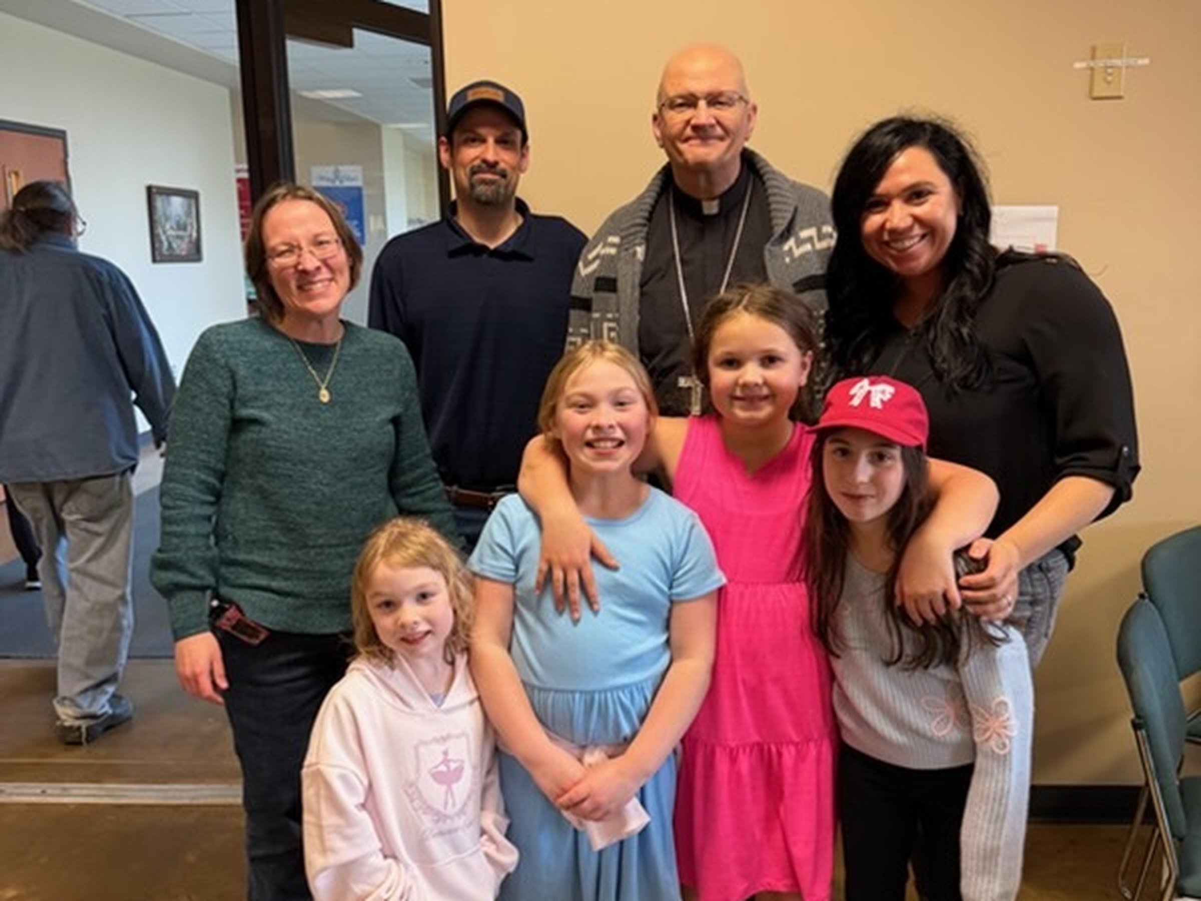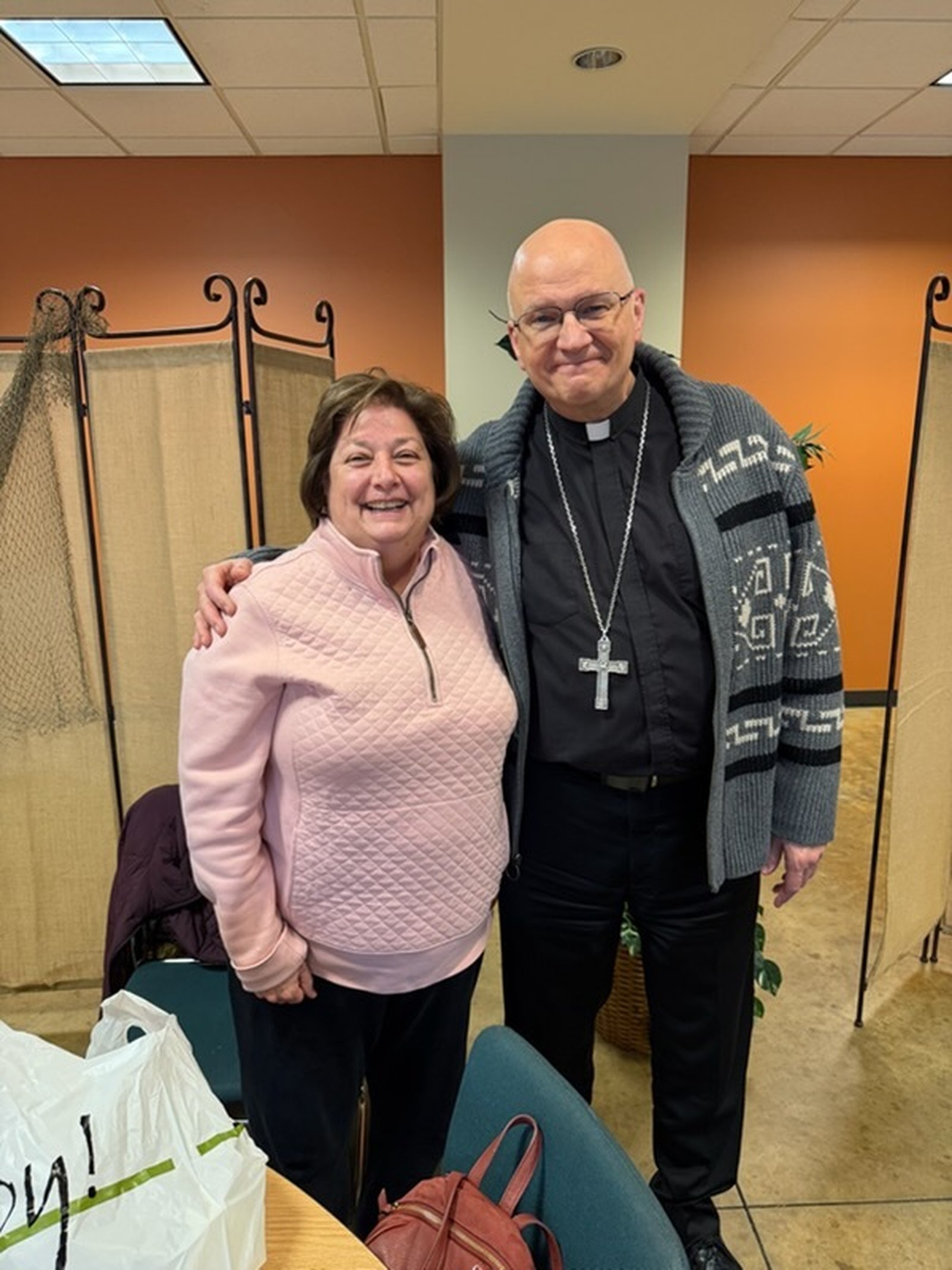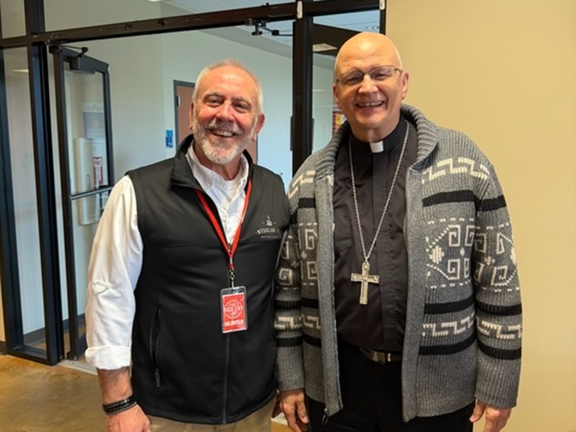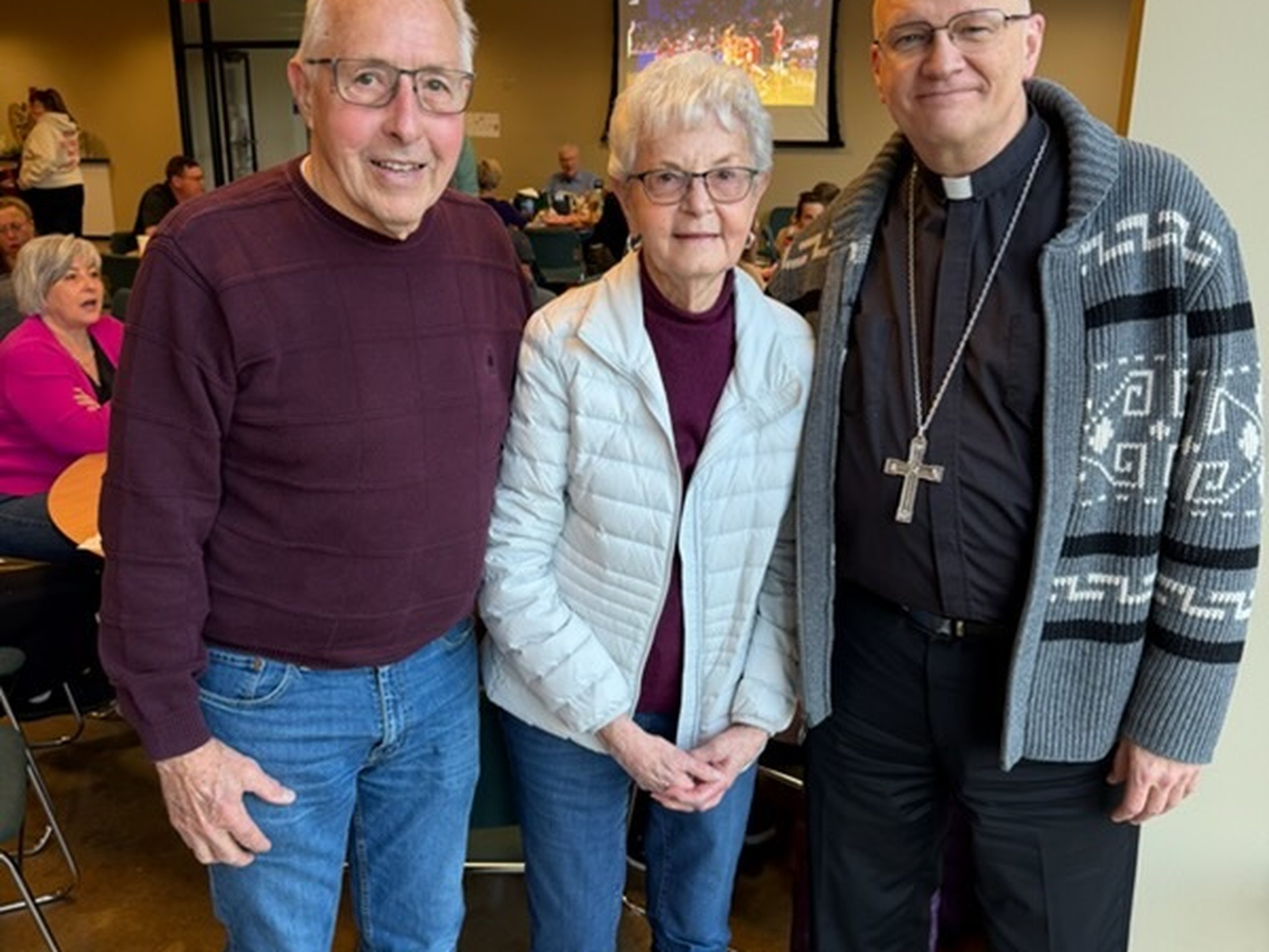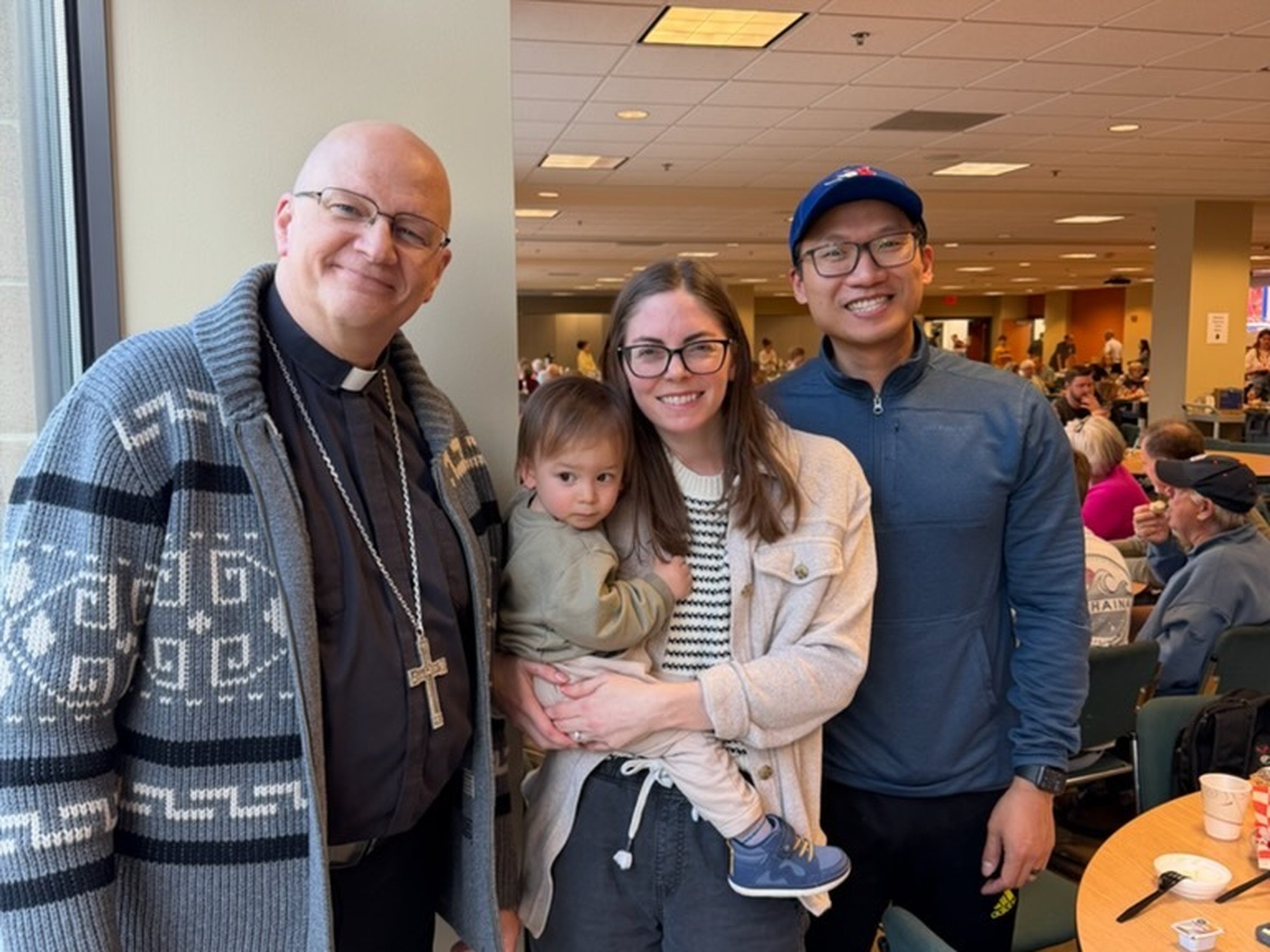 On Friday, March 20, Archbishop Weisenburger continued his parish fish fry tour with a Lenten Friday visit to Our Lady of Good Counsel Parish in Plymouth. The archbishop greatly enjoyed meeting and chatting with parishioners and patrons, especially Mary and her father (pictured above), and the many families who attended. The archbishop attended the fish fry with Fr. Timothy Birney, vicar general and moderator of the curia for the Archdiocese of Detroit, whose brother, Mike Birney, organized the fish fry.