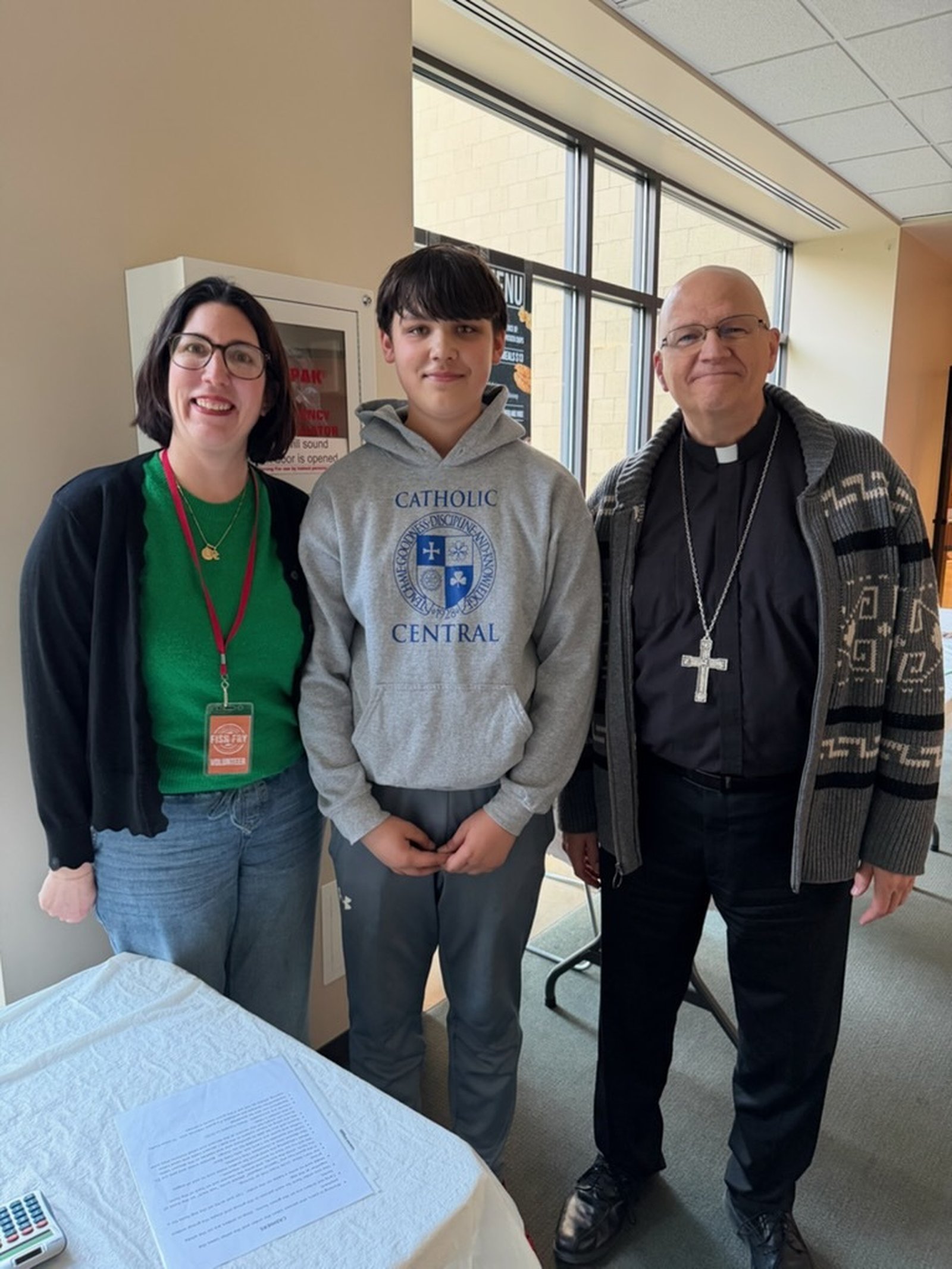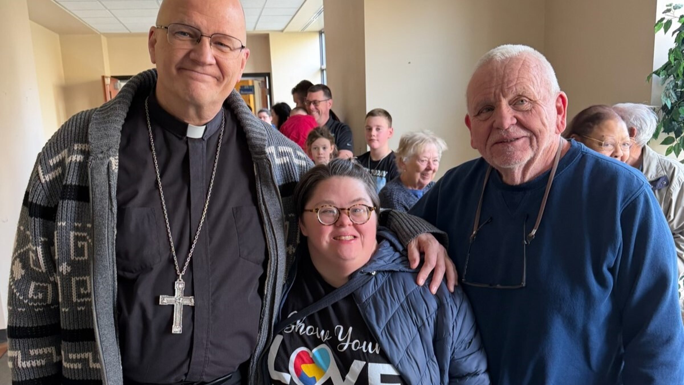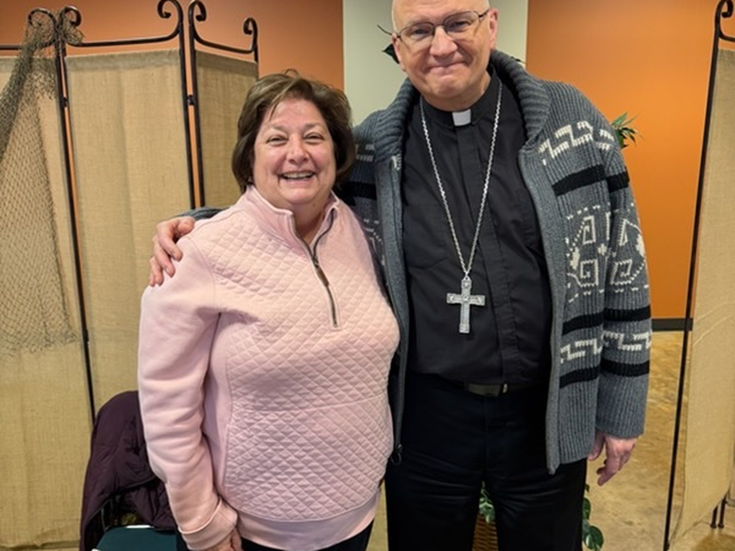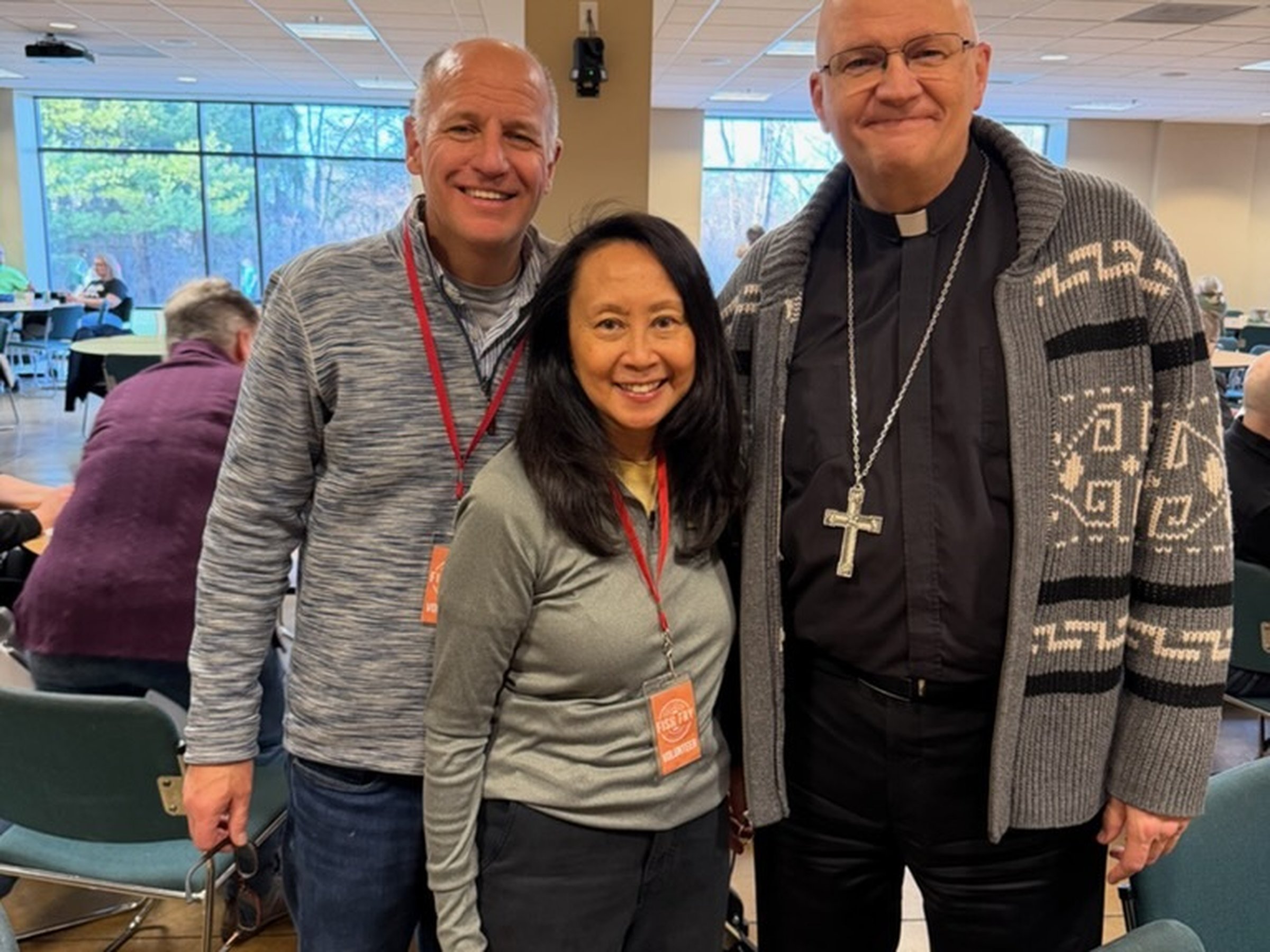 On Friday, March 20, Archbishop Weisenburger continued his parish fish fry tour with a Lenten Friday visit to Our Lady of Good Counsel Parish in Plymouth. The archbishop greatly enjoyed meeting and chatting with parishioners and patrons, especially Mary and her father (pictured above), and the many families who attended. The archbishop attended the fish fry with Fr. Timothy Birney, vicar general and moderator of the curia for the Archdiocese of Detroit, whose brother, Mike Birney, organized the fish fry.