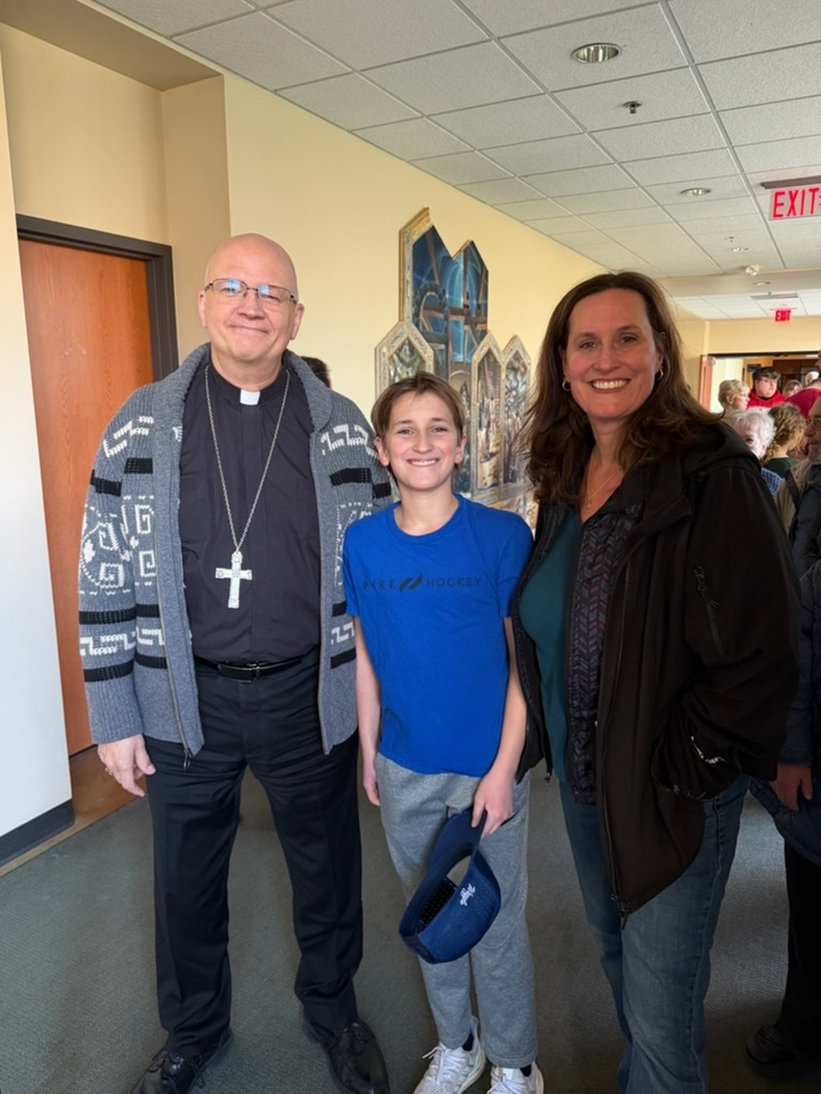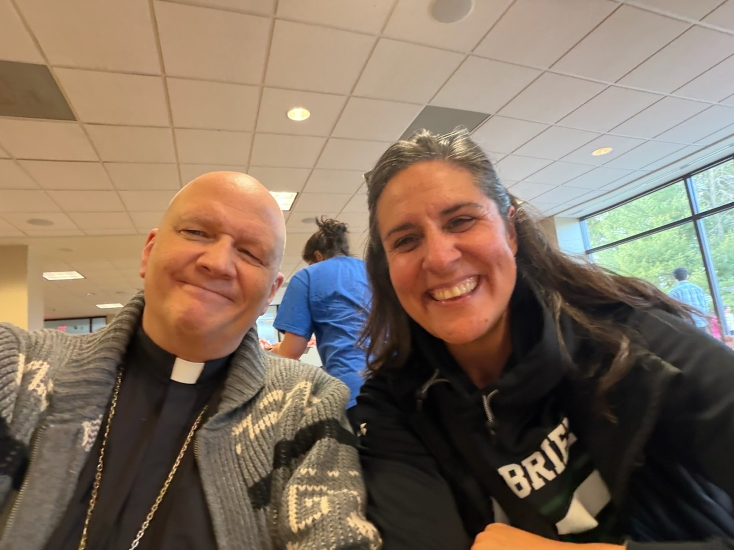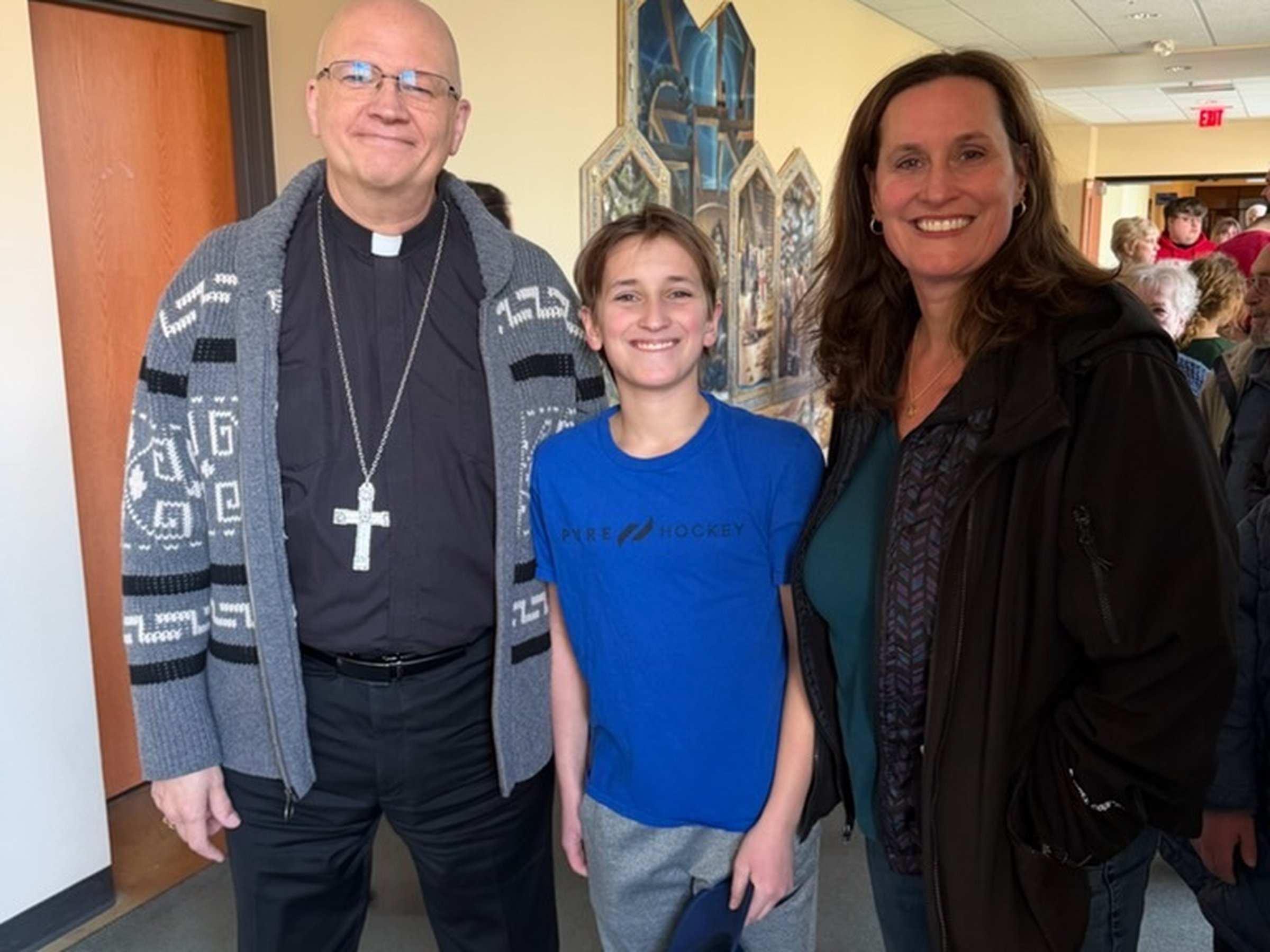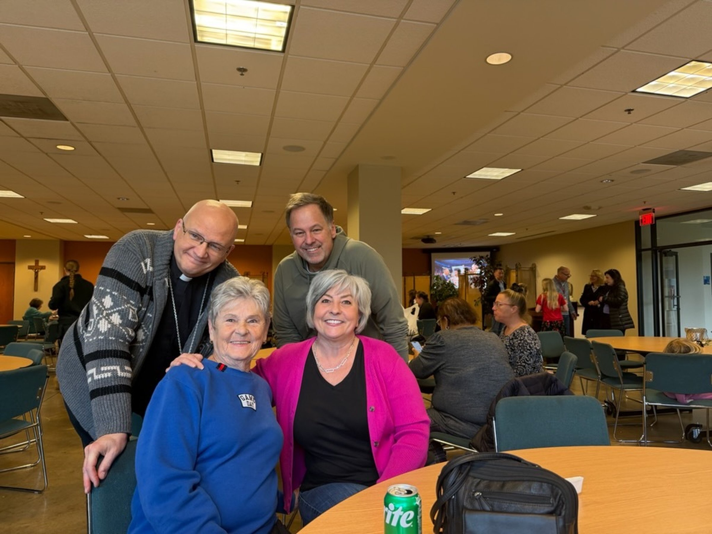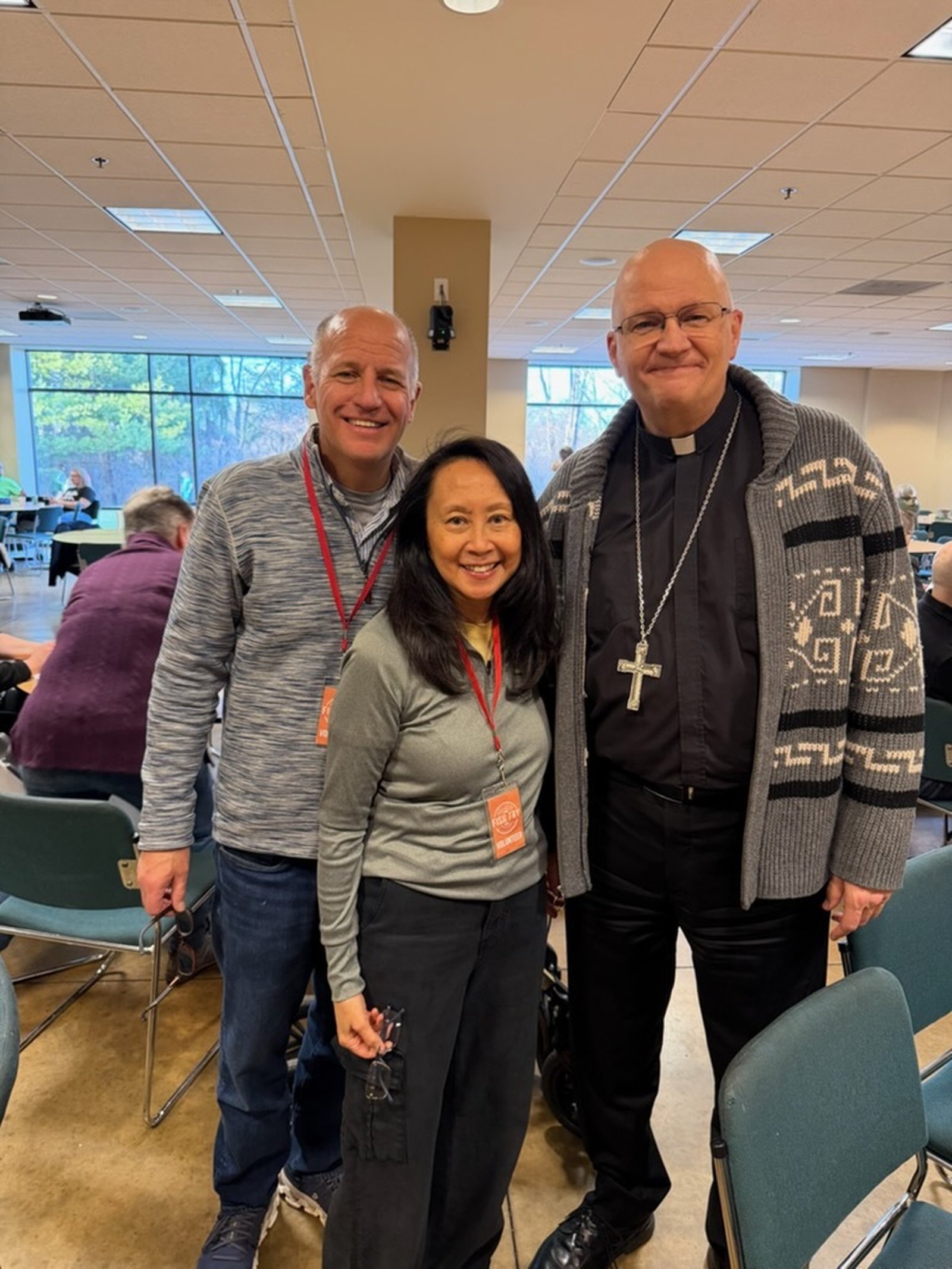 On Friday, March 20, Archbishop Weisenburger continued his parish fish fry tour with a Lenten Friday visit to Our Lady of Good Counsel Parish in Plymouth. The archbishop greatly enjoyed meeting and chatting with parishioners and patrons, especially Mary and her father (pictured above), and the many families who attended. The archbishop attended the fish fry with Fr. Timothy Birney, vicar general and moderator of the curia for the Archdiocese of Detroit, whose brother, Mike Birney, organized the fish fry.
