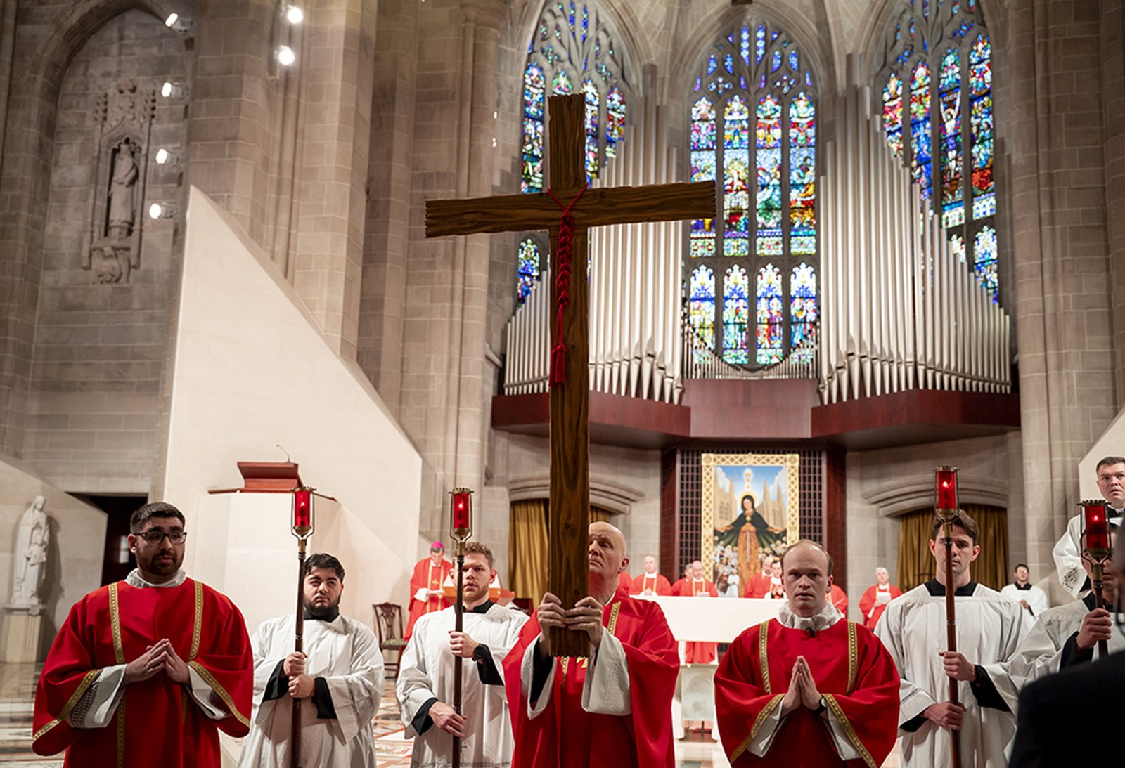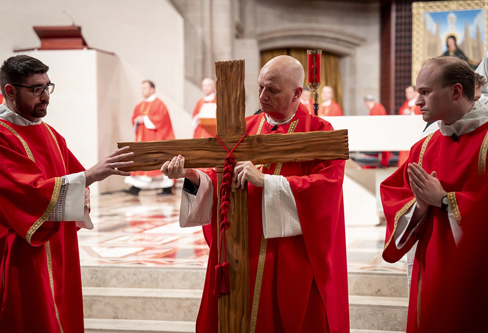 On Good Friday, April 3, Archbishop Weisenburger led Detroit's faithful in somber prayer as the Archdiocese of Detroit remembered Christ's passion and death on the cross. On the only day of the Church's liturgical year without a Mass, members of the faithful approached to venerate the sacred wood of the Cross, as the tabernacle remained open and empty, a reminder of the absence of Christ in anticipation of the glory of the Resurrection on Easter Sunday.