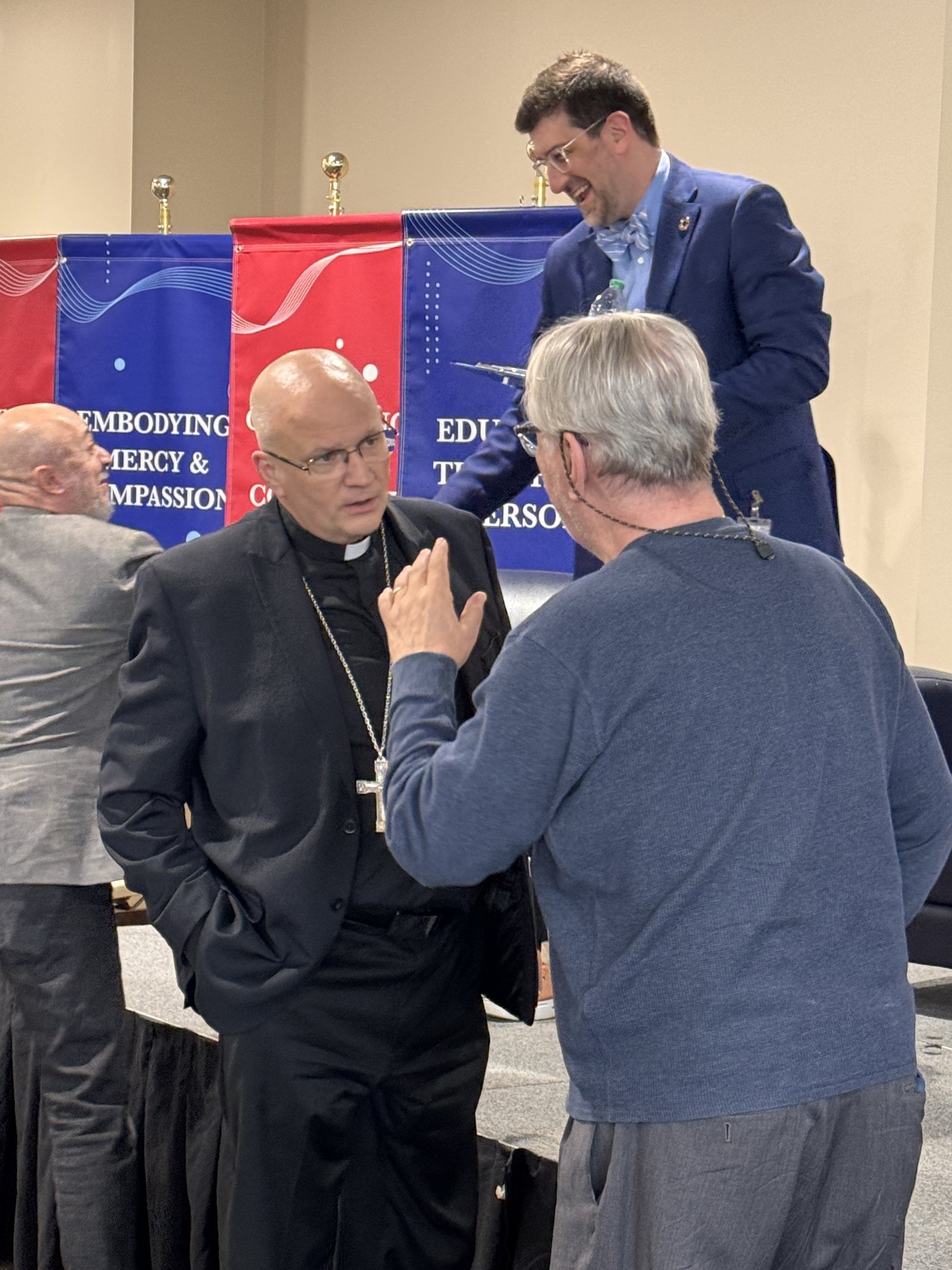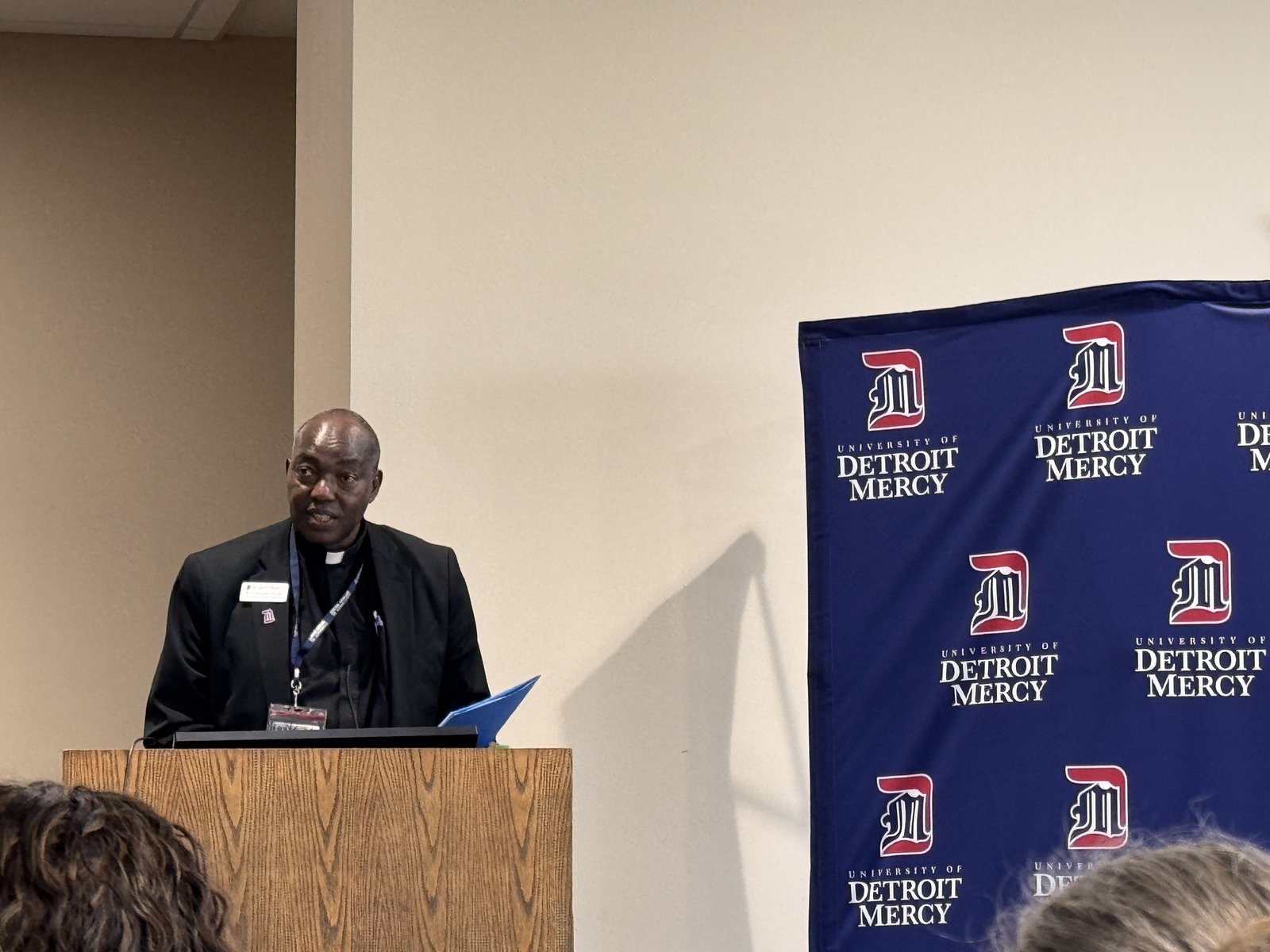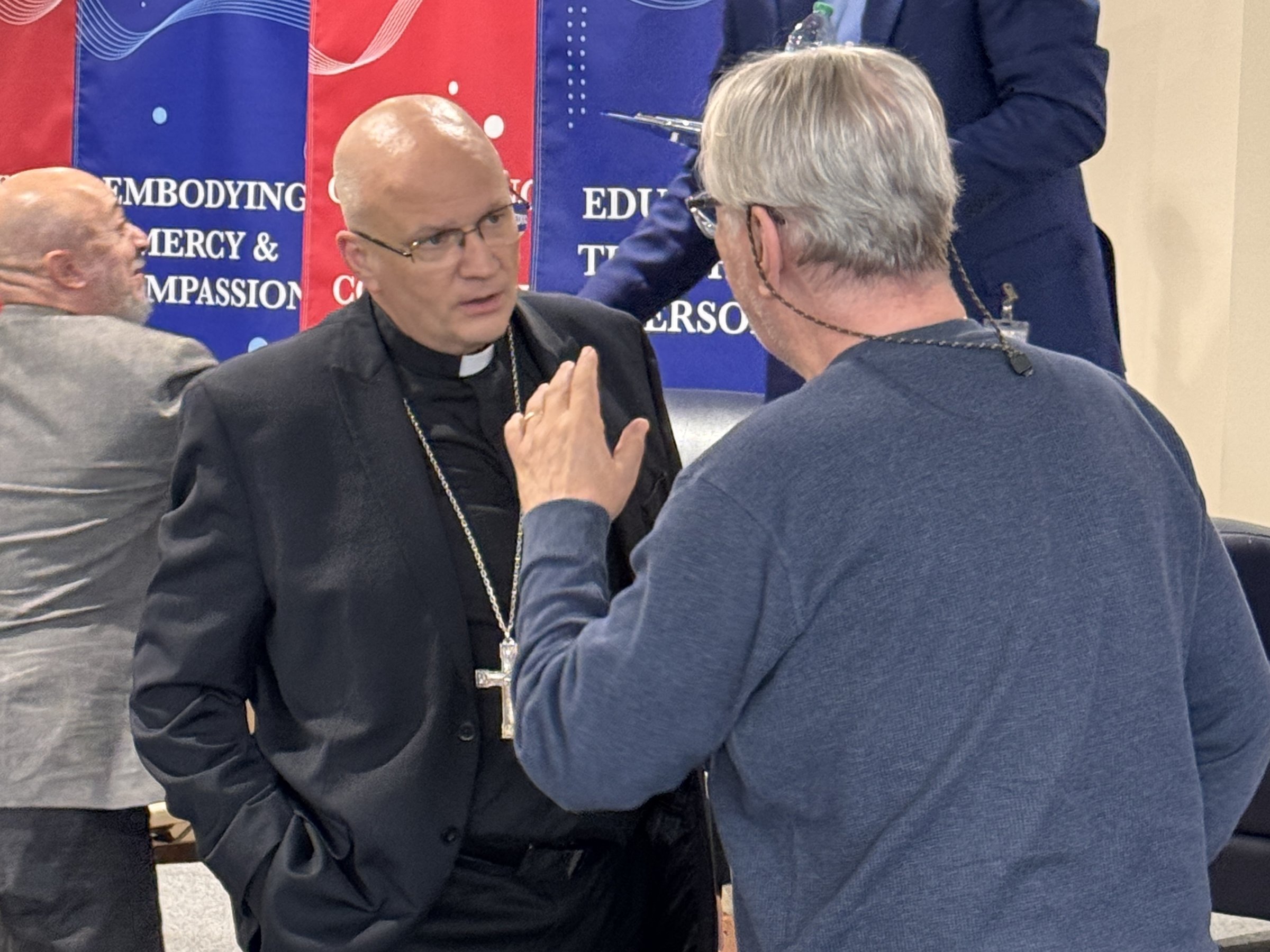 On Saturday, April 25, Archbishop Weisenburger took part in a panel discussion at the University of Detroit Mercy about the Church's prophetic role in some of the most important conversations of the day. The event, "Synodality Encounters: A Conversation on the Church's Prophetic Role of the Church in This Time and Place," featured Archbishop Weisenburger along with other panelists including Bishop John E. Stowe, OFM Conv., of Lexington, Kentucky; Sr. Helen Marie Burns, RSM, current university board member and former president of the Leadership Conference of Women Religious; and Matt Mio, Ph.D., chairman and longtime professor of chemistry and biochemistry, as well as a devoted local Catholic. The panel was moderated by Bridget Deegan-Krause, M.Div., BCC, who has 30 years of ministry in Catholic health care and higher education, and hosted by Fr. Charles Oduke, SJ, the university's vice president for mission integration.