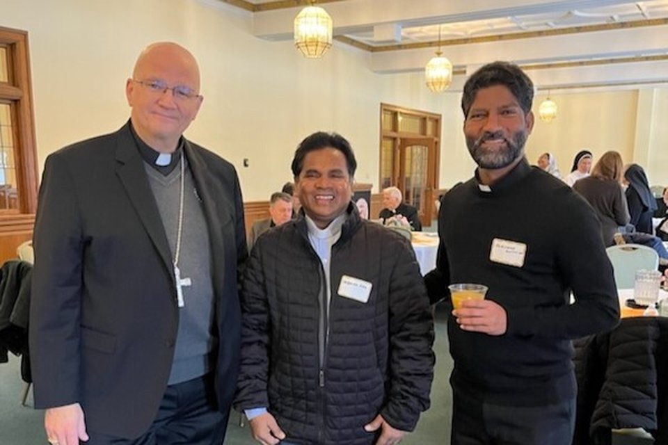 Archbishop Weisenburger presented Thomas Van Dusen with a medal and formal proclamation of a papal award honoring him as a Knight of the Order of St. Sylvester in recognition of his years of faithful service to the Church in the Archdiocese of Detroit. Van Dusen is one of eight local individuals who were given papal honors by the late Pope Francis after being recommended by Archbishop-emeritus Allen H. Vigneron prior to the archbishop's retirement in March. The individuals were honored during a ceremony with Archbishop Weisenburger and Archbishop-emeritus Vigneron at Sacred Heart Major Seminary in September.