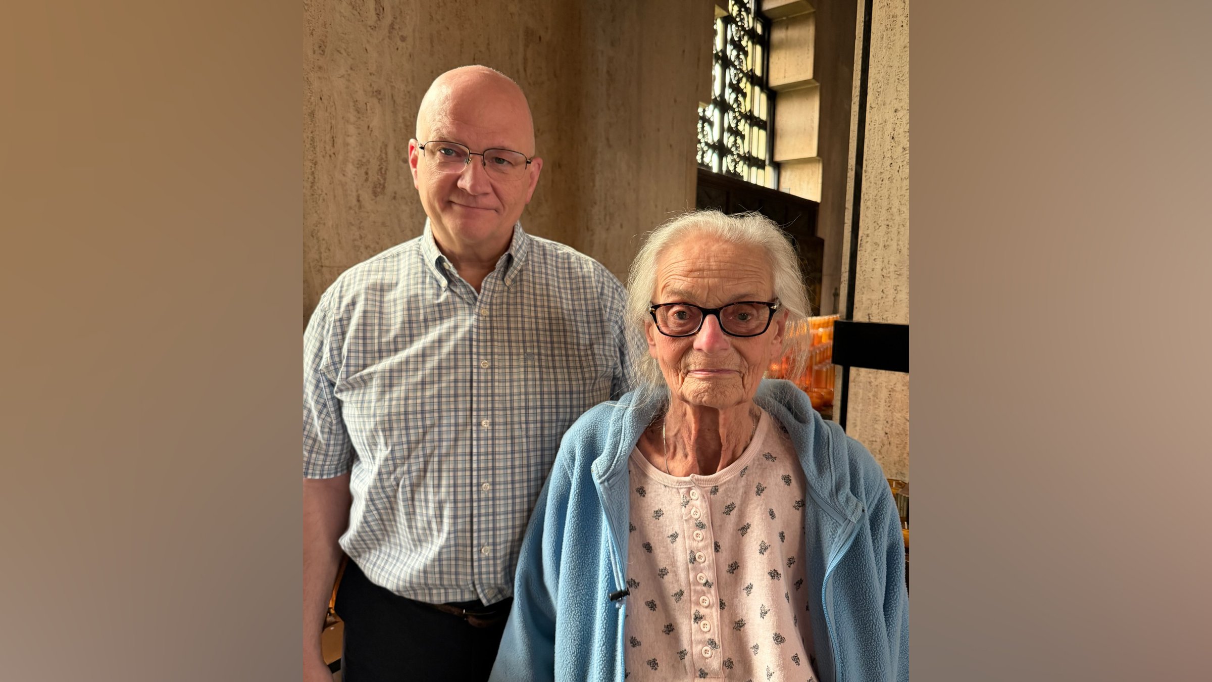On Tuesday, April 14, Archbishop Weisenburger visited the National Shrine of the Little Flower Basilica in Royal Oak along with visiting family members from out of state. During the visit, the archbishop stopped to chat with Muriel, a parish volunteer who was watering the parish's Easter lilies.