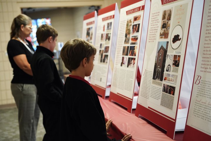 Local Catholic students take in Eucharistic miracles exhibit created by St. Carlo Acutis