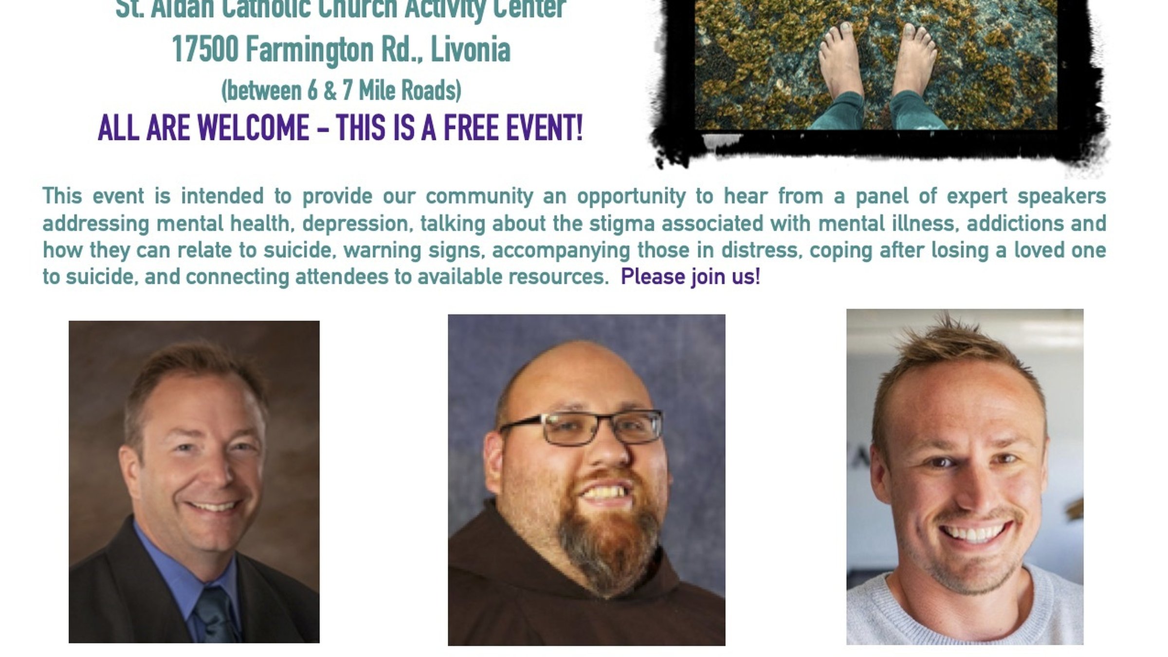 This event is intended to provide our community an opportunity to hear from a panel of expert speakers addressing mental health, depression, talking about the stigma associated with mental illness, addictions and how they can relate to suicide, warning signs, accompanying those in distress, coping after losing a loved one to suicide, and connecting attendees to available resources.