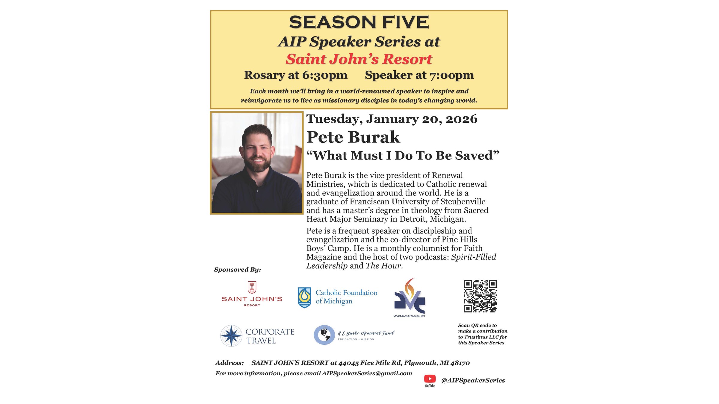 Pete Burak is the vice president of Renewal Ministries, which is dedicated to Catholic renewal and evangelization around the world. He is a graduate of Franciscan University of Steubenville and has a master’s degree in theology from Sacred Heart Major Seminary in Detroit, Michigan.