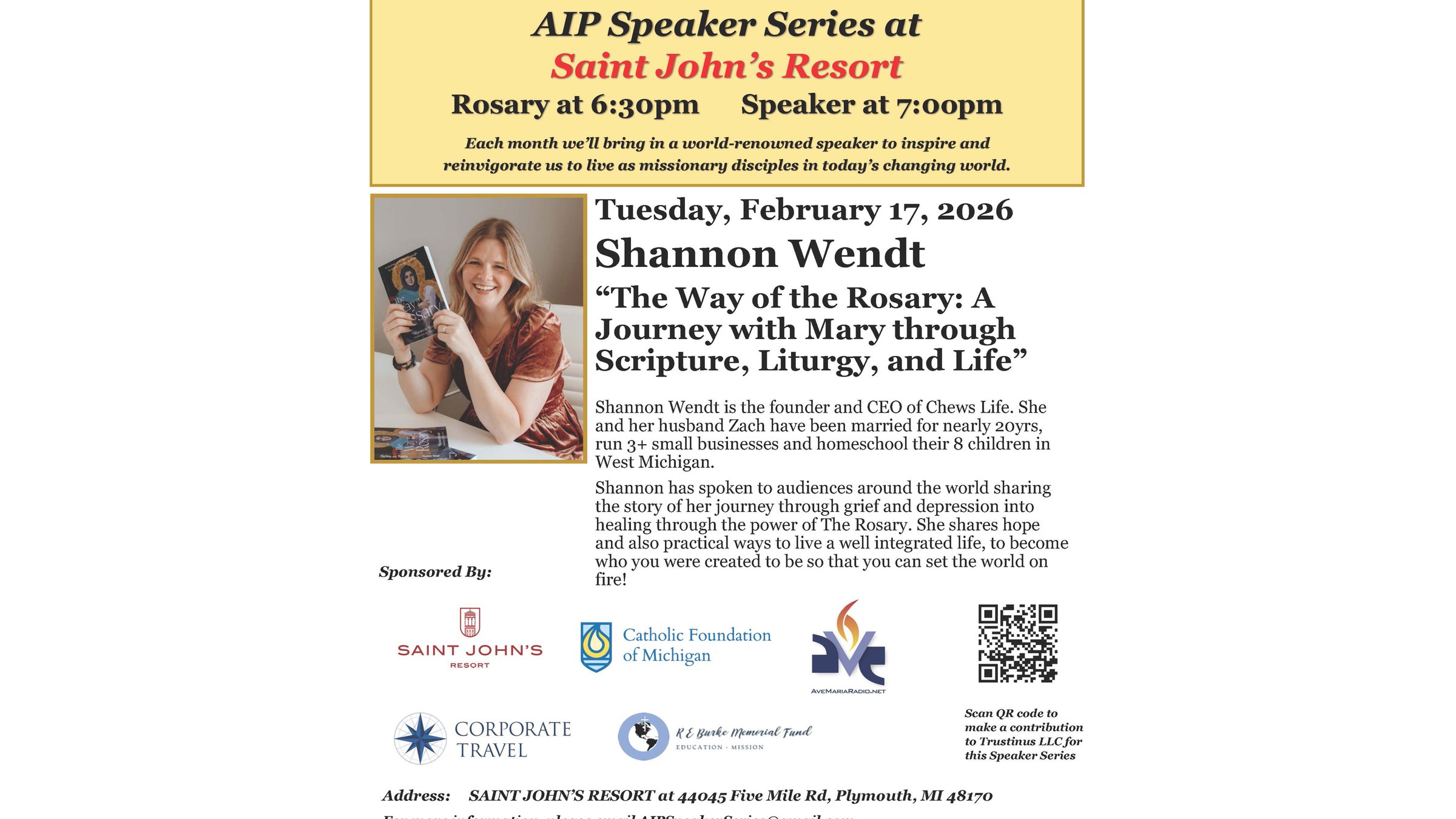 Shannon has spoken to audiences around the world sharing the story of her journey through grief and depression into healing through the power of The Rosary. She shares hope and also practical ways to live a well integrated life, to become who you were created to be so that you can set the world on fire!