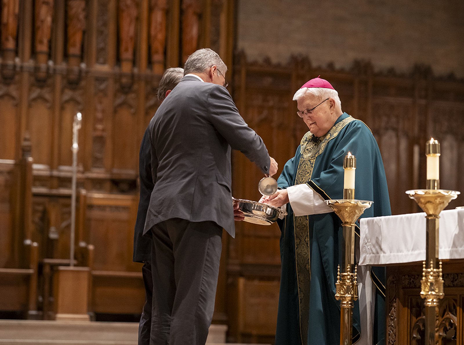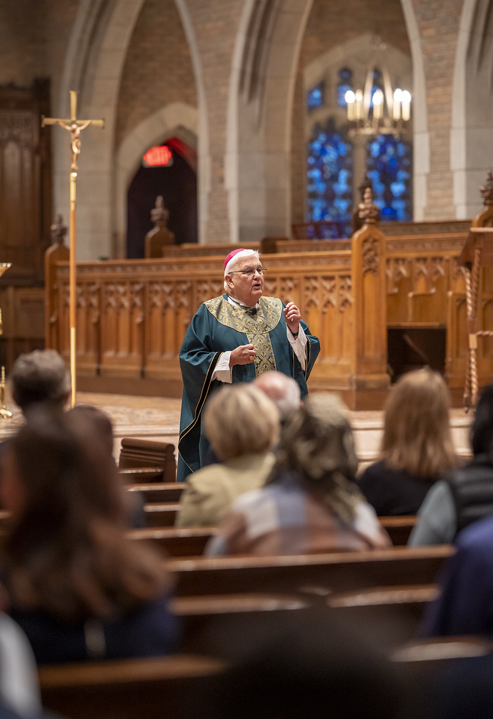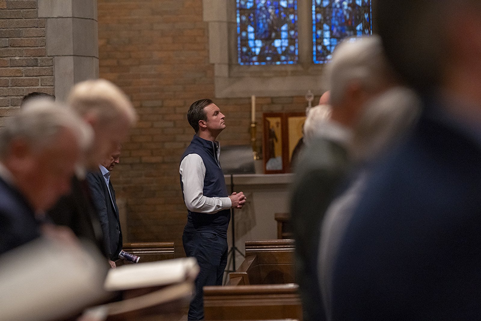 Bishop John M. Quinn, retired bishop of Winona-Rochester, Minn., and a former Detroit auxiliary bishop, celebrated the Mass for dozens of professionals in Sacred Heart's chapel, along with Deacon Michael Houghton, executive director of UTG at Work and Deacon David Casnovsky of the Archdiocese of Detroit's Department of Clergy and Consecrated Life. Fr. Stephen Burr, rector of Sacred Heart, concelebrated.