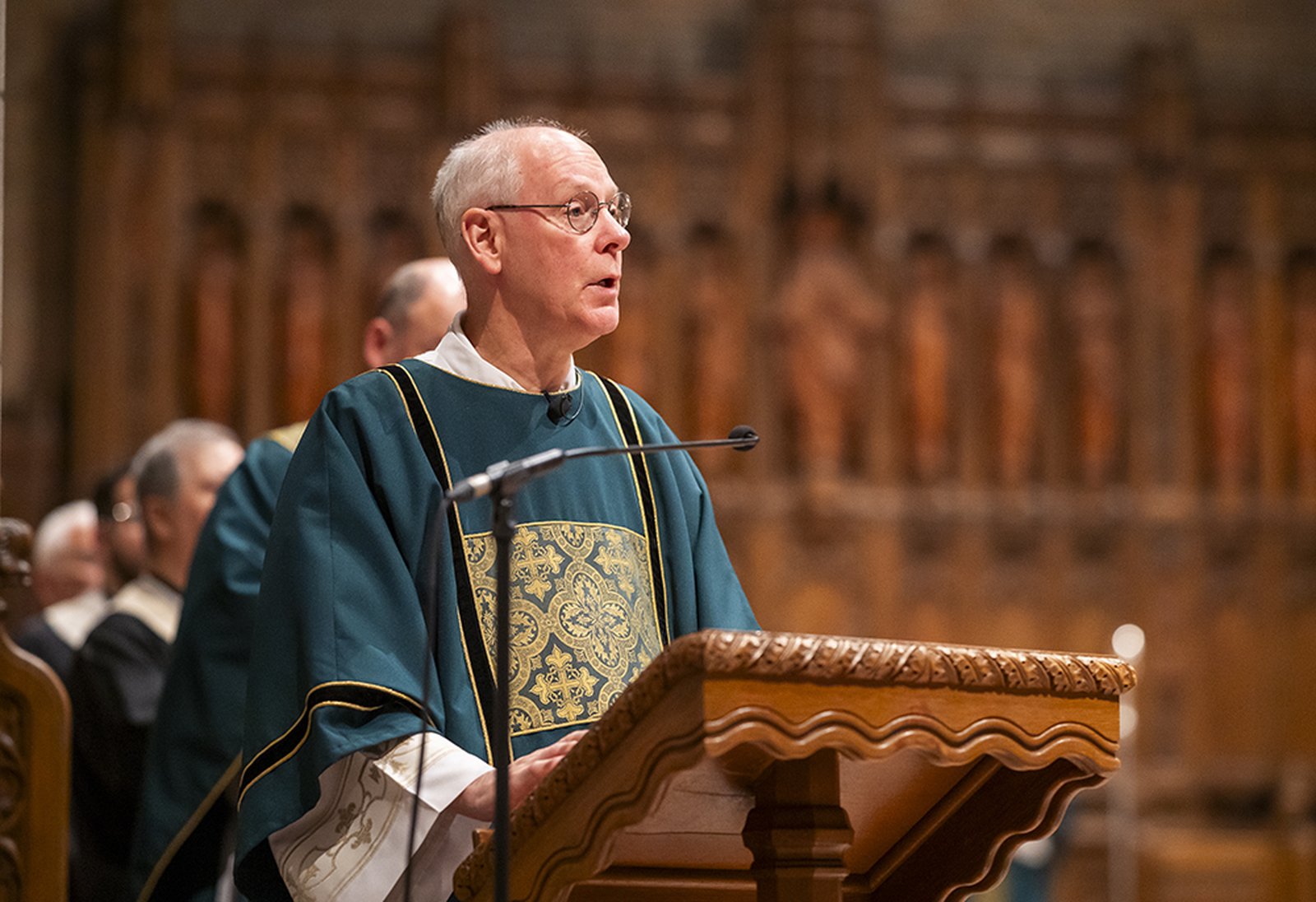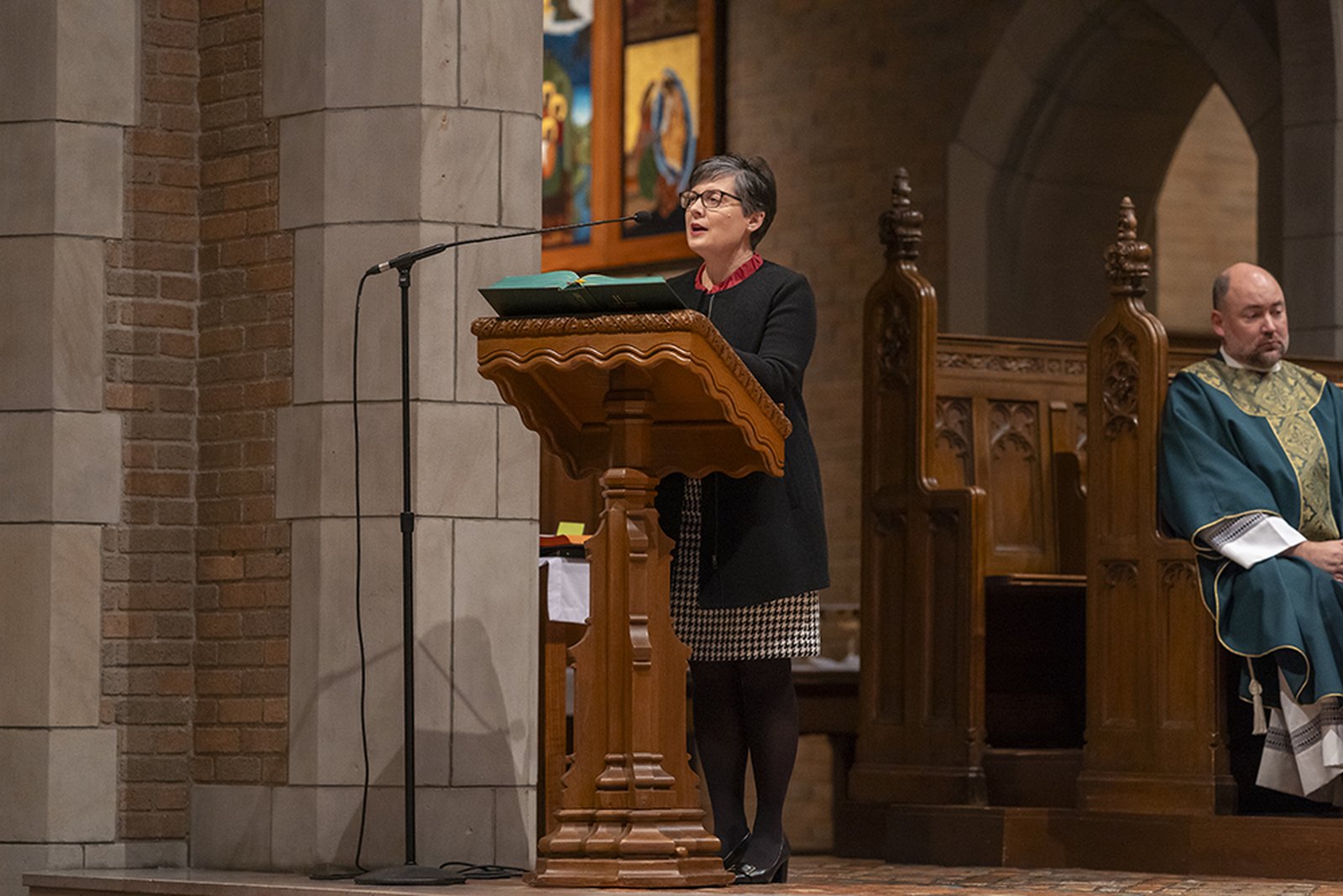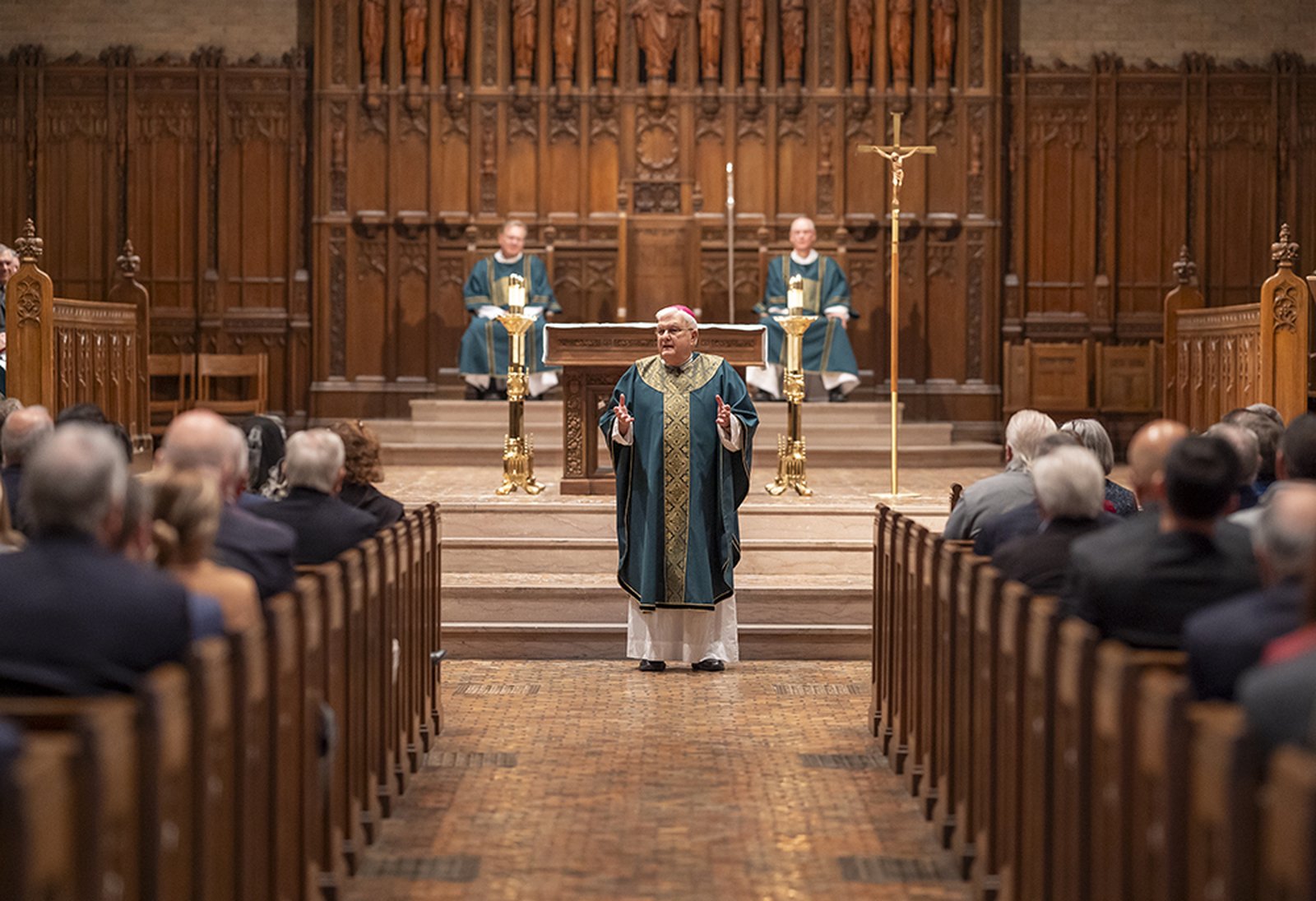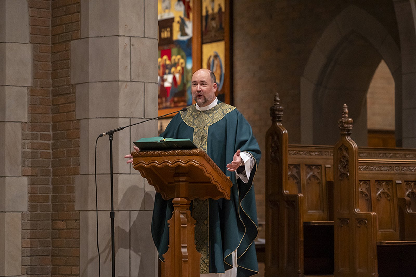 Bishop John M. Quinn, retired bishop of Winona-Rochester, Minn., and a former Detroit auxiliary bishop, celebrated the Mass for dozens of professionals in Sacred Heart's chapel, along with Deacon Michael Houghton, executive director of UTG at Work and Deacon David Casnovsky of the Archdiocese of Detroit's Department of Clergy and Consecrated Life. Fr. Stephen Burr, rector of Sacred Heart, concelebrated.