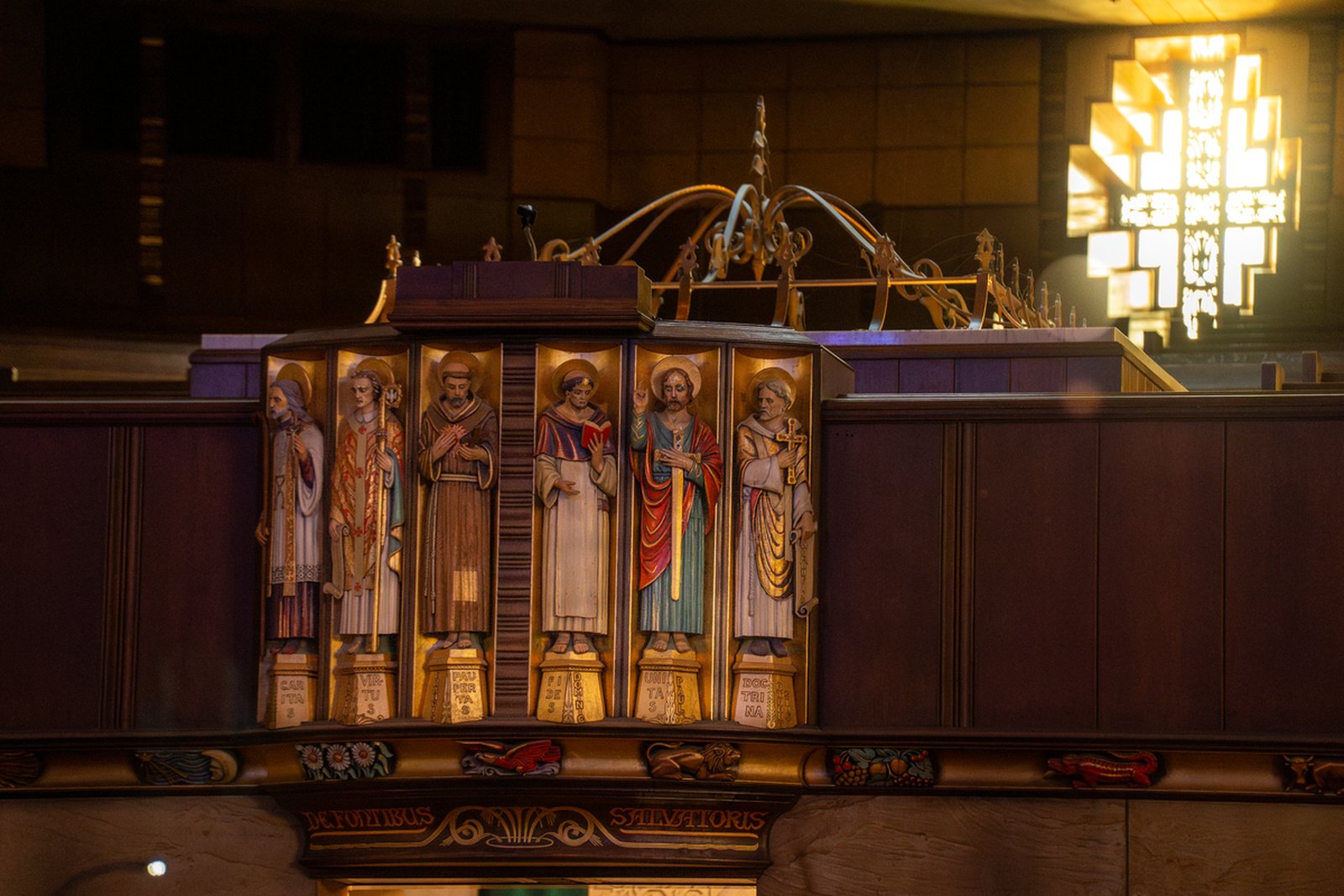 Nearly a hundred years after the parish was first founded, the church stands as a pristine example of Art Deco architecture and design. Every detail of the church, from the guardrails to the number of people who can fit in a section of pews, was designed to have biblical or theological symbolism, lifelong parishioner and tour docent Van Rohr told Detroit Catholic.