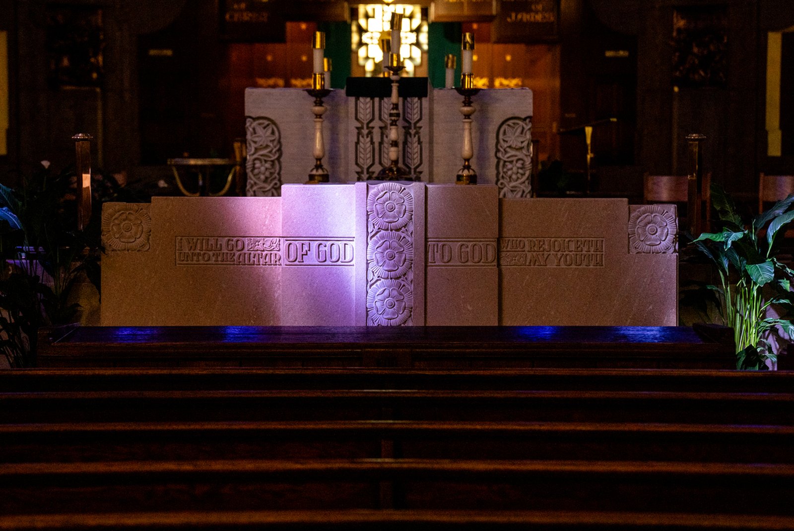 Located right on the floor leading up to the tabernacle is a stone slab that the original craftsman thought was an unfortunate “imperfection.” However, Fr. Coughlin brought in experts to confirm his suspicion: the indent was a fossilized deer hoof print, poised as if the deer is walking right up to the tabernacle. “Fr. Coughlin said that, ‘as a deer, thirst for water, Jesus, thirst for souls,’ so the stone stays,” Rohr added.