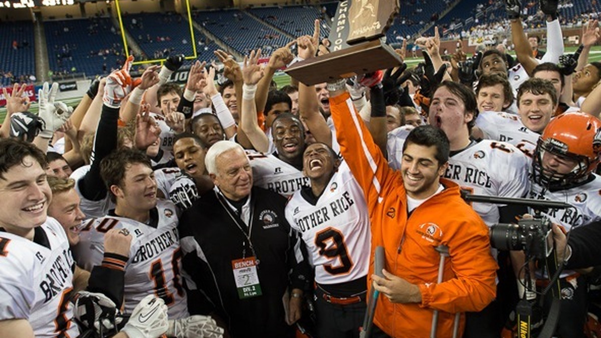 On a wintry, road-slicked morning in January 2014, he graciously allowed this writer 45 minutes for a chat, while insisting “I’m too busy right now” at the desk in his cramped, closet-sized office at Brother Rice, every square inch of which was covered with memorabilia from his coaching career.