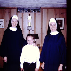 A young Robert Fisher is pictured on his first Communion day in 1967 with his aunts, Sr. Barbara (Therese Lisieux) Torzewski, IHM, and Sr. Therese (Joseph Therese) Torzewski, IHM, two of many family members whose religious vocations helped inspired his own. With Bishop Fisher’s father working at Holy Cross Cemetery for the Archdiocese of Detroit and later for Chrysler Corporation in Center Line, and his mother a stay-at-home mom, the children’s parents looked to the young Robert to watch over his younger siblings. And they, in turn, looked to Robert to spoil them from time to time.