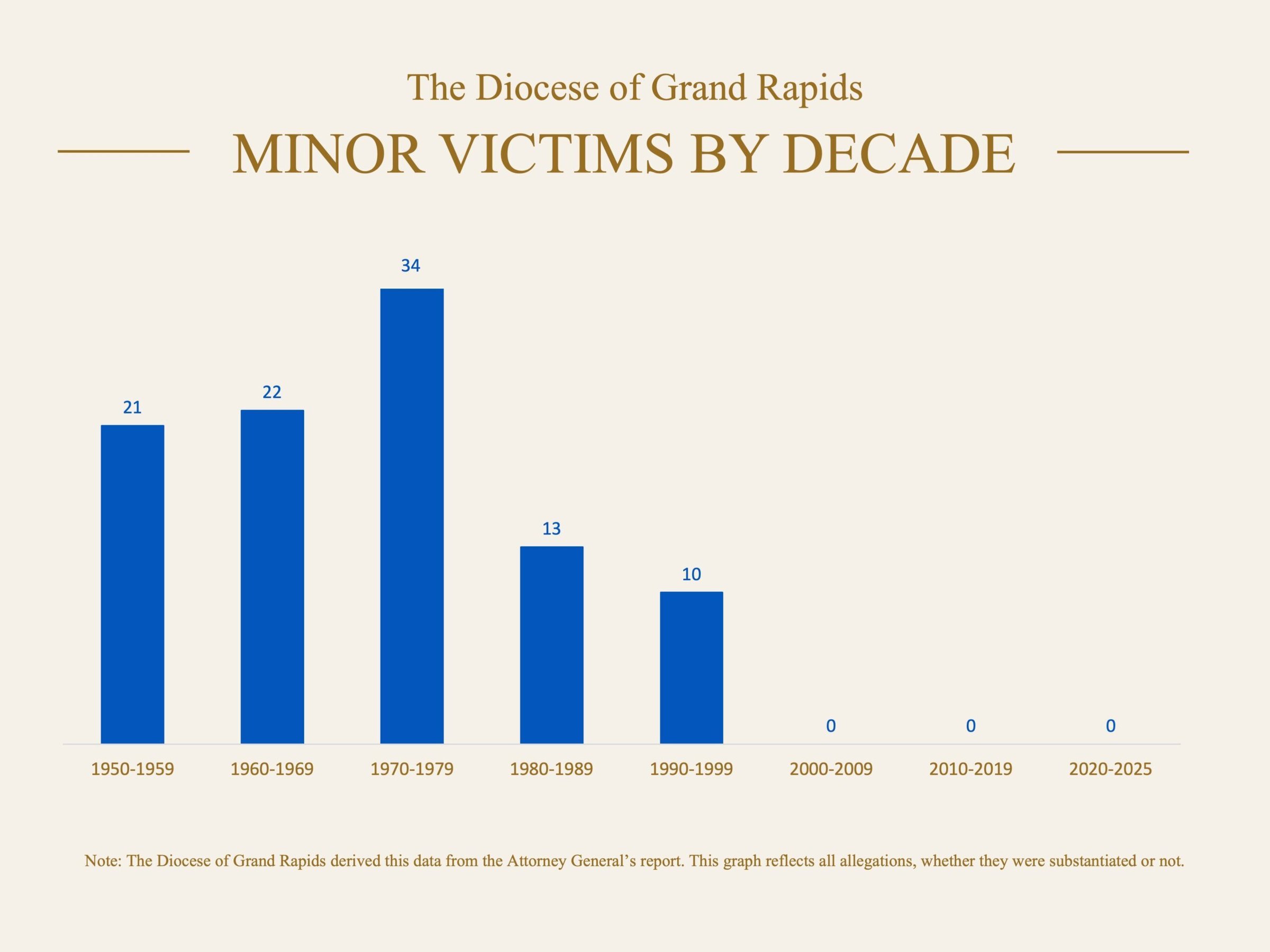 Over that 75-year period, the report details allegations of abuse against 152 victims by 51 priests serving in the Diocese of Grand Rapids. During that time frame, more than 1,000 priests have served the diocese.