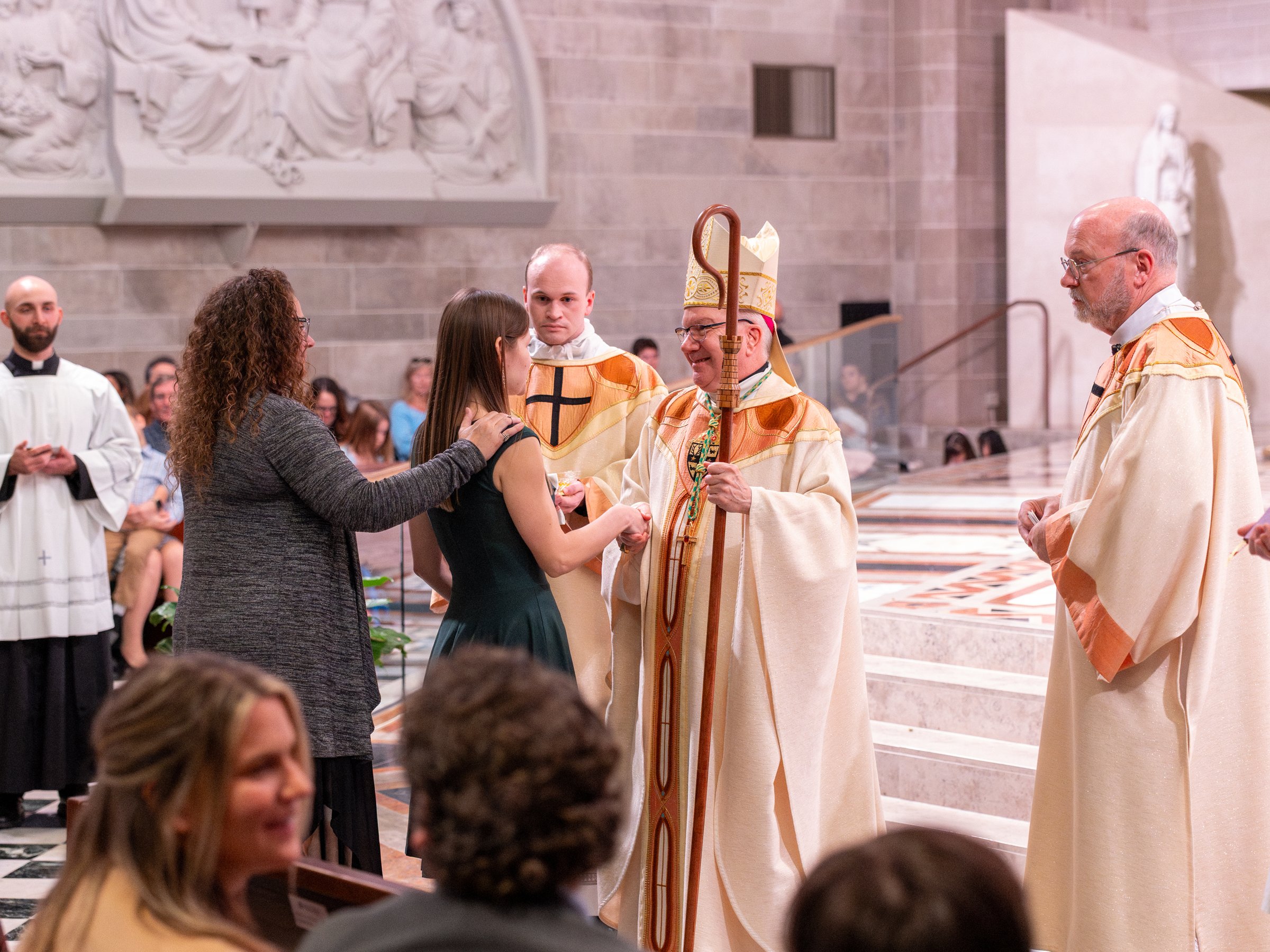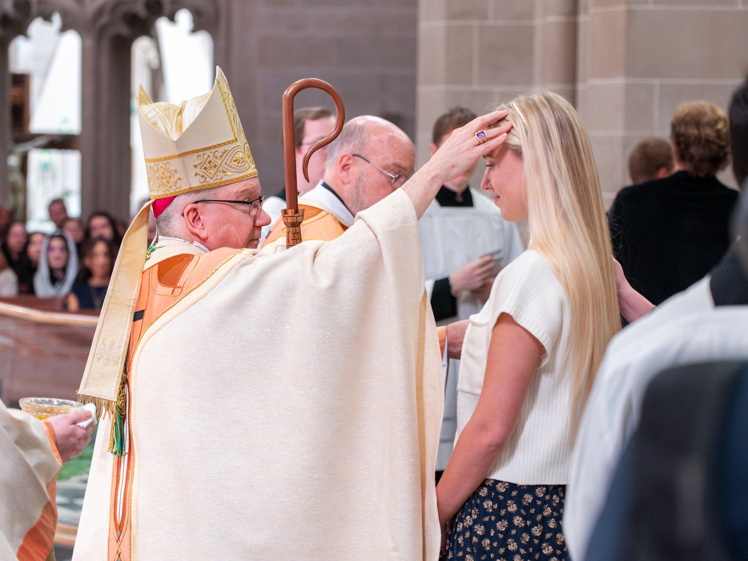 The celebration of confirmations — one of the three sacraments of initiation, along with baptism and first Communion — is celebrated each year on the Solemnity of Christ the King, the final Sunday of the Church's liturgical year, for adults who have already received the sacrament of baptism or are entering into full communion with the Catholic Church.