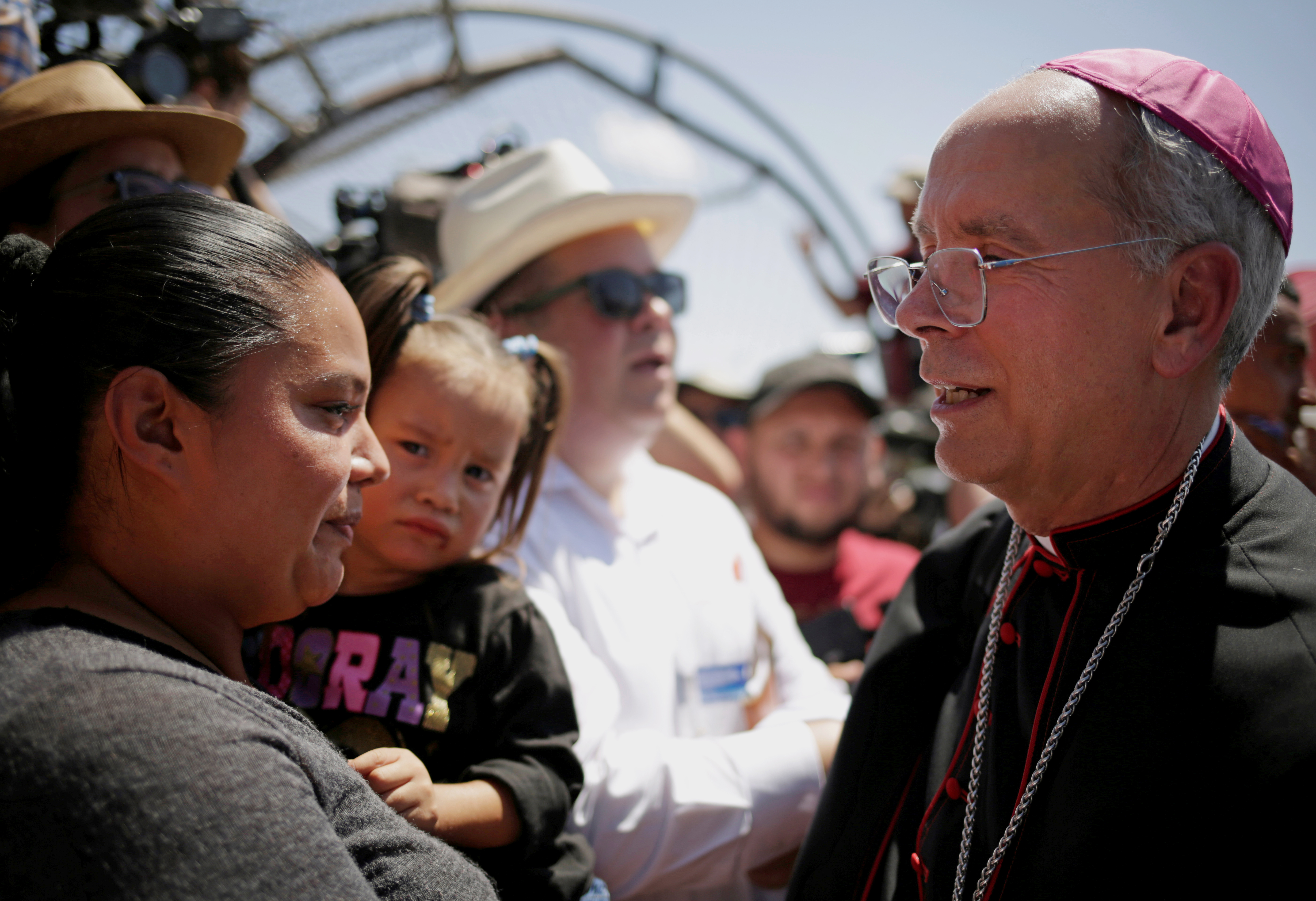 The bishop participated in the event during a week that has seen much outrage in the country -- and the world -- after the publication of photos of a father and daughter who drowned in the Rio Grande River trying to cross the border into the U.S. and reports of deplorable conditions in immigration centers where children are detained.