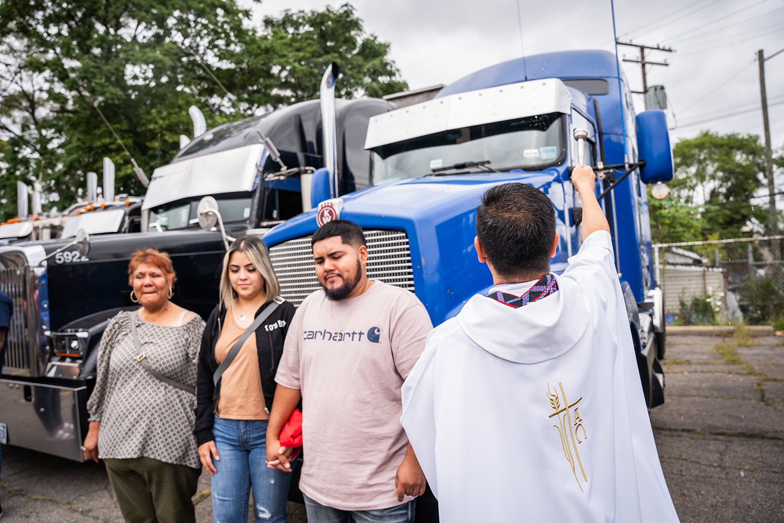 Semi-truck blessings are a common tradition in Mexico, said Jesus Huerta, who first came to Fr. Espinoza with this idea. A father of six, Huerta wanted to see the tradition continue in Detroit.